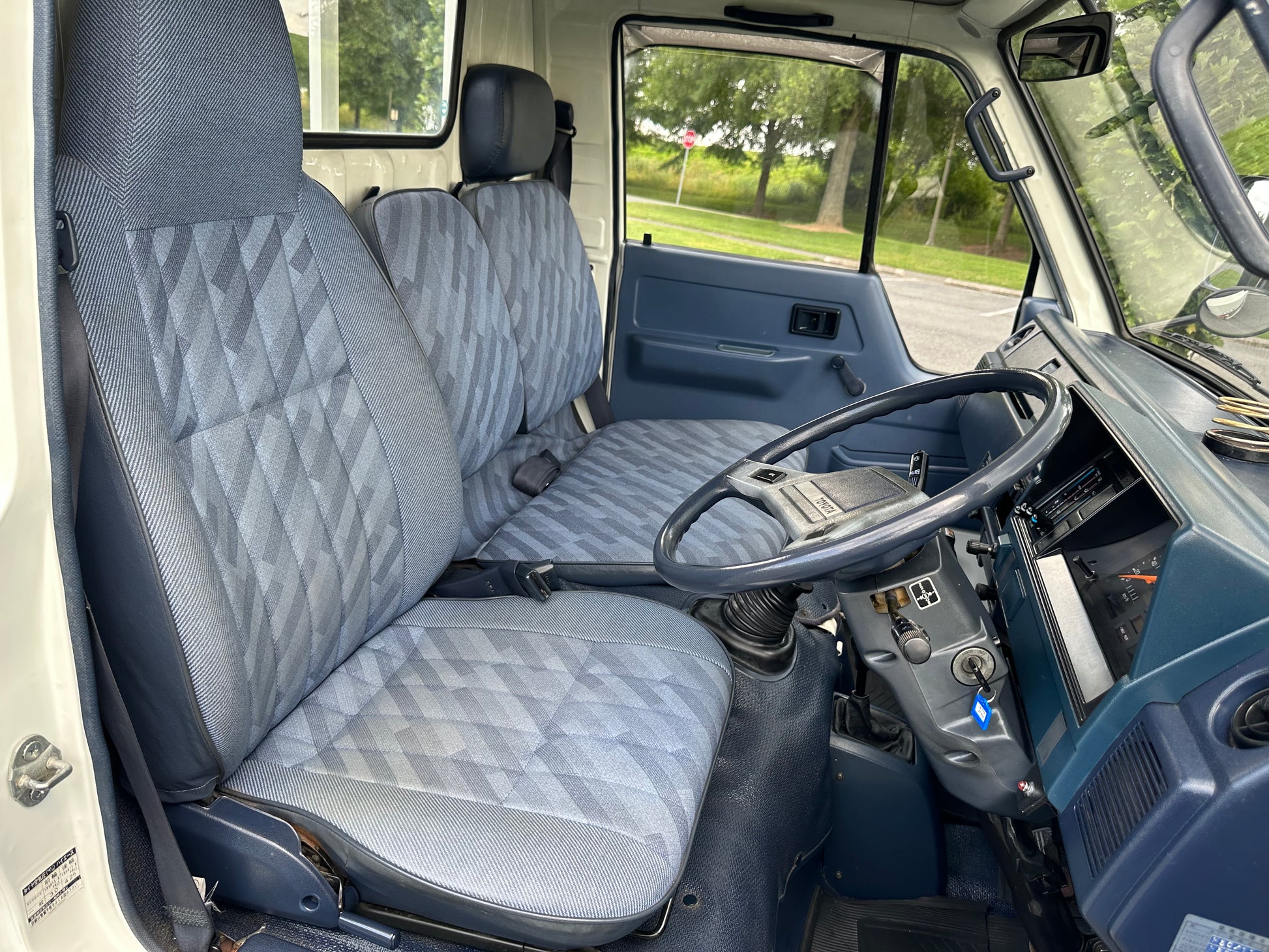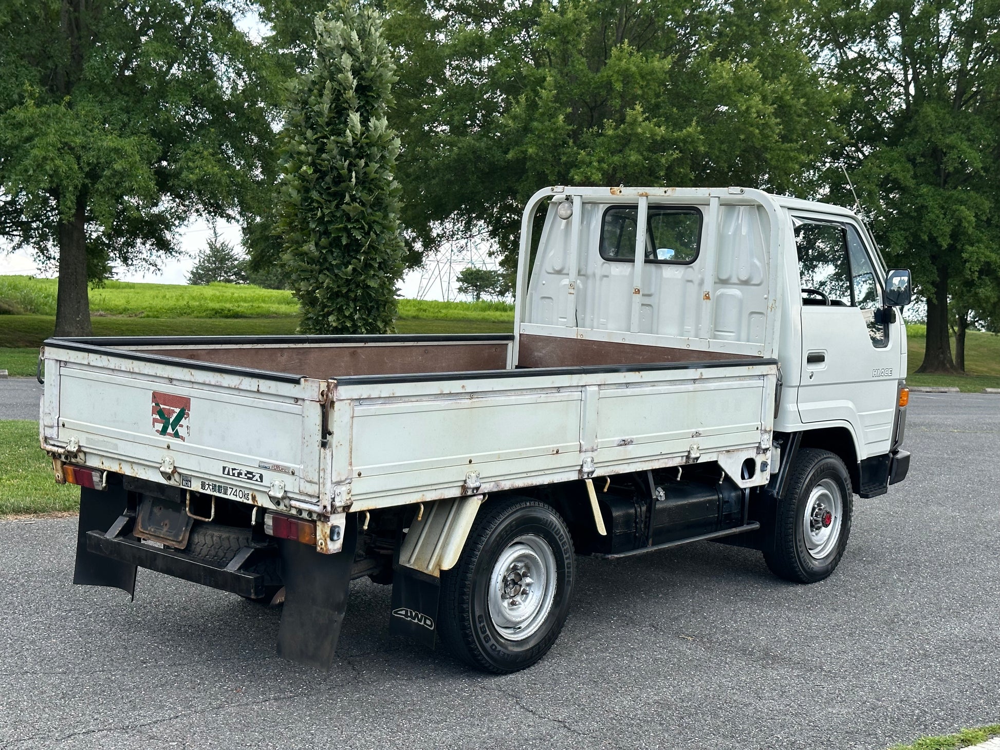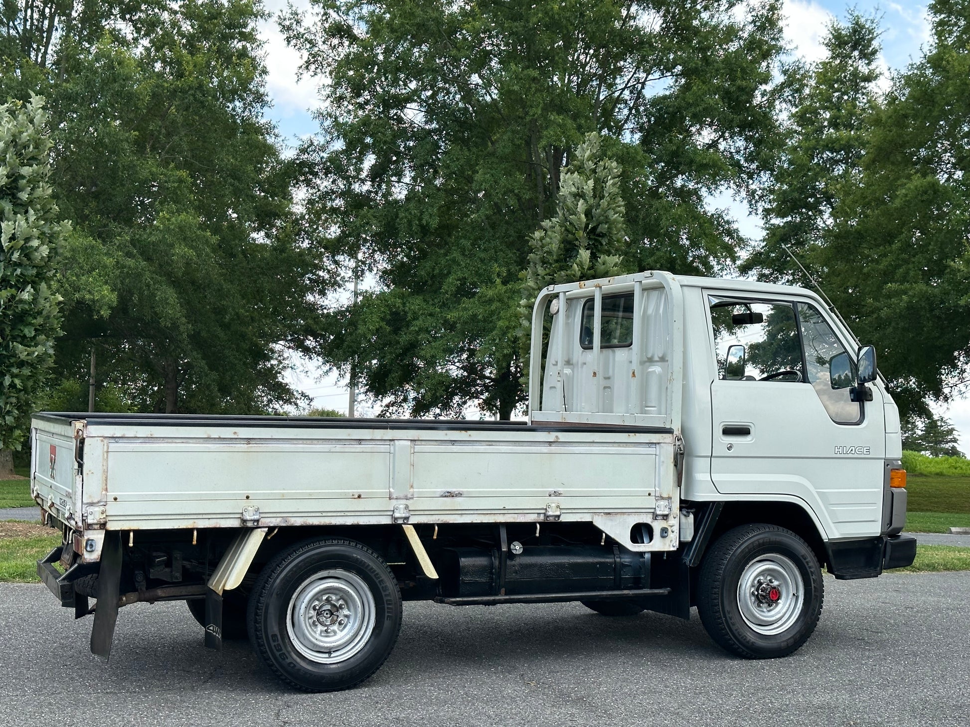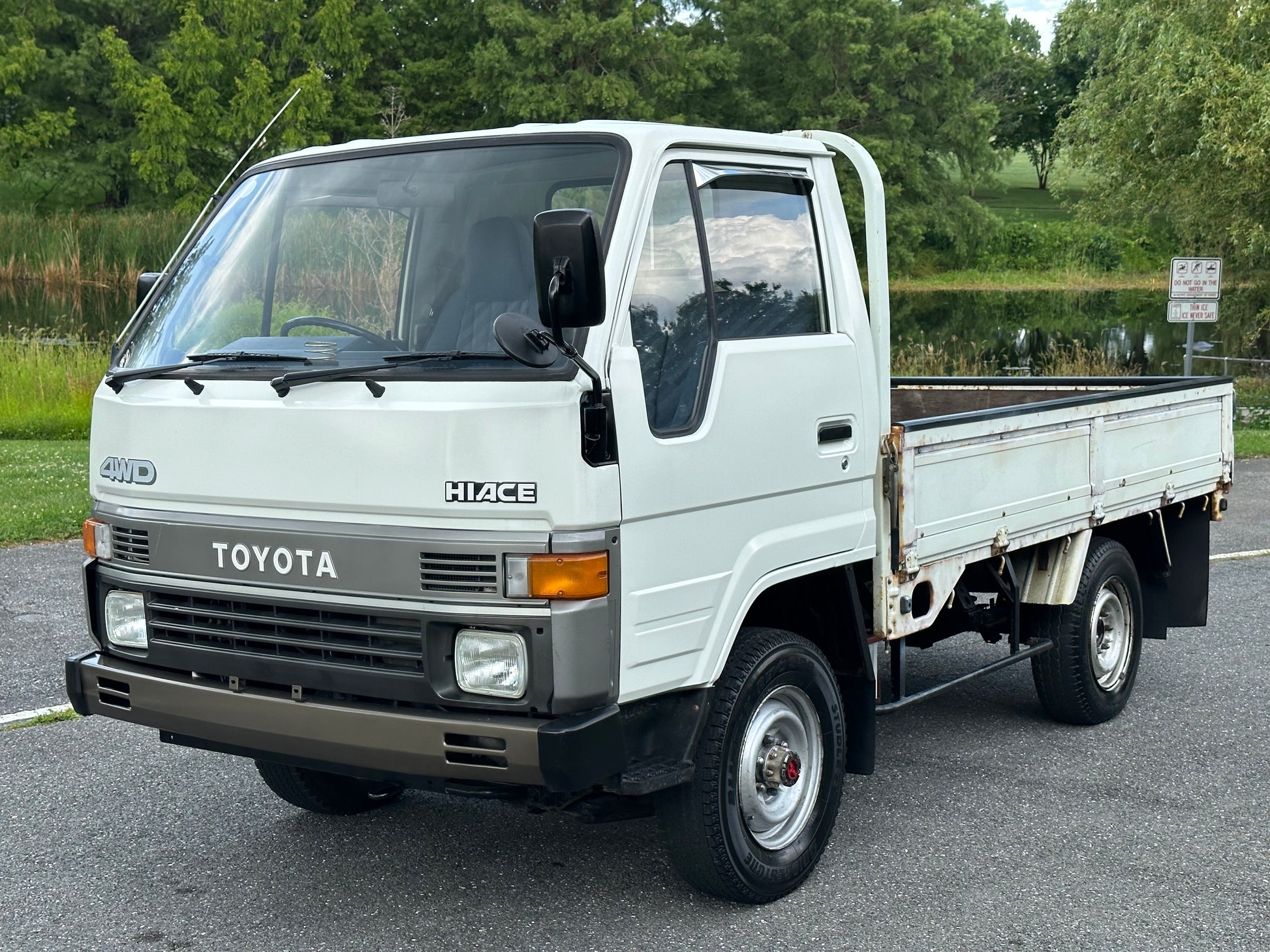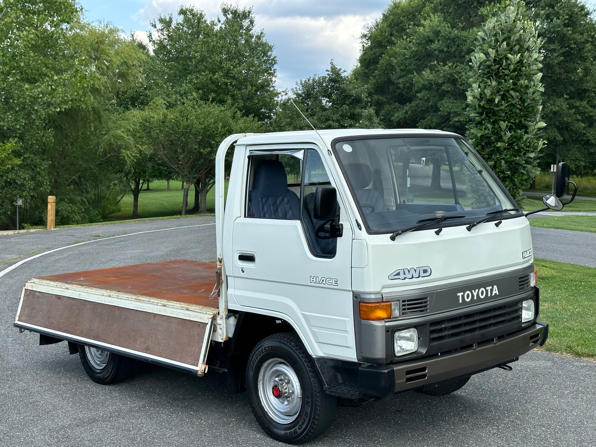 1987 TOYOTA HIACE LH85——33,491 miles. “2L” 2446cc, Inline Four, Diesel, 5 Speed Manual Transmission, Floor Shifted 2 Speed Transfer Case, 4WD High And Low Range, Manually Locking Aisin Front Hubs, White Paint, Blue Vinyl Upholstery, Manual Windows, Drop-Side Cargo Bed, Bulkhead Bar, Load Capacity of 1250KG.