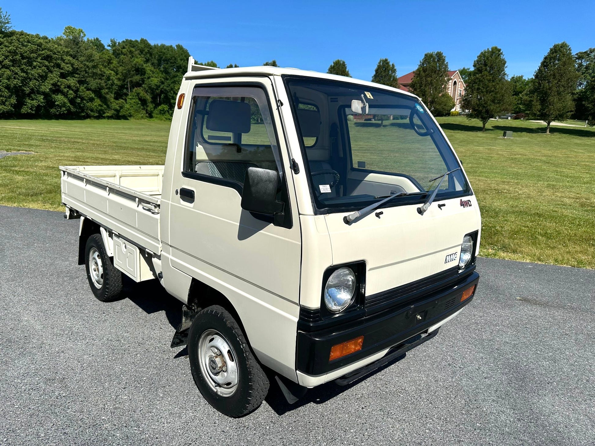 1988 MITSUBISHI MINICAB MIGHTY M-U15T ——8,700 Miles, “3G81” CYCLONE Engine, 550CC Inline-Three, Gasoline, 4-Speed Manual Transmission, Dual Range Transfer Case, Selectable 4WD, Auto Free Hubs, Drop-Down Bed Sides, 350kg Load Capacity. In Excellent Condition.