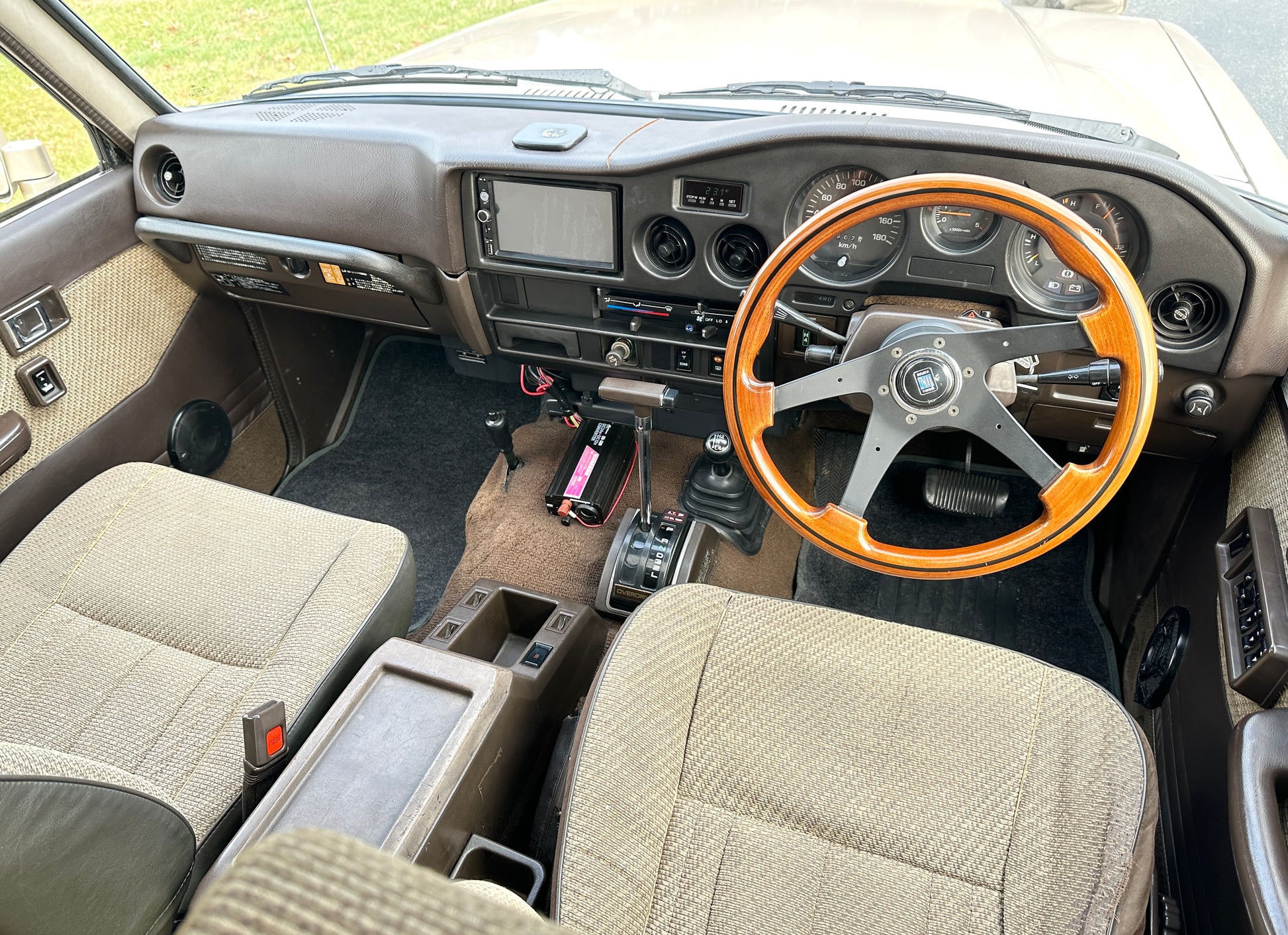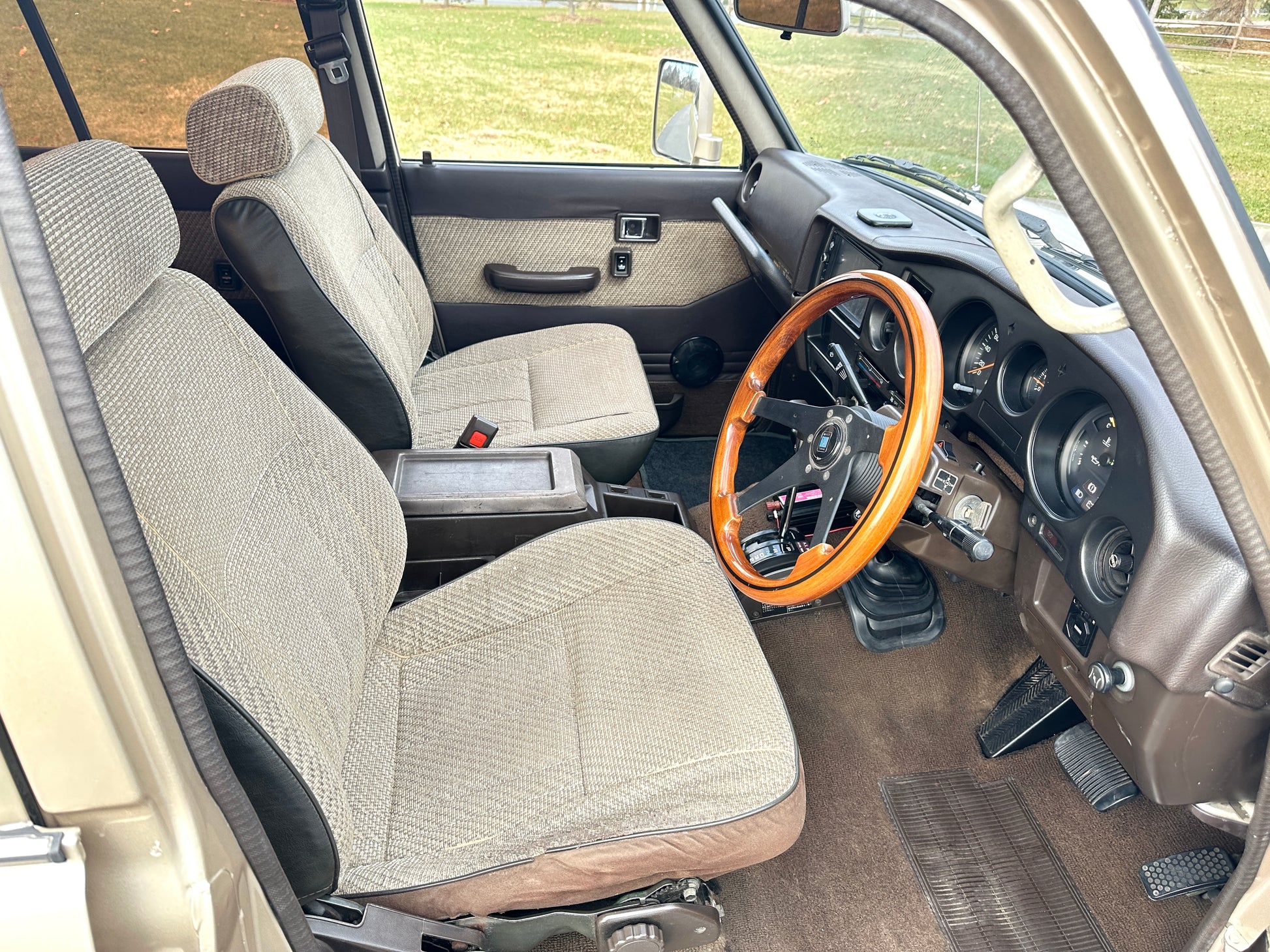1988 Toyota Land Cruiser HJ60——140,909 miles, “2H” 4.0 Liter, Inline 6, Diesel, Automatic Transmission, Selectable 4WD, Transfer Case With High And Low Ranges, Beige Metallic Paint (4G8), Tan Cloth Upholstery, Chrome Bumpers, Bradley V Aftermarket Wheels, Aisin Manually Locking Front Hubs, Aftermarket Radio & Bose Speakers, Power Windows, Power Locks, Power Adjusting Mirrors, Sunroof, Automatic Dual-Zone Climate Control, Tow Hitch