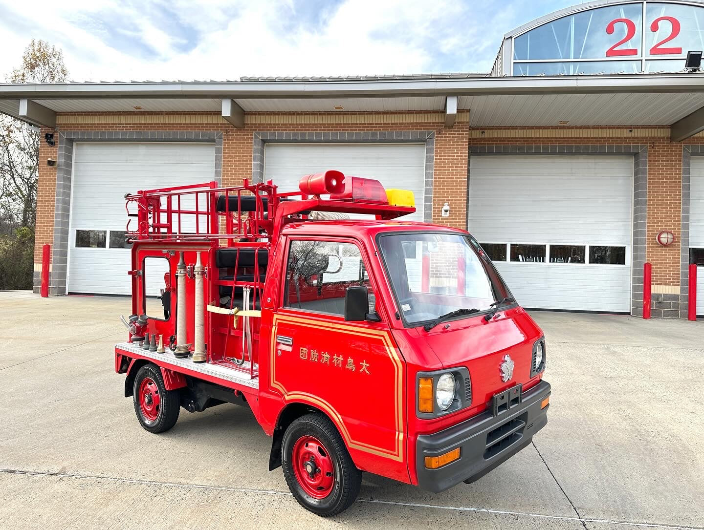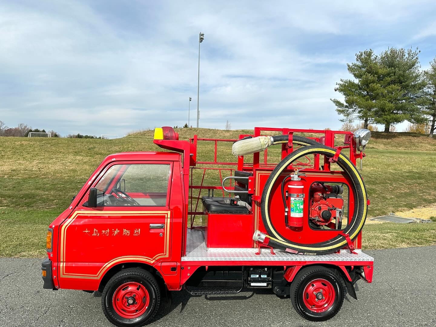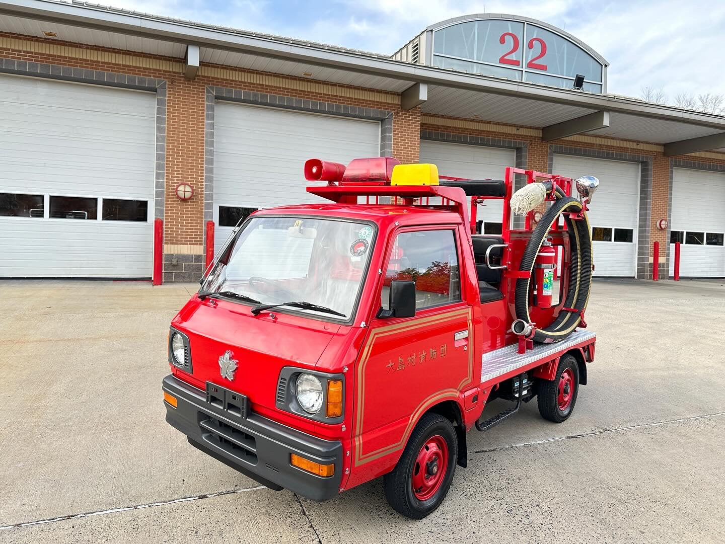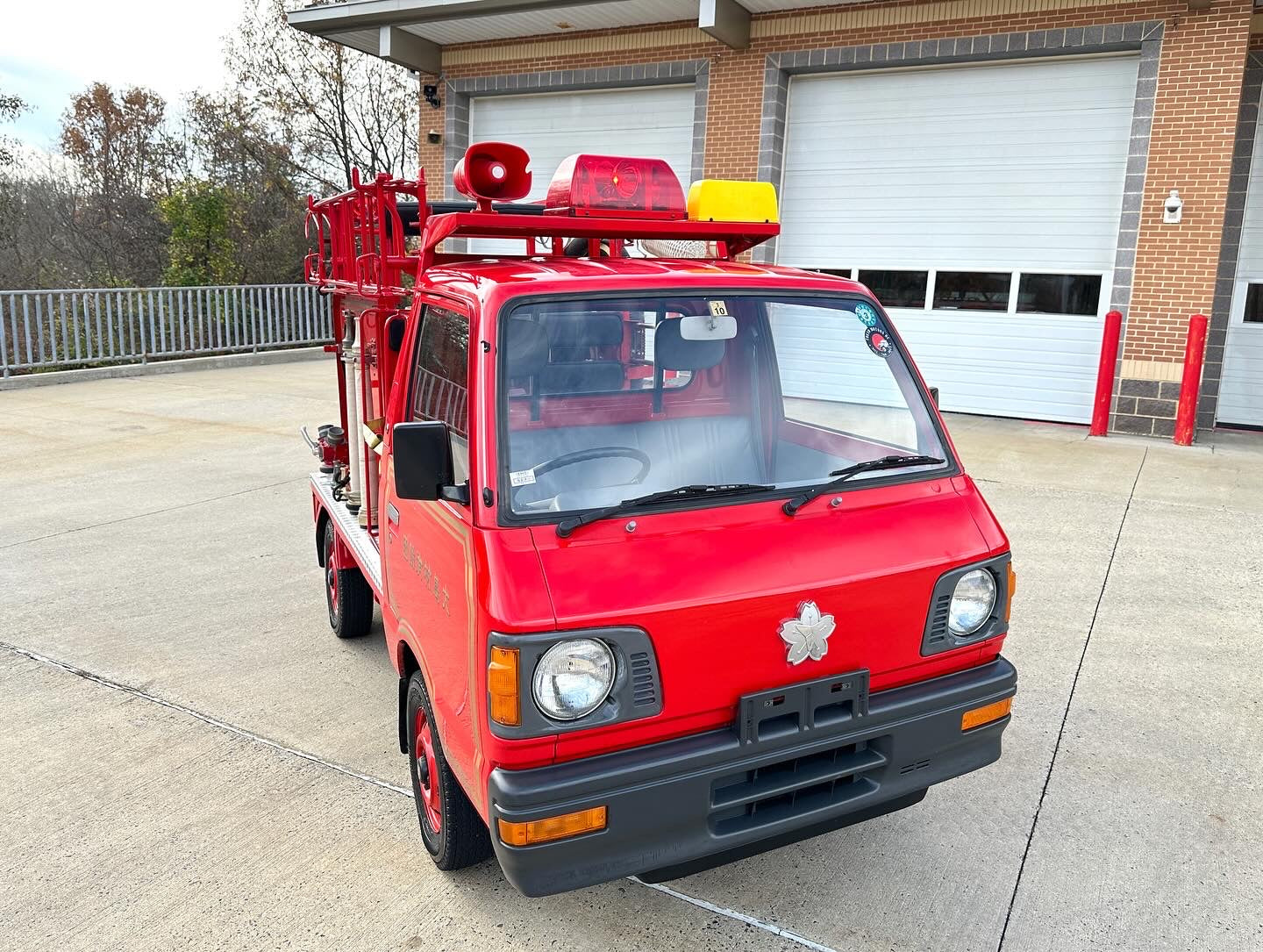 1989 SUBARU SAMBAR M-KT6 —— 5,581 Miles, “EK23” Engine, 544CC, 2 Cylinder, 3 Valve, Gasoline, 4-Speed Manual Transmission With Extra-Low Gear, Selectable 4WD, OEM Radio, Open-Air Rear Bench Seat, Equipped With Rabbit Fire Fighting Pump, Hoses, Nozzles, Ladder, Siren, Loudspeaker System, Spotlight, Emergency Flashers, And Rare Japanese Fire Extinguisher.