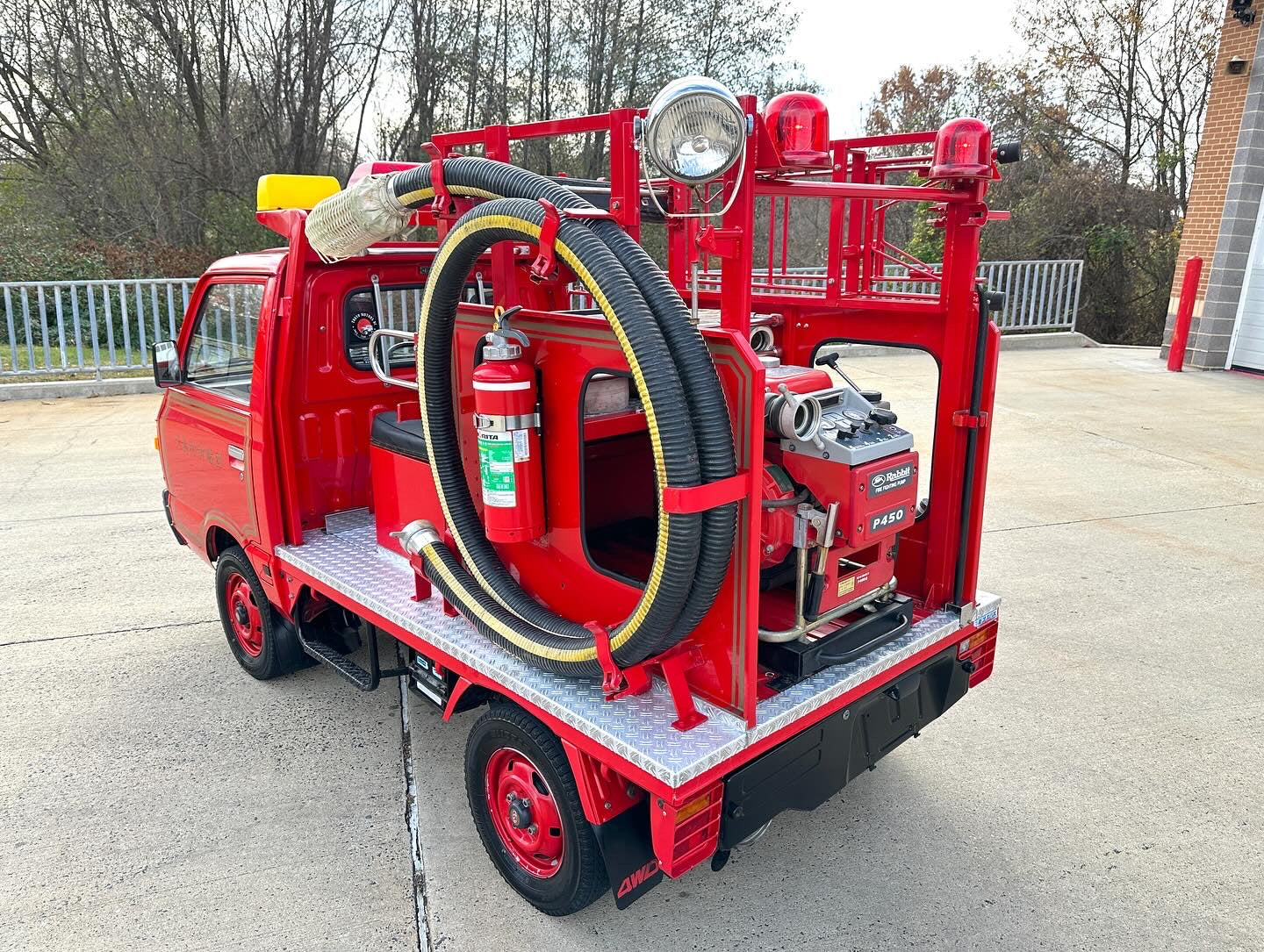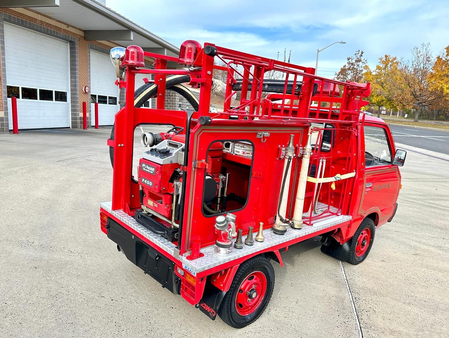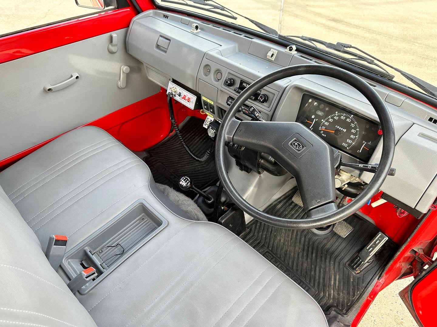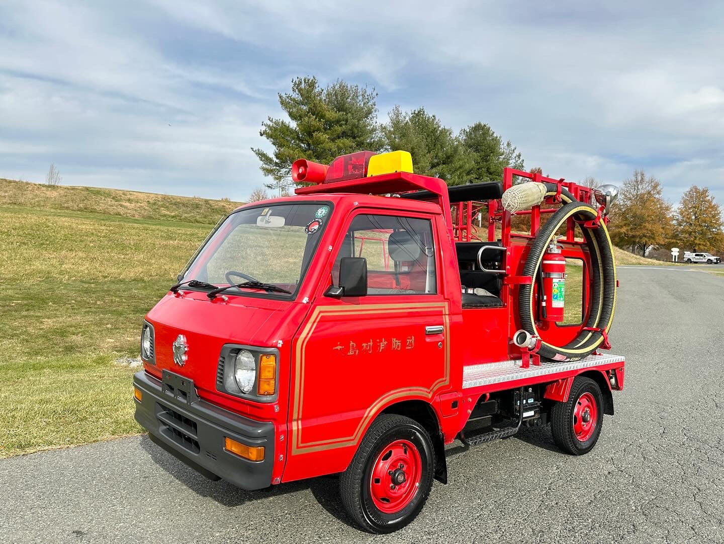 1989 SUBARU SAMBAR M-KT6 —— 5,581 Miles, “EK23” Engine, 544CC, 2 Cylinder, 3 Valve, Gasoline, 4-Speed Manual Transmission With Extra-Low Gear, Selectable 4WD, OEM Radio, Open-Air Rear Bench Seat, Equipped With Rabbit Fire Fighting Pump, Hoses, Nozzles, Ladder, Siren, Loudspeaker System, Spotlight, Emergency Flashers, And Rare Japanese Fire Extinguisher.