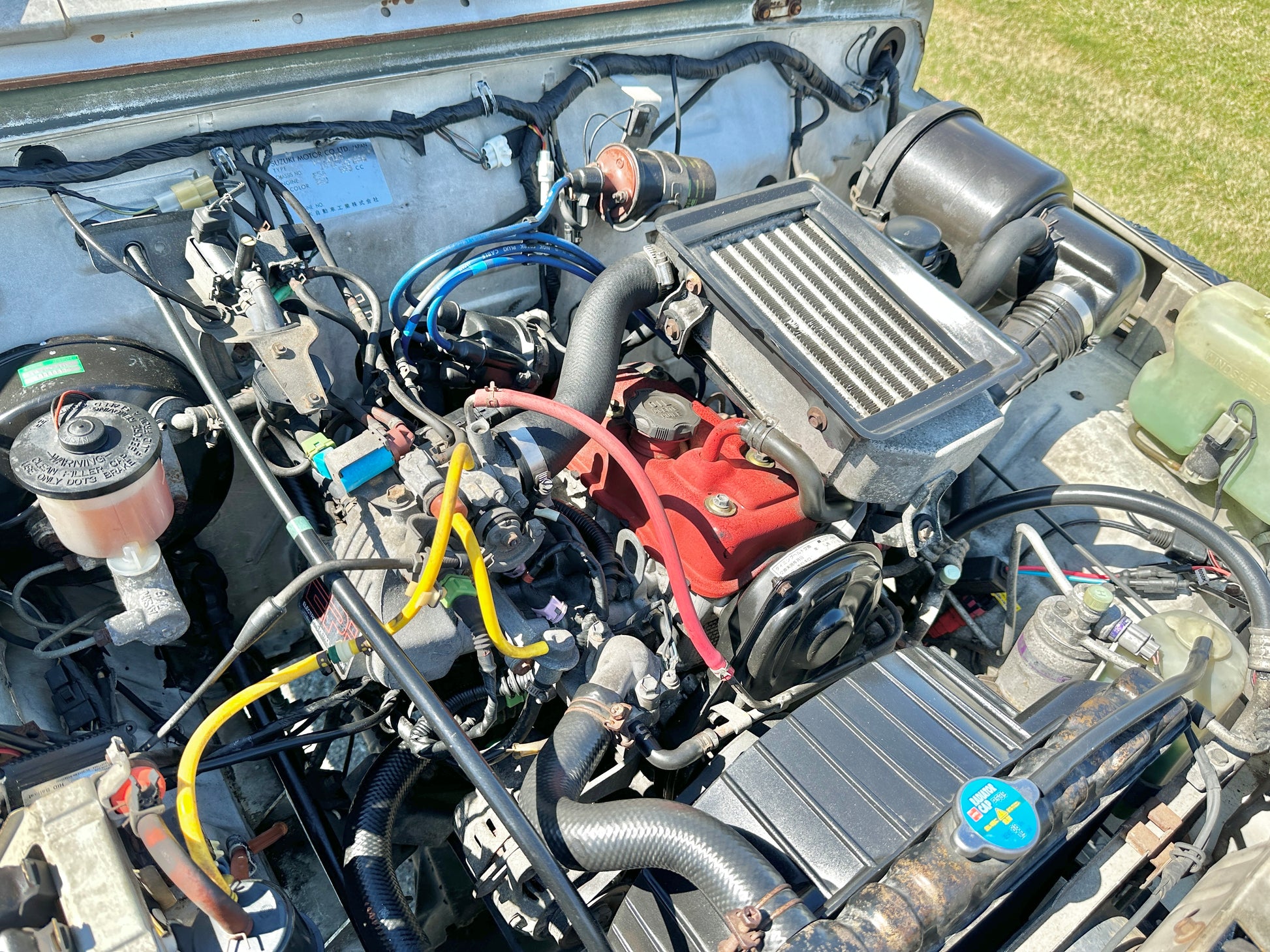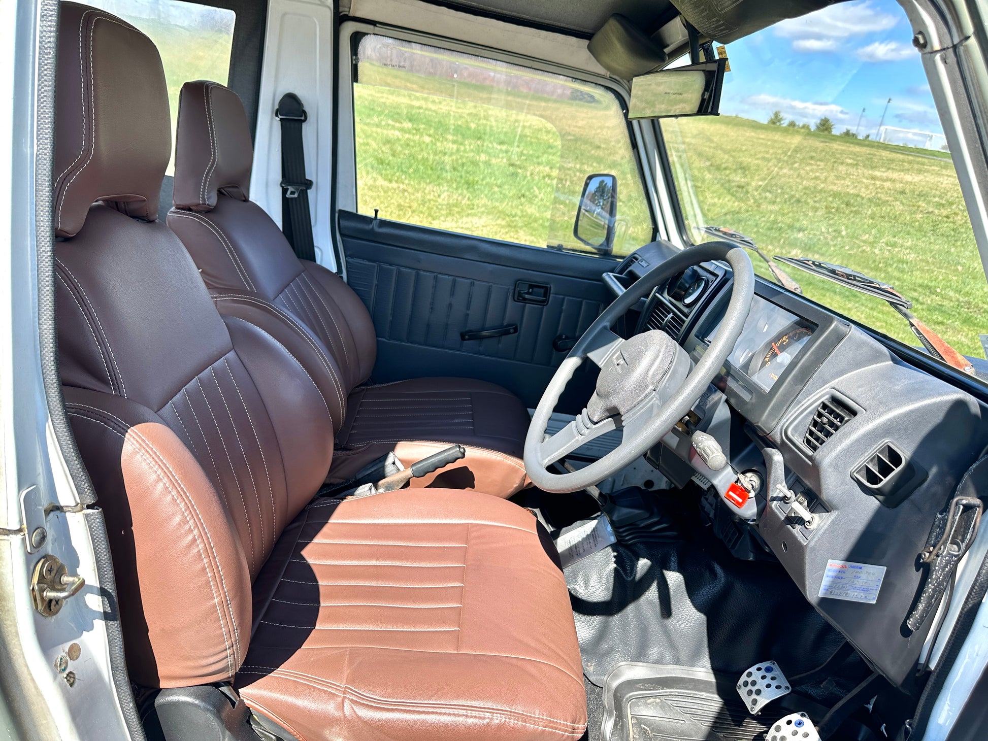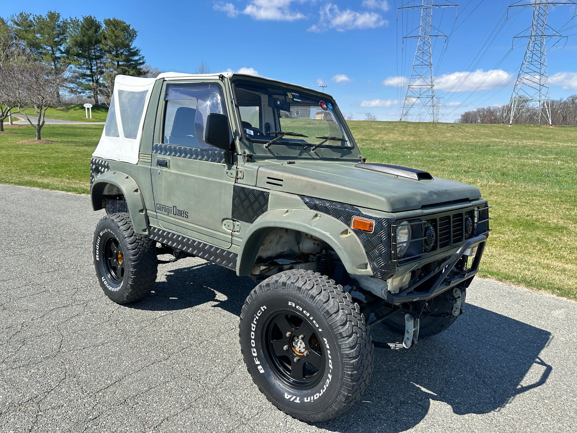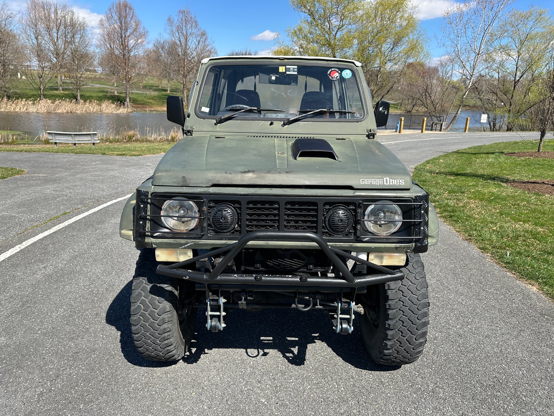 1989 SUZUKI JIMNY TURBO 4WD M-JA71C —— 60,817 Miles, “F5A”, Inline 3, 543cc, Gasoline, Turbocharged, 5-Speed Manual Transmission, Selectable 4WD With A 2-Speed Transfercase, Manually-Locking Front Hubs, Solid Front Axle, 15” Inch Wheels, 4 Seater, Leather Seat Covers With Front Bucket Seats, Folding Rear Seats, After Market Front & Rear Bumpers, Wide Fender Flares, Lifted, Aftermarket Exhaust, Soft Top, Air Conditioner & Heat.