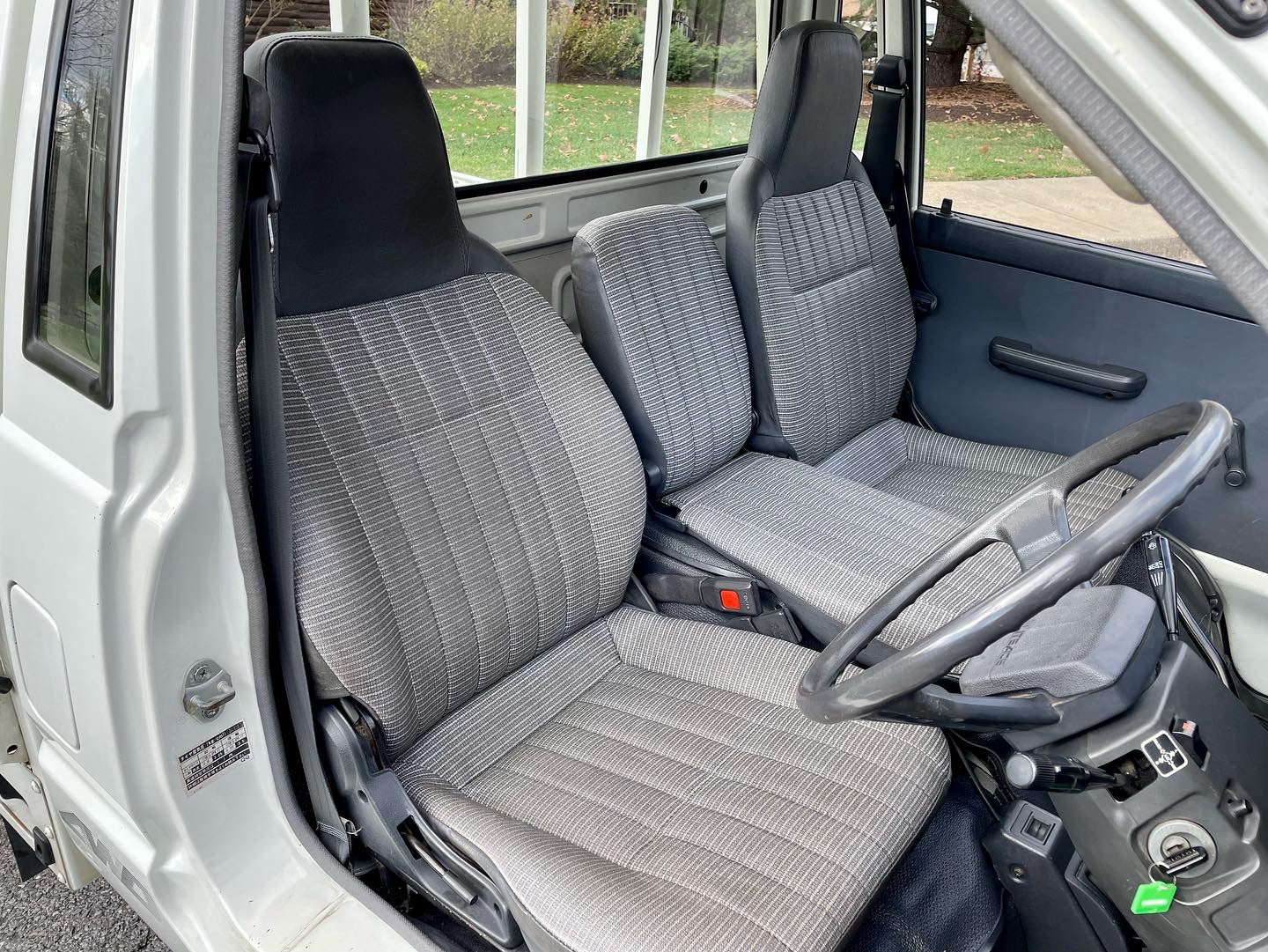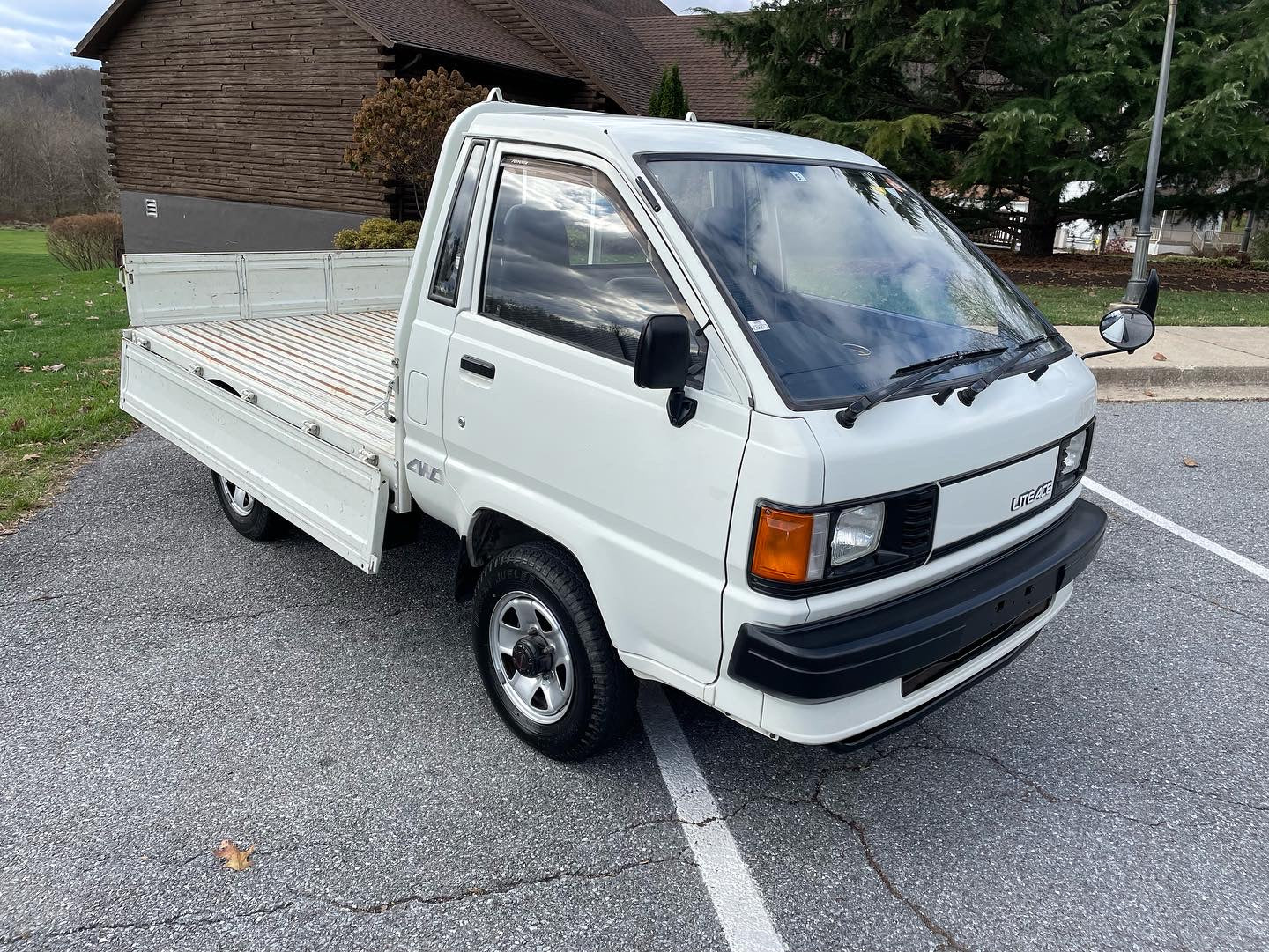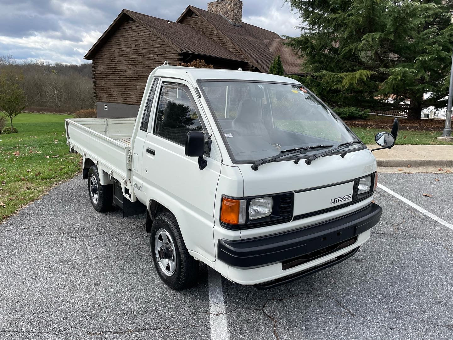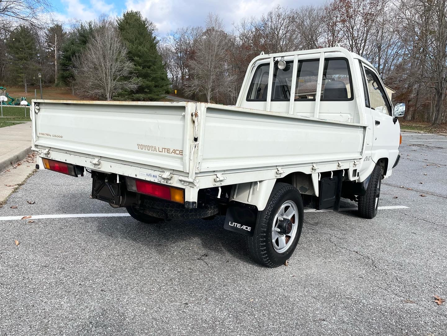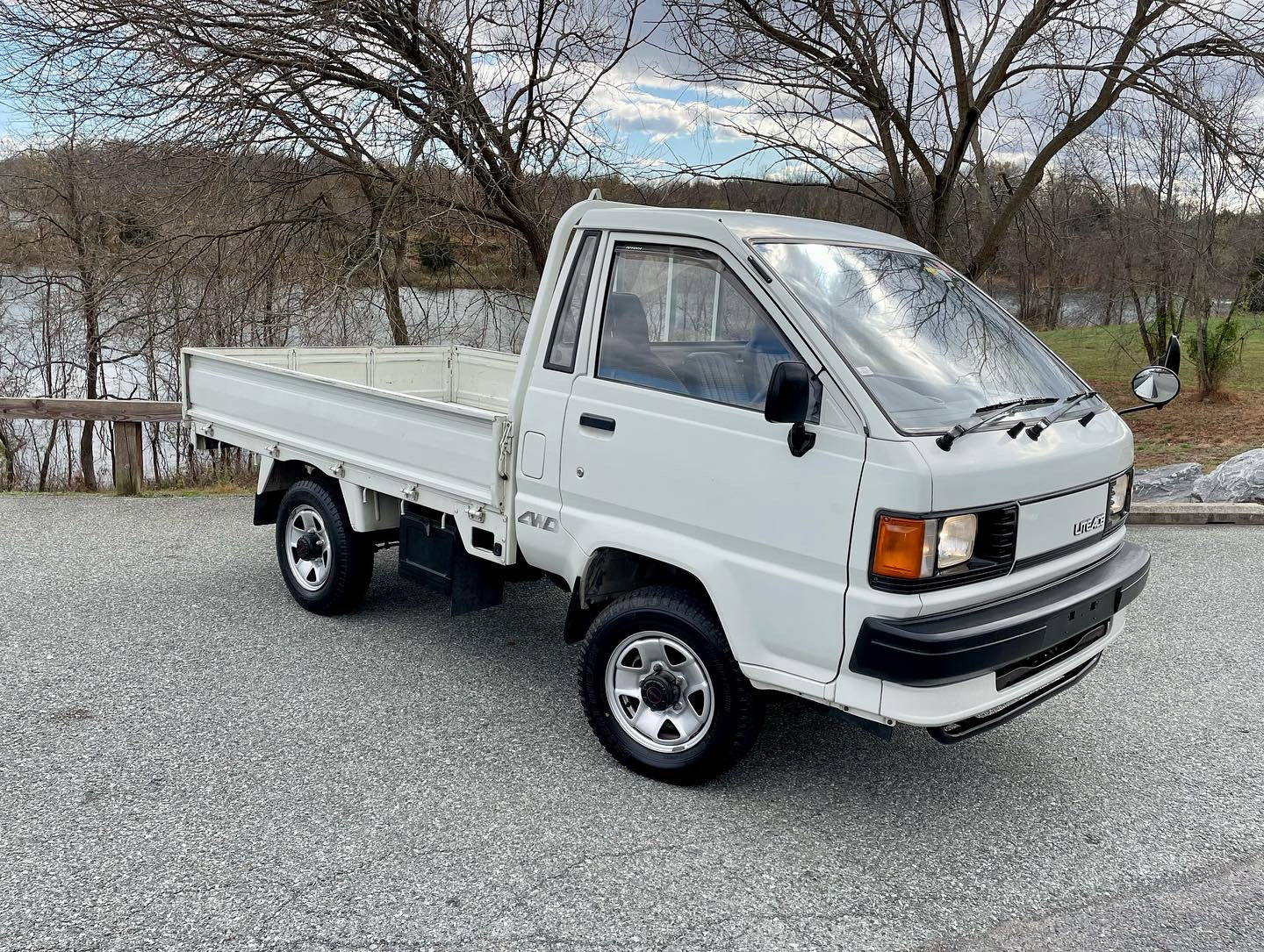 1990 TOYOTA LITEACE YM60——19k miles. “2Y” 1812cc, Inline Four, Gasoline, Column-Shifted 5 Speed Manual Transmission, Floor Shifted 2 Speed Transfer Case, Push Button 4WD, White Paint, Gray Vinyl Upholstery, 60/40 Split Seat With A Center Armrest, Manual Windows, Drop-Side Cargo Bed, Bulkhead Bar, EXCELLENT CONDITION & ZERO RUST!