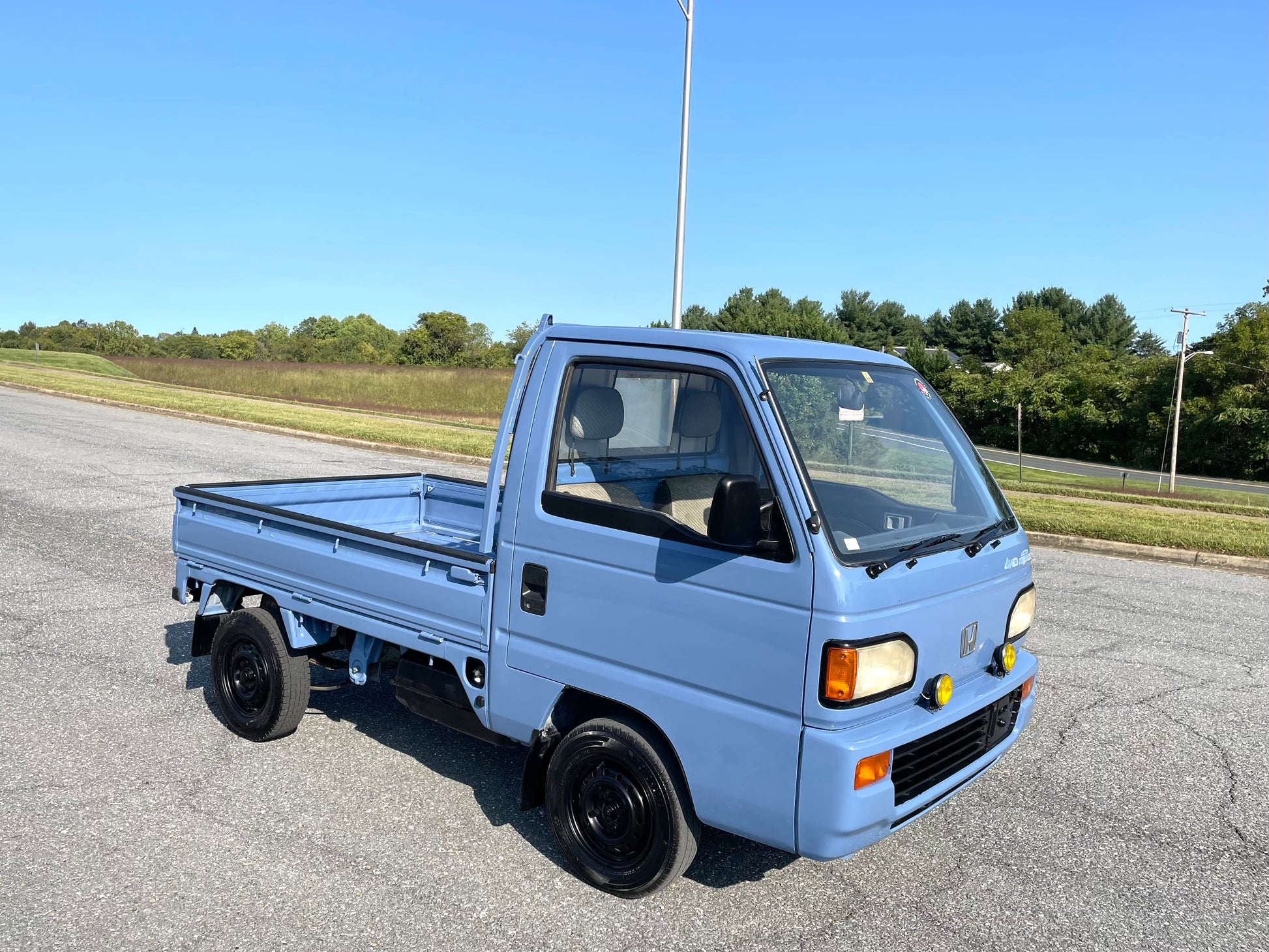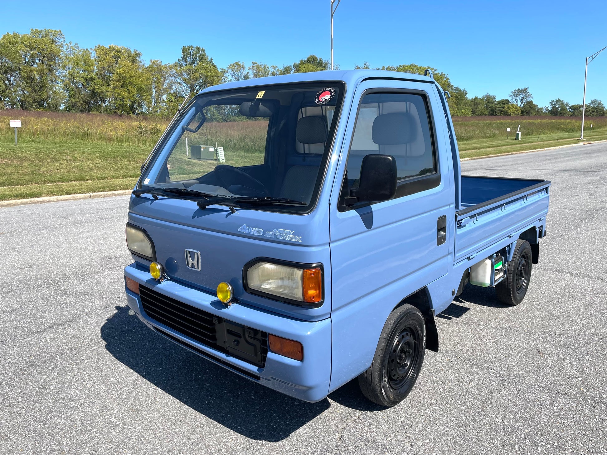 1991 HONDA ACTY ATTACK V-HA4 —— 49,727 Miles (TMU), “E07A” Engine, 660CC, Inline-Three, Gasoline, 5-Speed Manual Transmission With ULTRA LOW FORWARD & REVERSE GEARS, DIFF LOCK, 4WD, Blue Paint, Drop-Down Cargo Bed Sides, 350kg Load Capacity, Cargo Area Light, Heat & AIR CONDITIONING, Fog Lights, New Battery & Valve Cover Gasket.