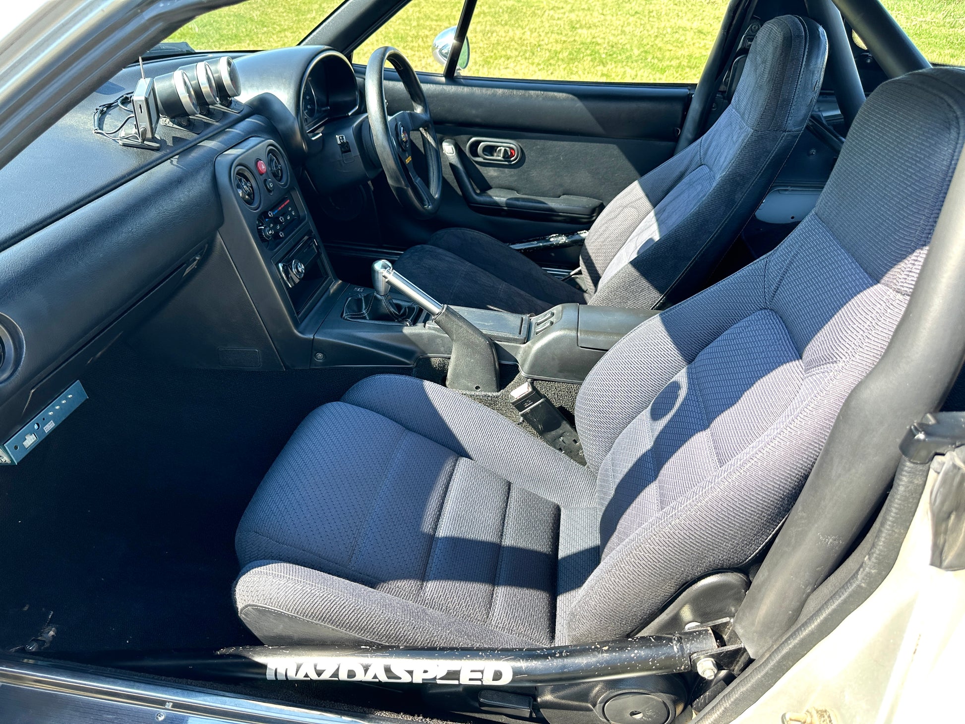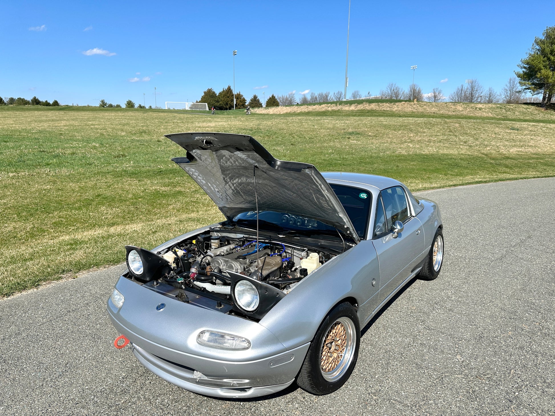 1991 MAZDA EUNOS ROADSTER NA6CE ——77,072 Miles, “B6”, 1.6 Liter Inline 4, DOHC, 16-Valve, JACKSON RACING SUPERCHARGER, 5-Speed Manual Transmission, RWD, Silverstone Metallic Paint, Cloth Upholstery, ROLL CAGE, Air Conditioning & Heat, Power Windows, Pop-Up Headlights, SSR SPEEDSTAR FORMULA MESH WHEELS Wrapped In Brand New Tires, OHLINS RACING ADJUSTABLE COILOVERS, MOMO STEERING WHEEL, TITANIUM EXHAUST.