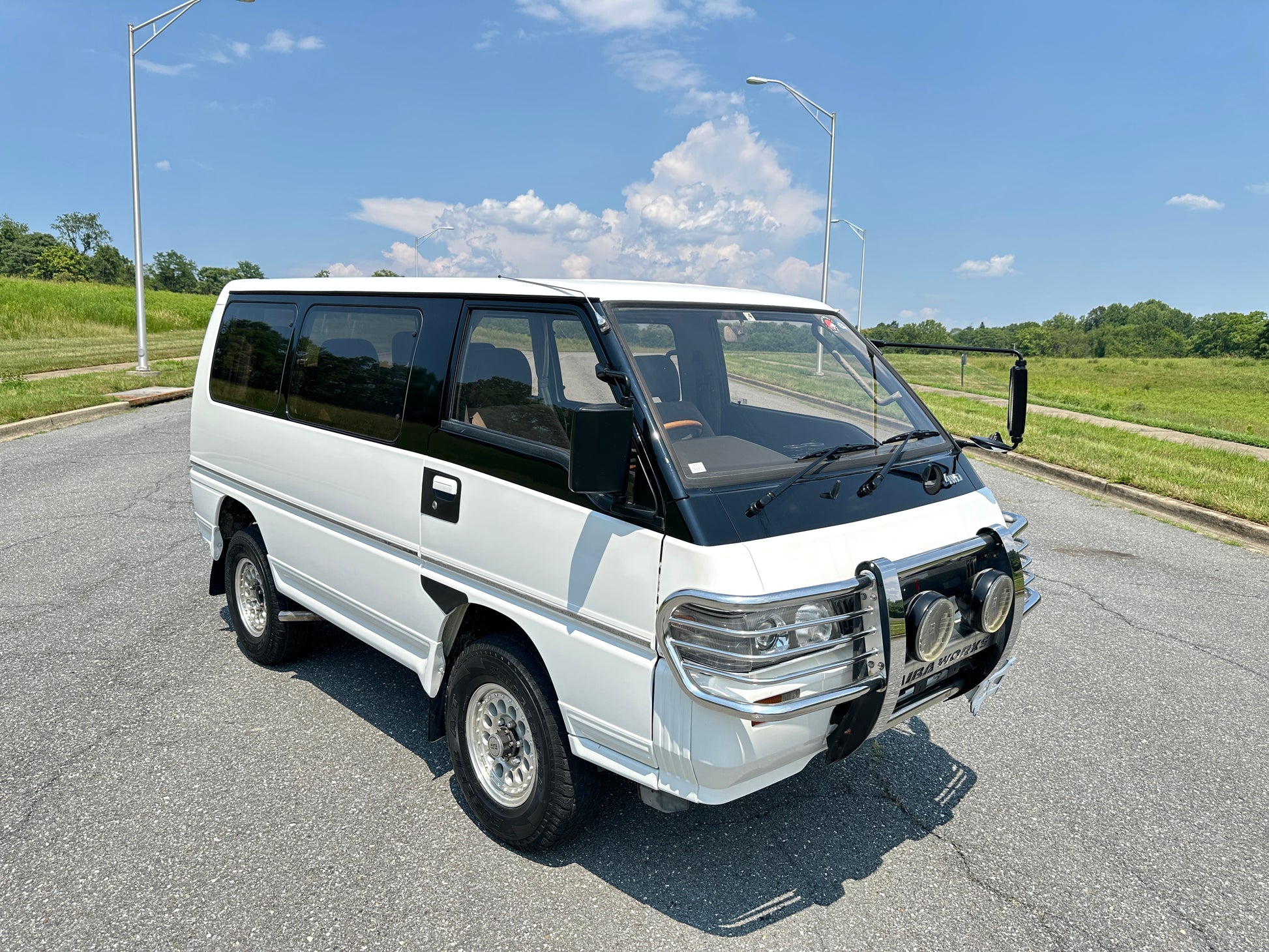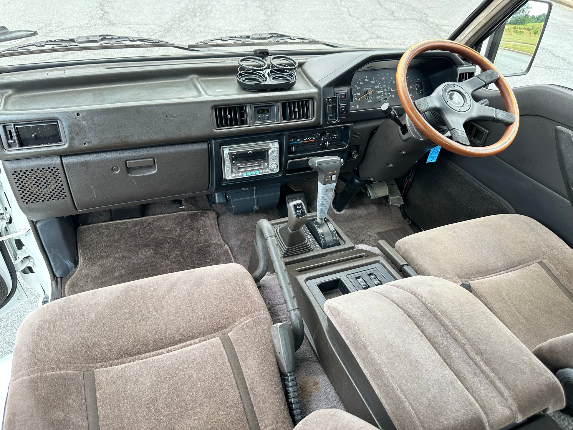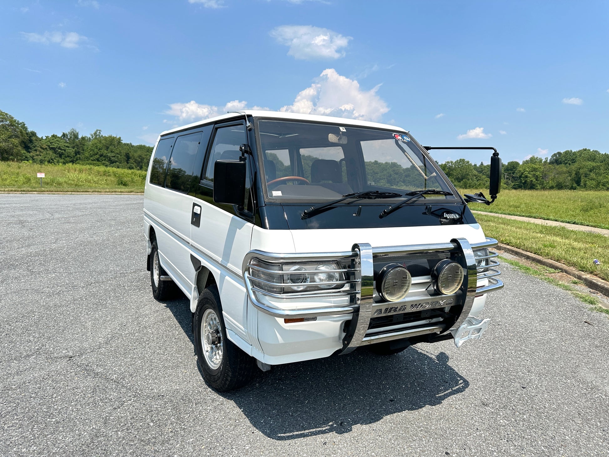 1991 MITSUBISHI DELICA STAR WAGON 4WD P25W——107,321 Miles, “4D56”, Inline 4, 2500cc, 2.5 Liter, Turbo Diesel, 4-Speed Automatic Transmission and a Dual Range Transfer Case, Selectable 4WD, Auto Free Hubs, 180 Degree Swivel Middle Captains Seat, 3rd Row Seating, 7 Seater, Brown Cloth Upholstery, Power Windows, Aftermarket Wheels Wrapped, Power Locks, AIBA WORKS Bull-Bar With Fog Lights, Automatic Dual-Zone Climate Control, Sunroof.