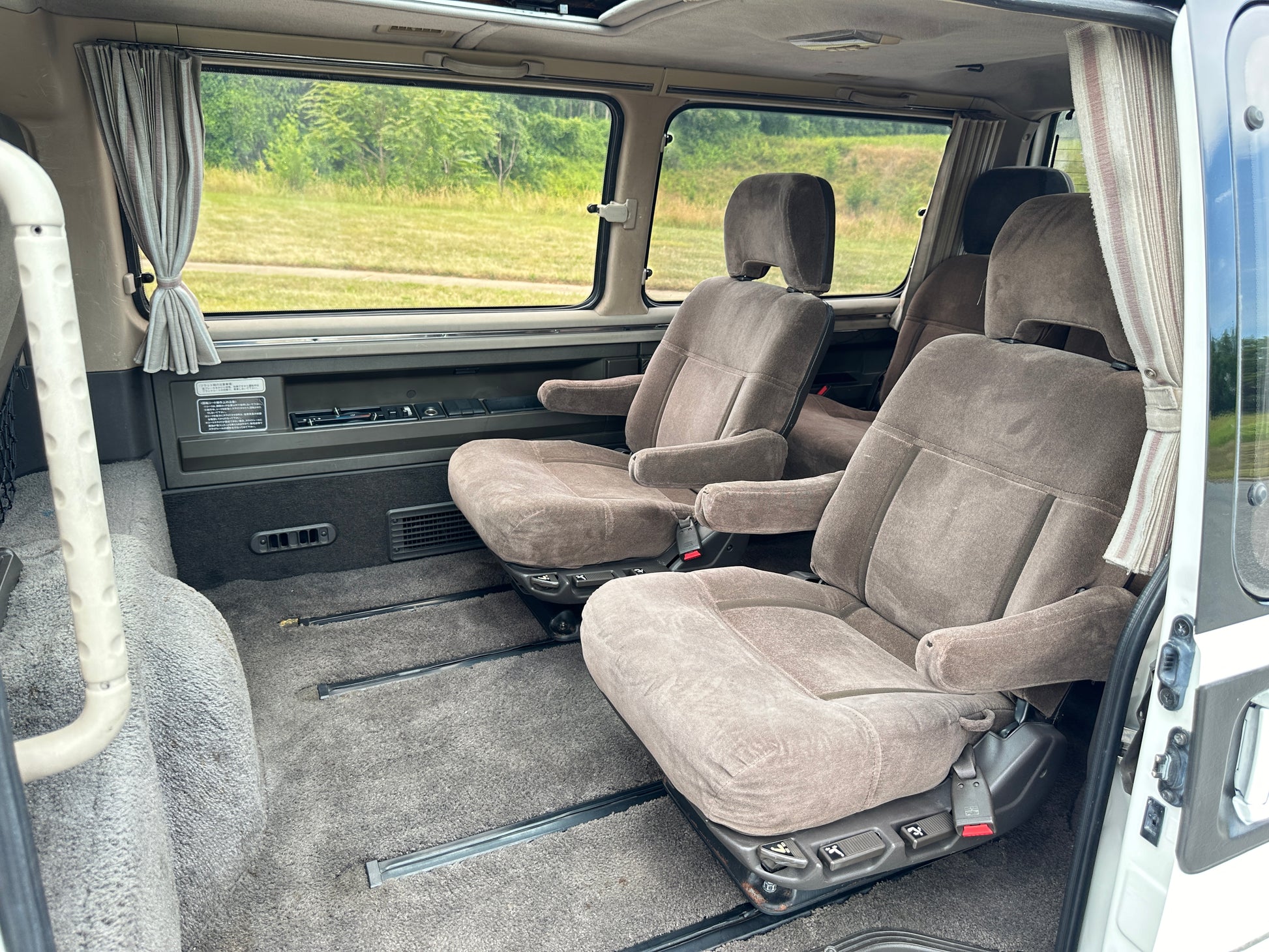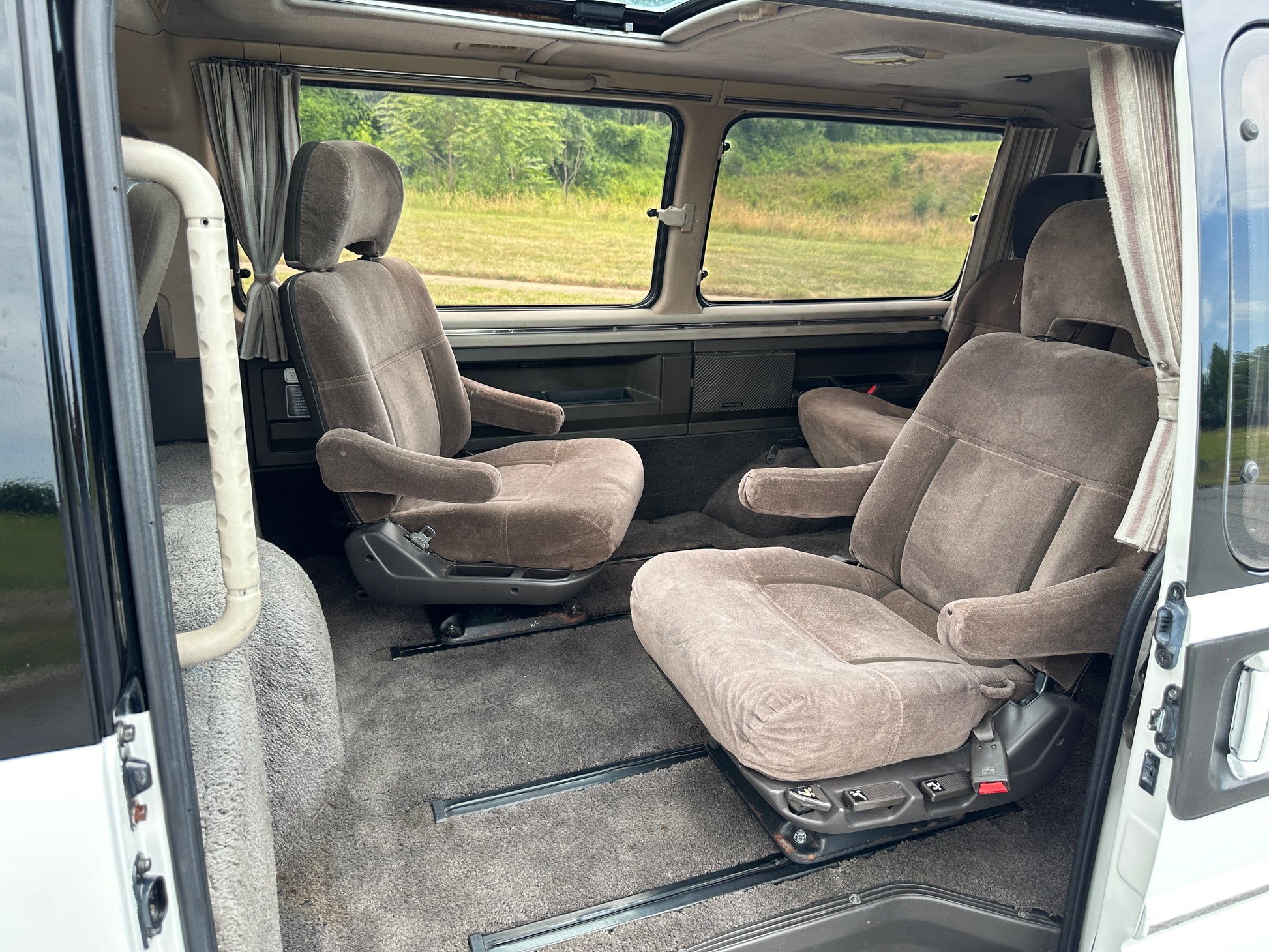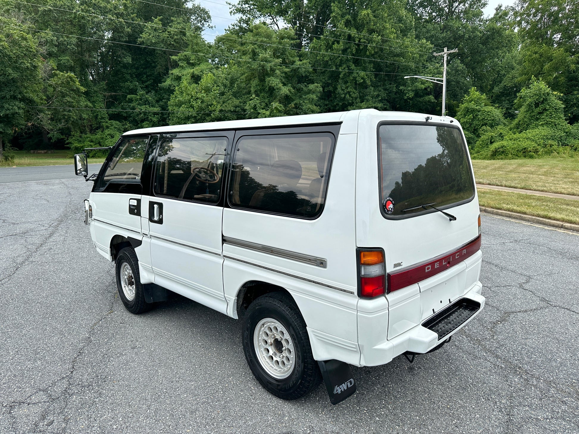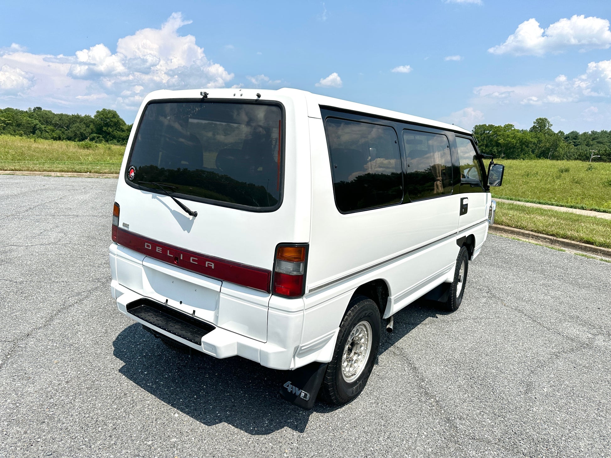 1991 MITSUBISHI DELICA STAR WAGON 4WD P25W——107,321 Miles, “4D56”, Inline 4, 2500cc, 2.5 Liter, Turbo Diesel, 4-Speed Automatic Transmission and a Dual Range Transfer Case, Selectable 4WD, Auto Free Hubs, 180 Degree Swivel Middle Captains Seat, 3rd Row Seating, 7 Seater, Brown Cloth Upholstery, Power Windows, Aftermarket Wheels Wrapped, Power Locks, AIBA WORKS Bull-Bar With Fog Lights, Automatic Dual-Zone Climate Control, Sunroof.