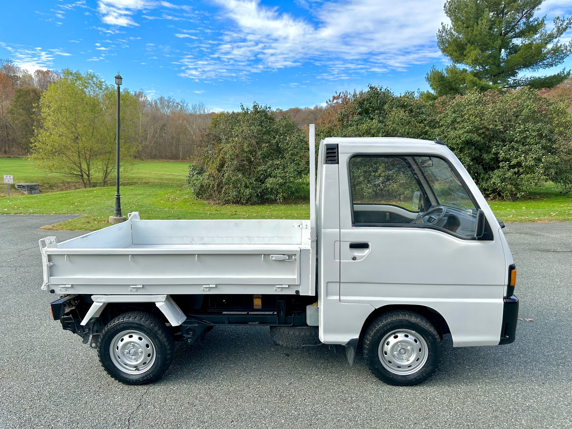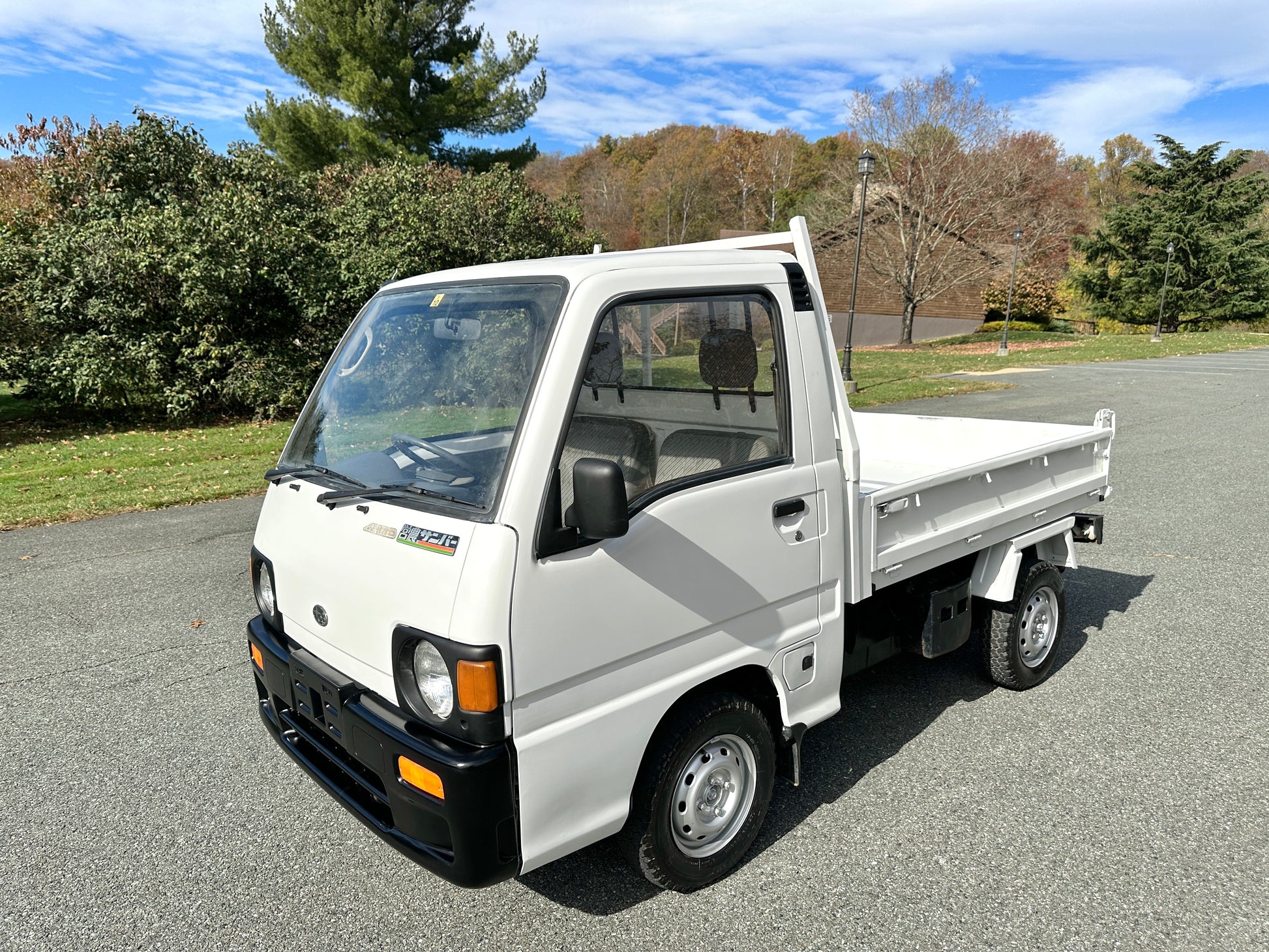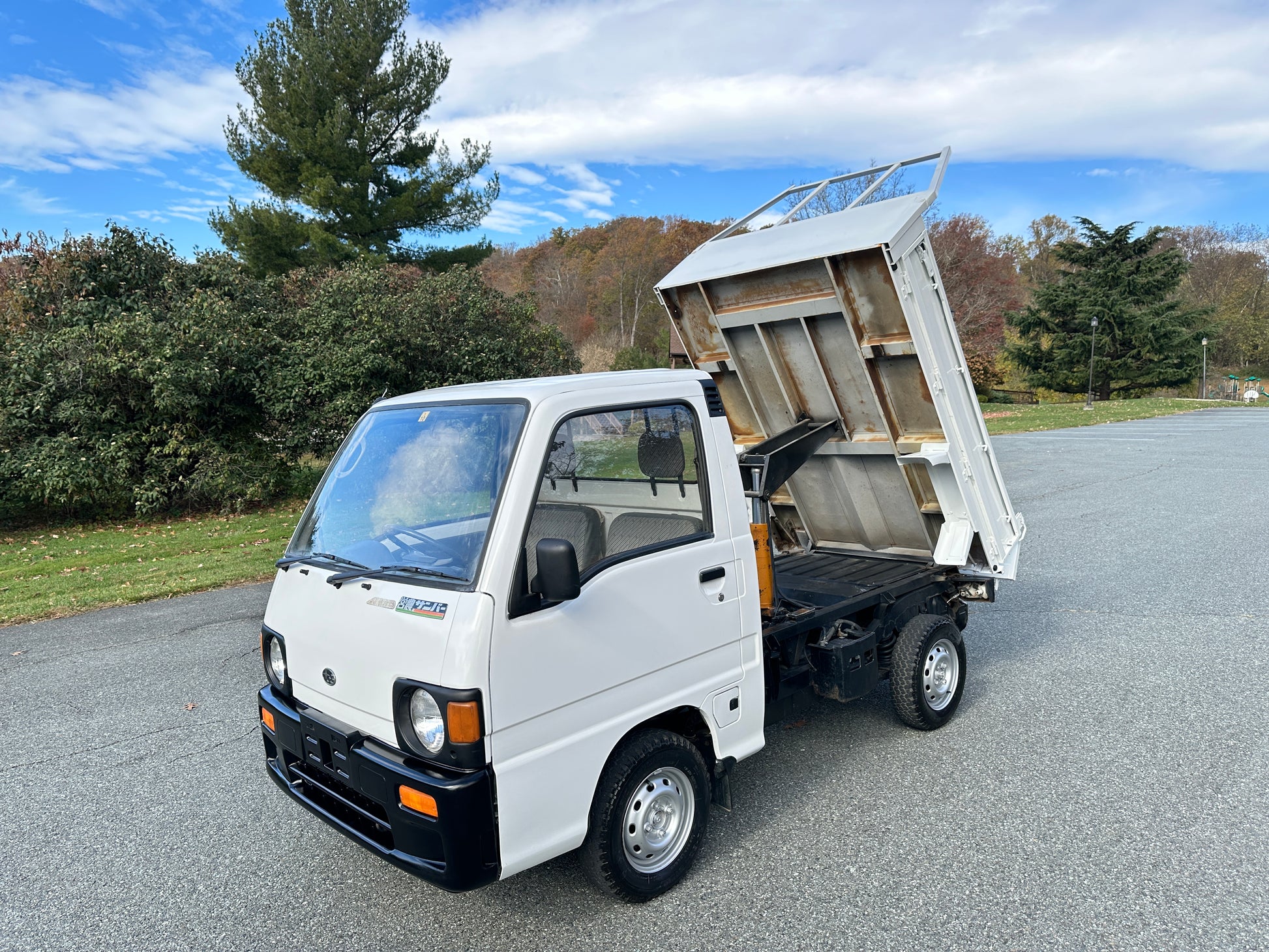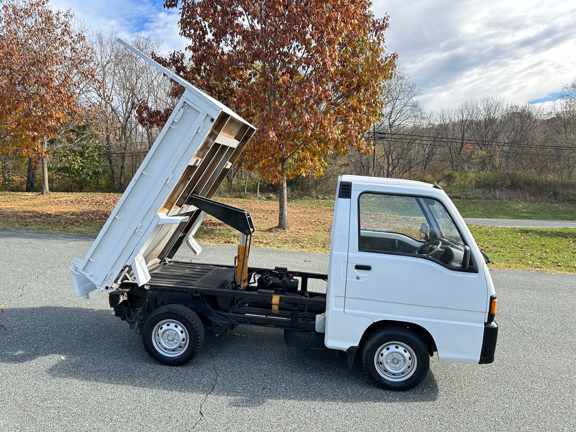 1991 SUBARU SAMBAR V-KS4 ——27,313 Miles, “EN07” CLOVER 4 Engine, 660CC, 4-Cylinder, Gasoline, 5-Speed Manual Transmission, EXTRA LOW GEAR, Selectable 4WD, Heat & Fan, DROP SIDE DUMP BED With 350kg Load Capacity.