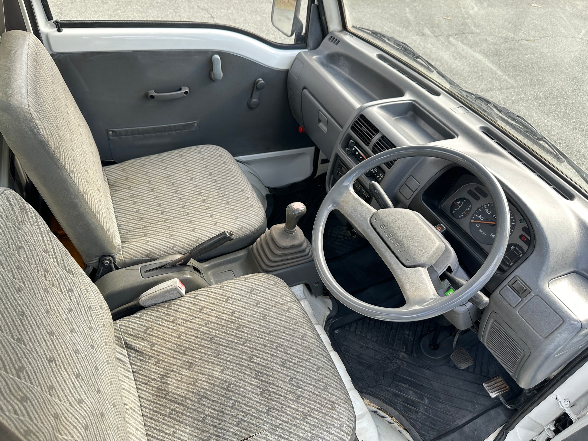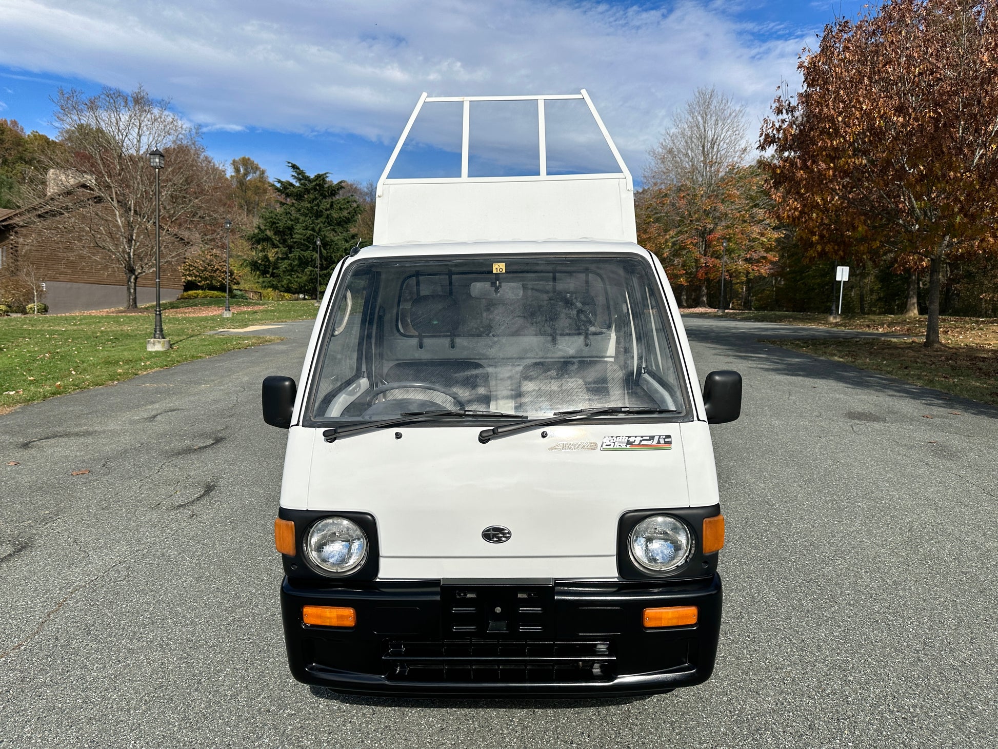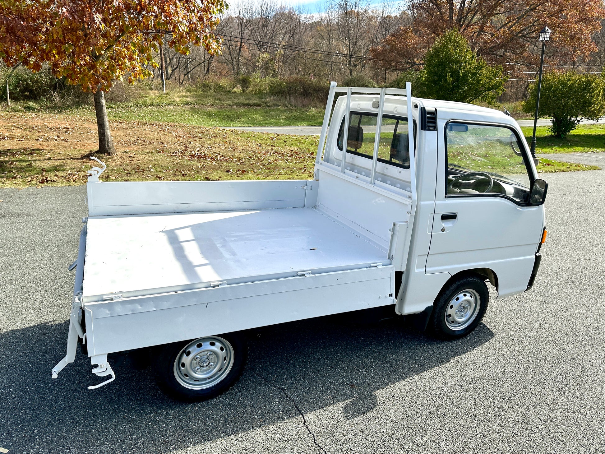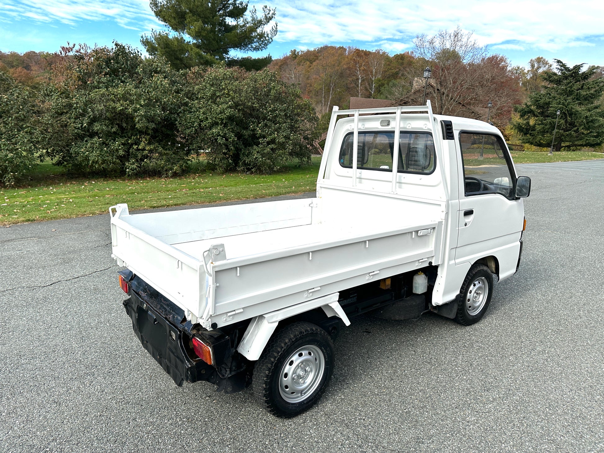 1991 SUBARU SAMBAR V-KS4 ——27,313 Miles, “EN07” CLOVER 4 Engine, 660CC, 4-Cylinder, Gasoline, 5-Speed Manual Transmission, EXTRA LOW GEAR, Selectable 4WD, Heat & Fan, DROP SIDE DUMP BED With 350kg Load Capacity.