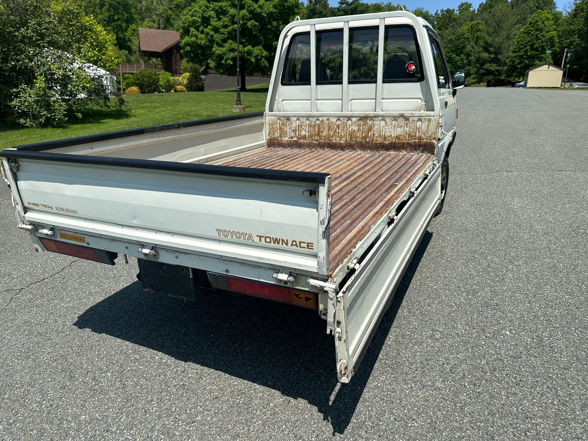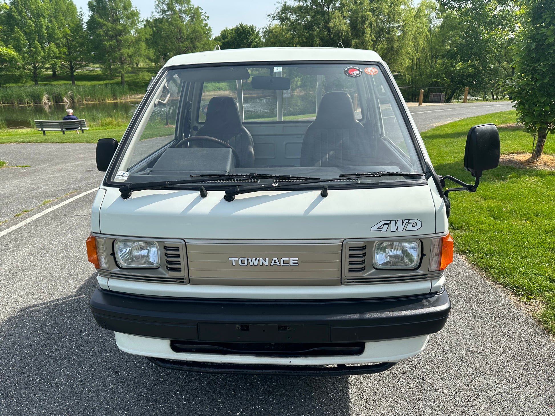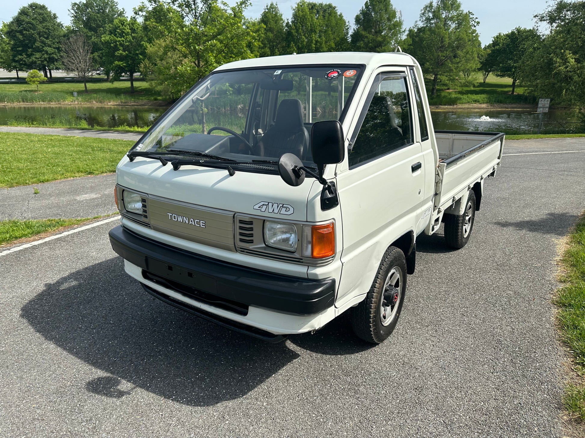 1991 TOYOTA TOWNACE CM60——18,488 miles. “2C” 1974cc, Inline Four, Diesel, Column-Shifted 5 Speed Manual Transmission, Floor Shifted 2 Speed Transfer Case, Push Button 4WD, Manually Locking Aisin Front Hubs, White Paint (048), Vinyl Upholstery, 60/40 Split Seat With A Center Armrest, Manual Windows, 750KG Payload Capacity, Bulkhead Bar.