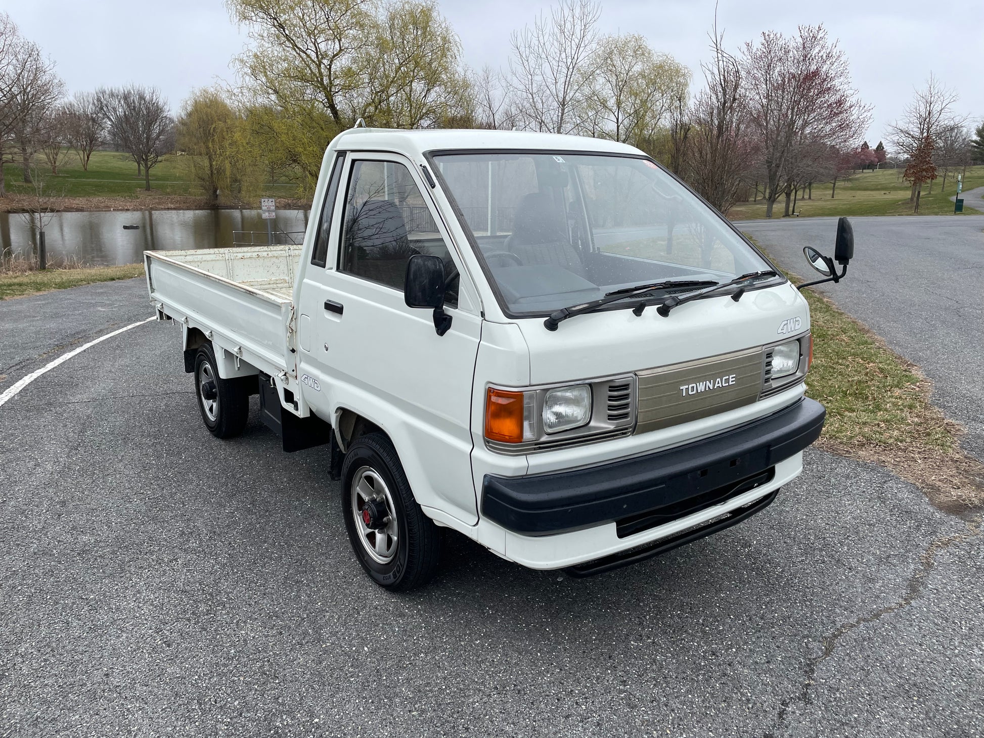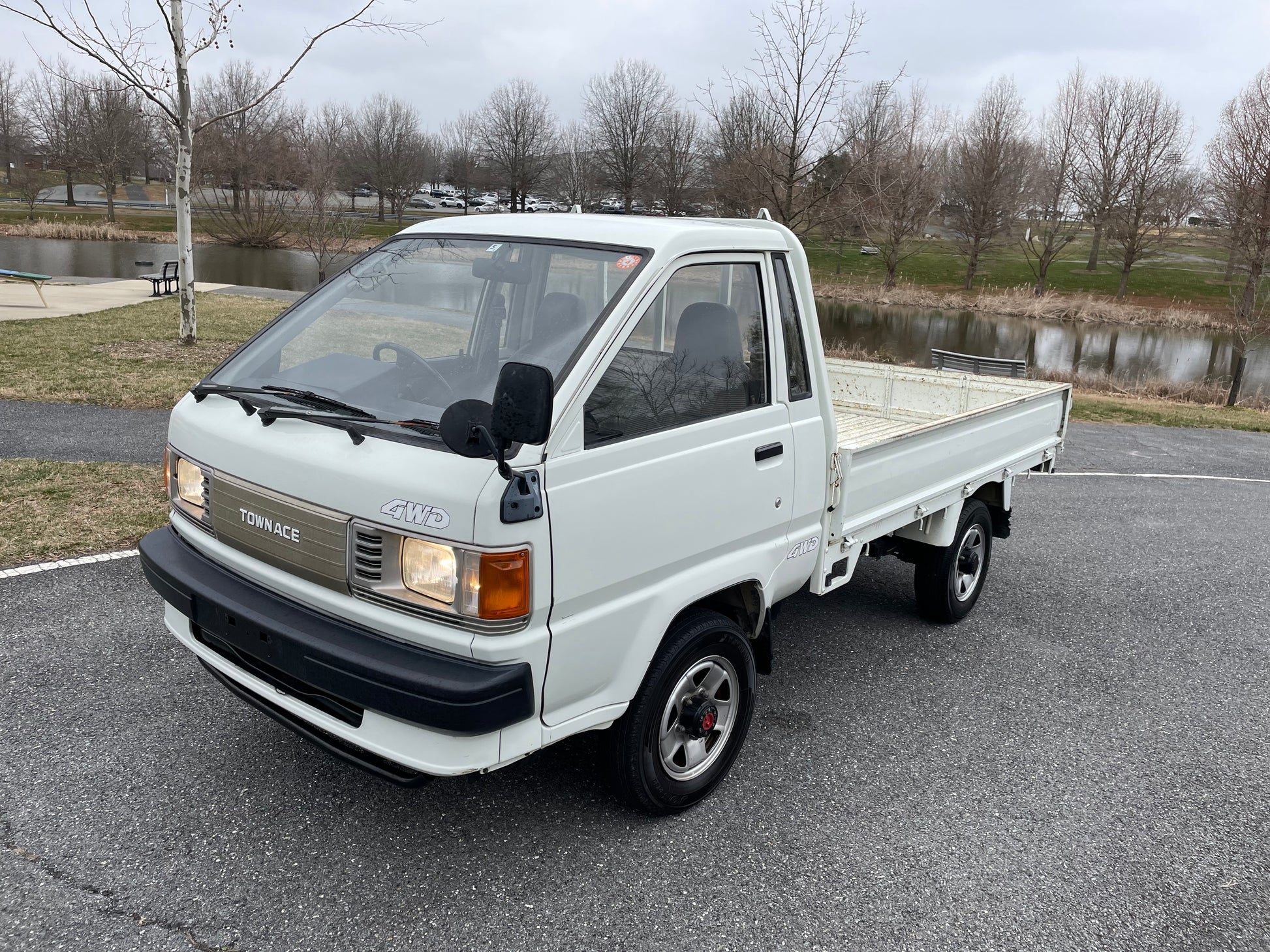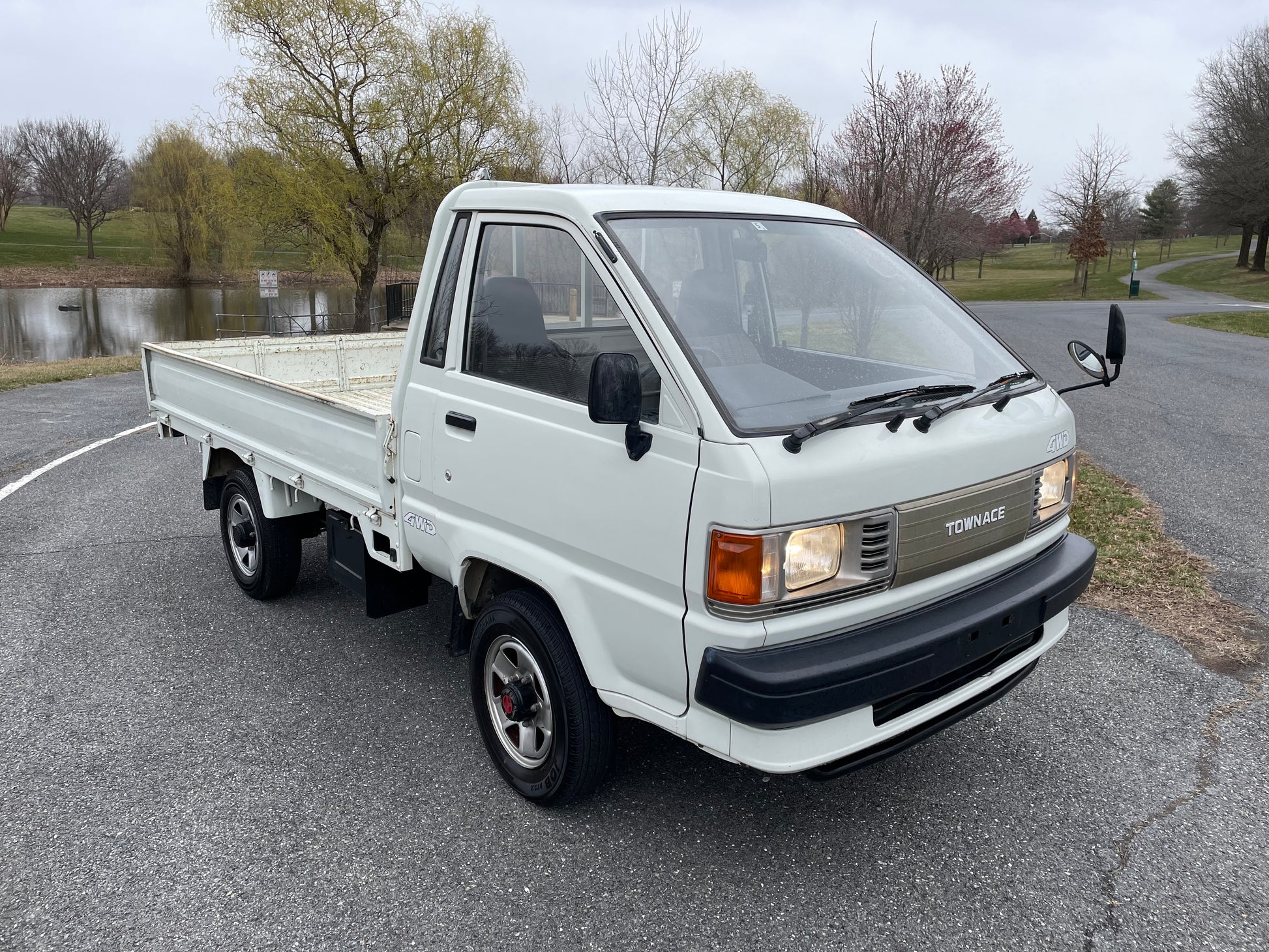 1991 TOYOTA TOWNACE CM65——32,000 miles. “2C” 1974cc, Inline Four, Diesel, Column-Shifted 5 Speed Manual Transmission, Floor Shifted 2 Speed Transfer Case, Push Button 4WD, Manually Locking Aisin Front Hubs, White Paint (048), Vinyl Upholstery, 60/40 Split Seat With A Center Armrest, Manual Windows, 1000KG (1 TON) Payload Capacity, Bulkhead Bar.