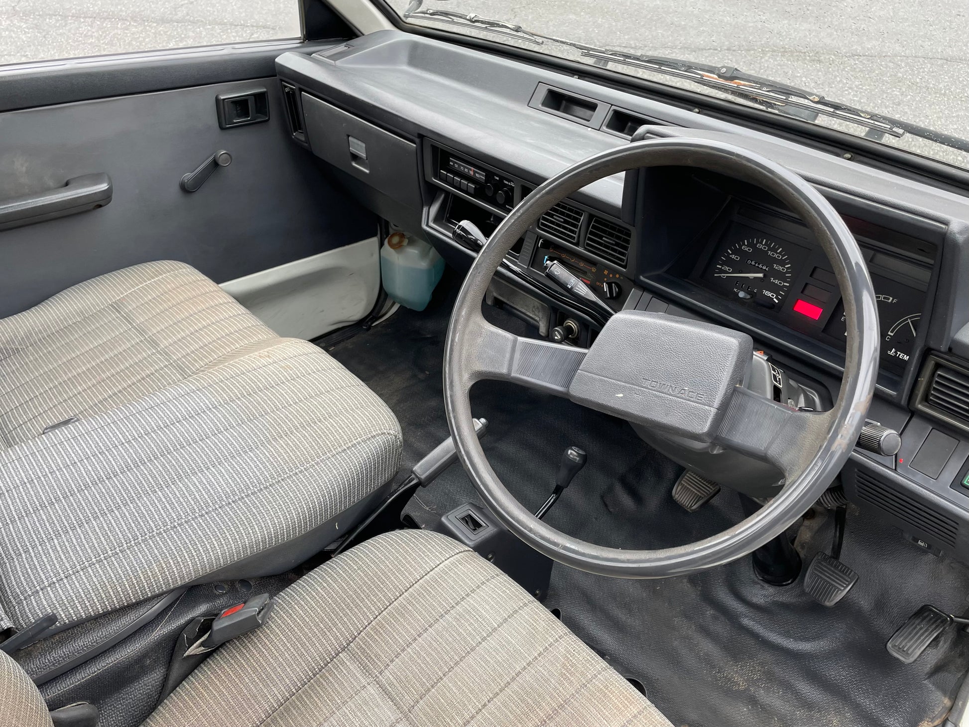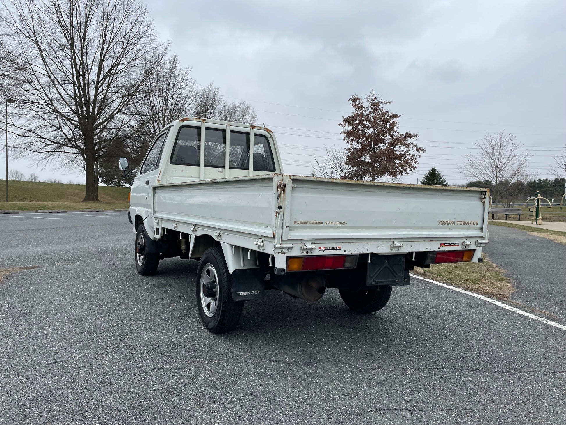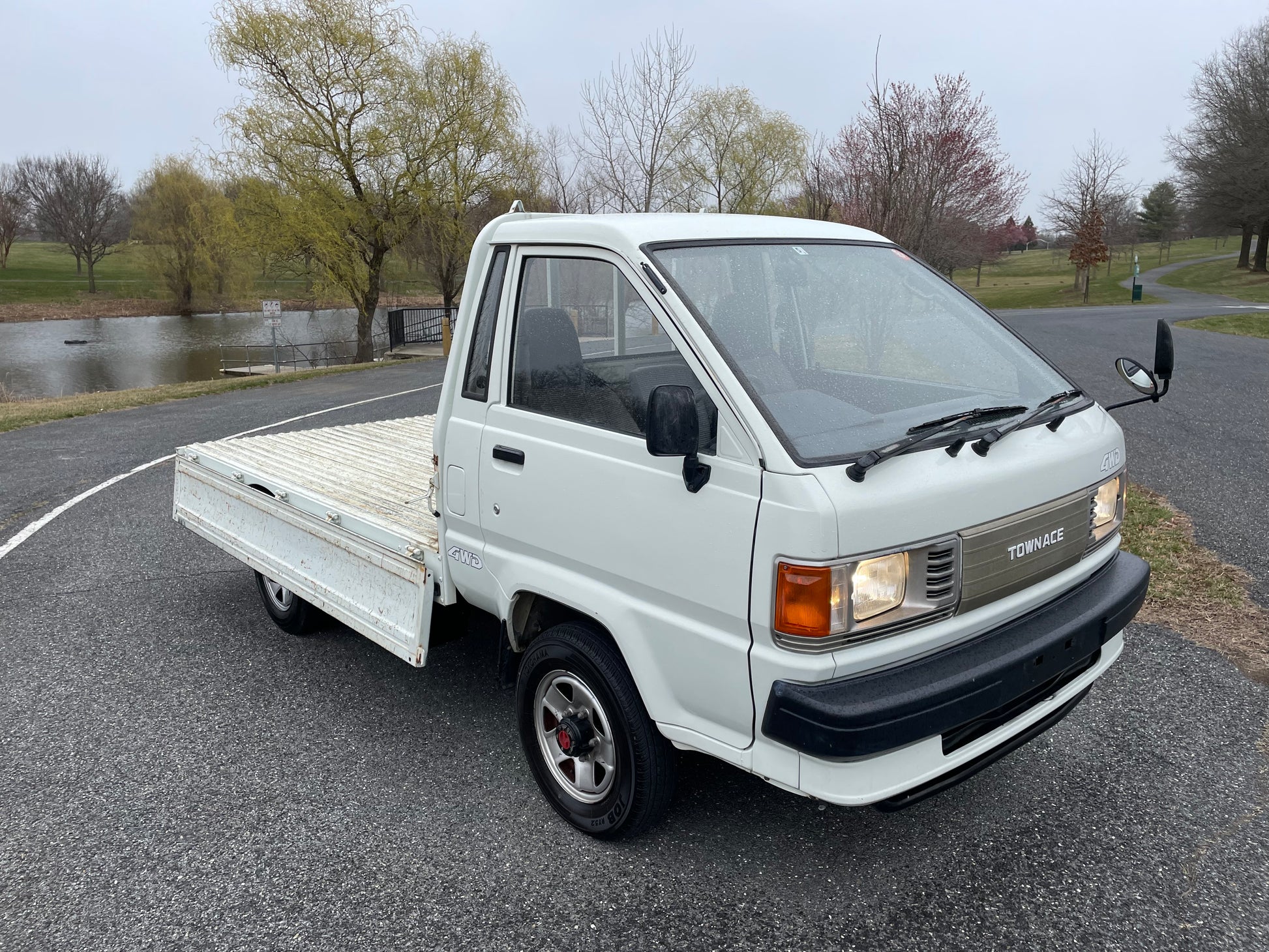 1991 TOYOTA TOWNACE CM65——32,000 miles. “2C” 1974cc, Inline Four, Diesel, Column-Shifted 5 Speed Manual Transmission, Floor Shifted 2 Speed Transfer Case, Push Button 4WD, Manually Locking Aisin Front Hubs, White Paint (048), Vinyl Upholstery, 60/40 Split Seat With A Center Armrest, Manual Windows, 1000KG (1 TON) Payload Capacity, Bulkhead Bar.