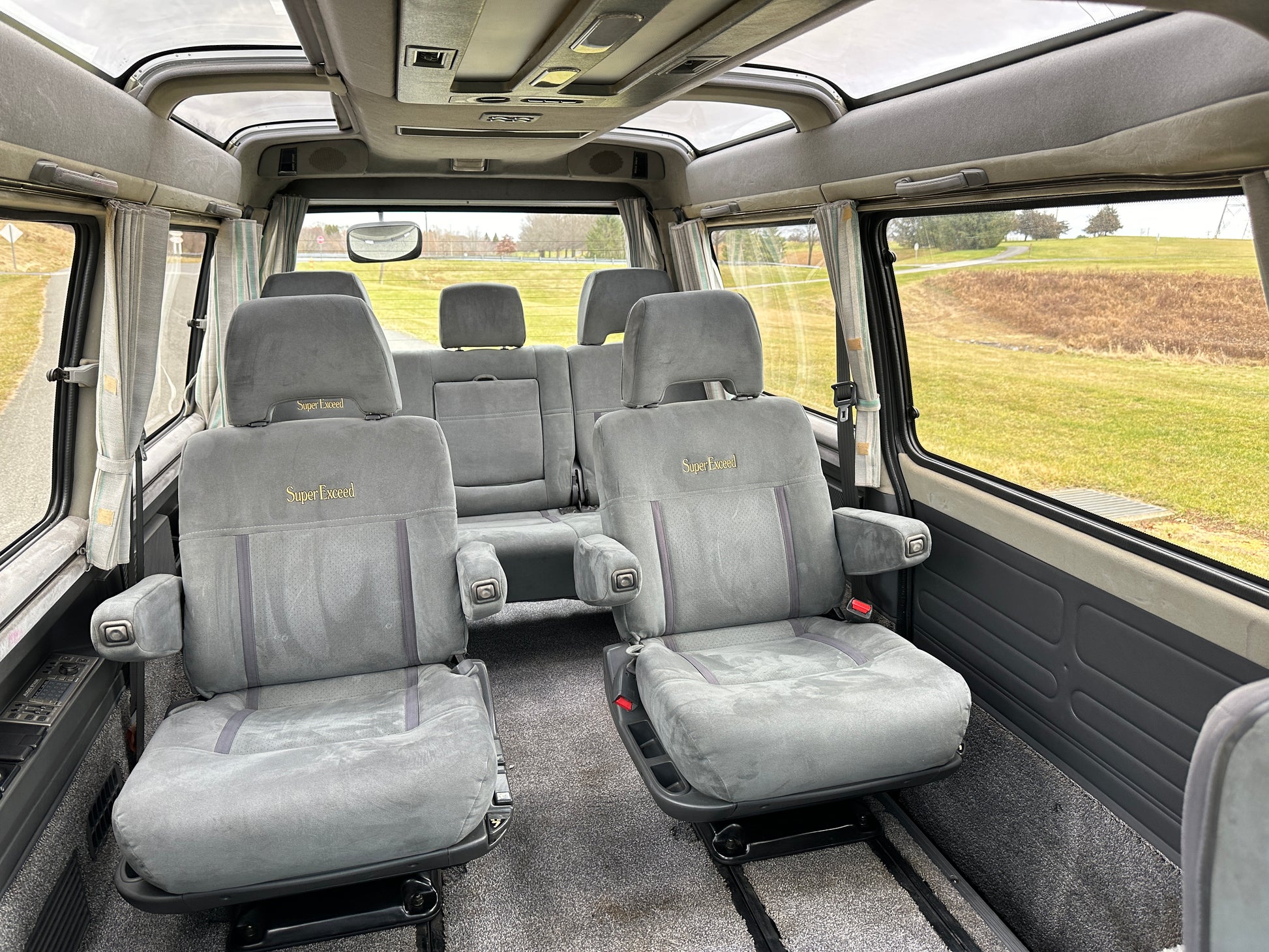 1992 MITSUBISHI DELICA STAR WAGON 4WD SUPER EXCEED P35W——109,990 Miles, “4D56”, Inline 4, 2500cc, 2.5 Liter, TURBO DIESEL, 4-Speed Automatic Transmission and a Dual Range Transfer Case, Selectable 4WD, Auto Free Front Hubs, Factory RainGuards, 180 Degree Swivel Middle Captains Seats, 3rd Row Seating, 7 Seater, Cloth Upholstery, Power Windows, CV645 Wheels Wrapped In Yokohama Geolandar A/T Tires , Power Locks, Factory Bull-Bar, Automatic Dual-Zone Climate Control, Privacy Tint, Reverse Camera.