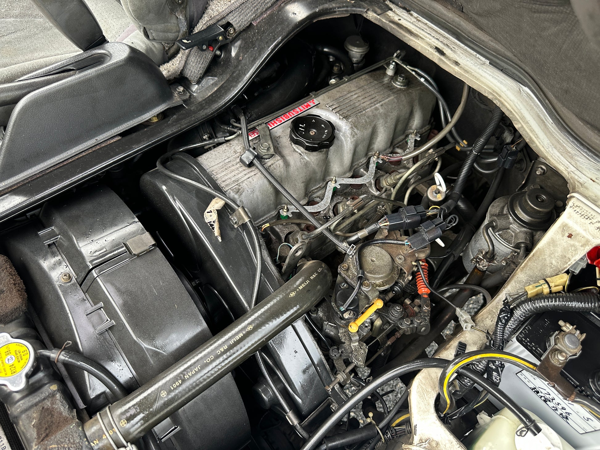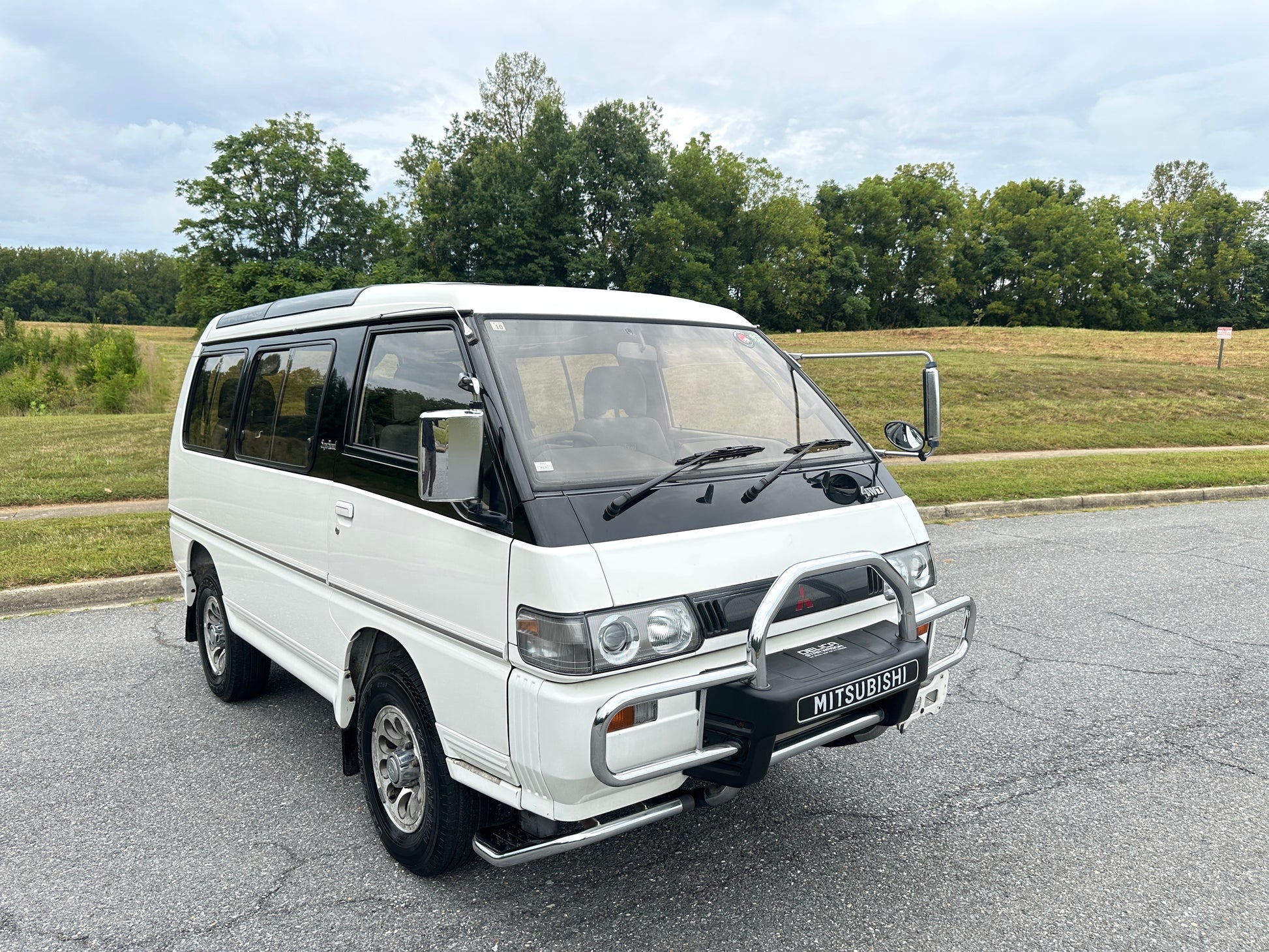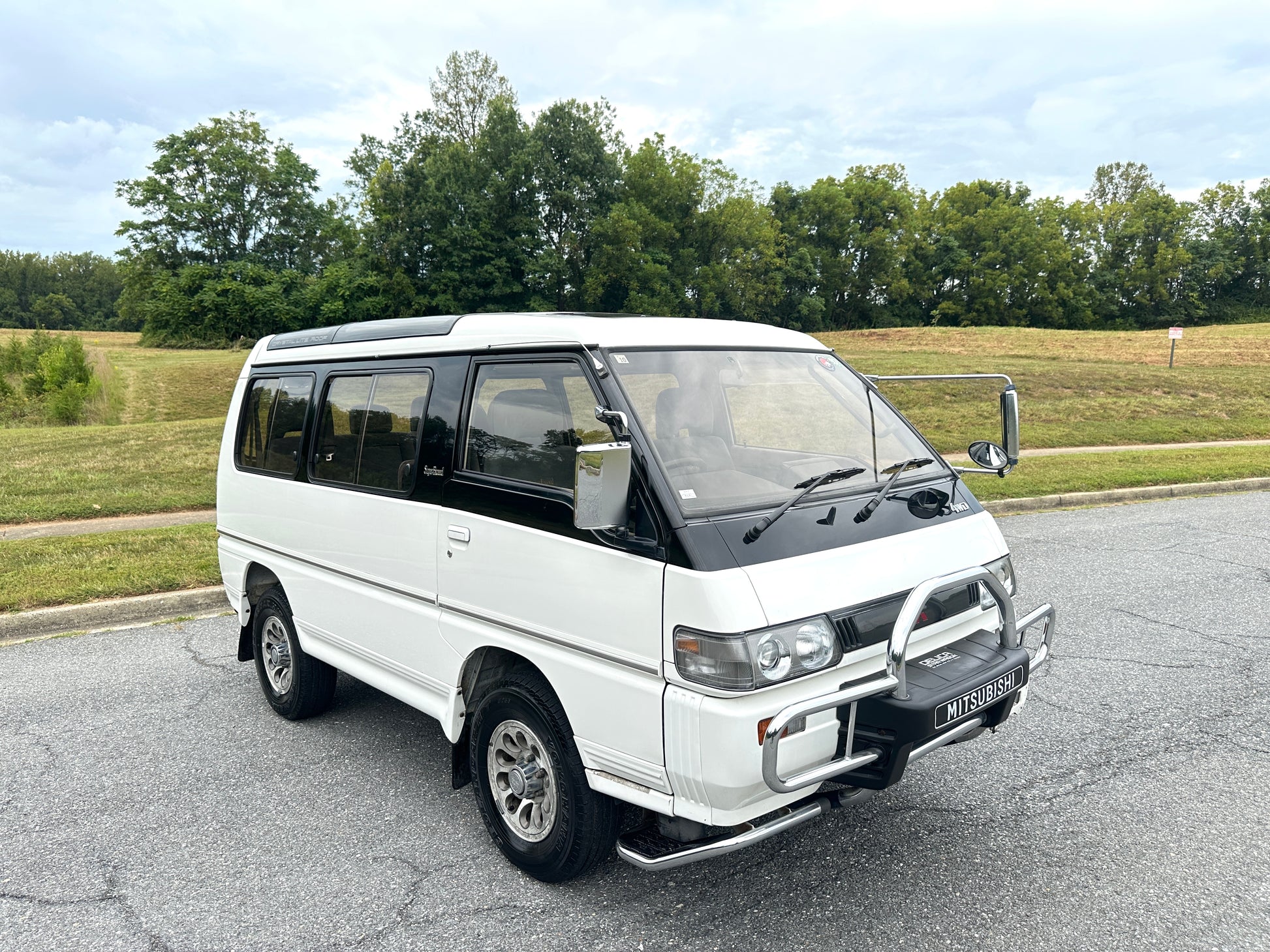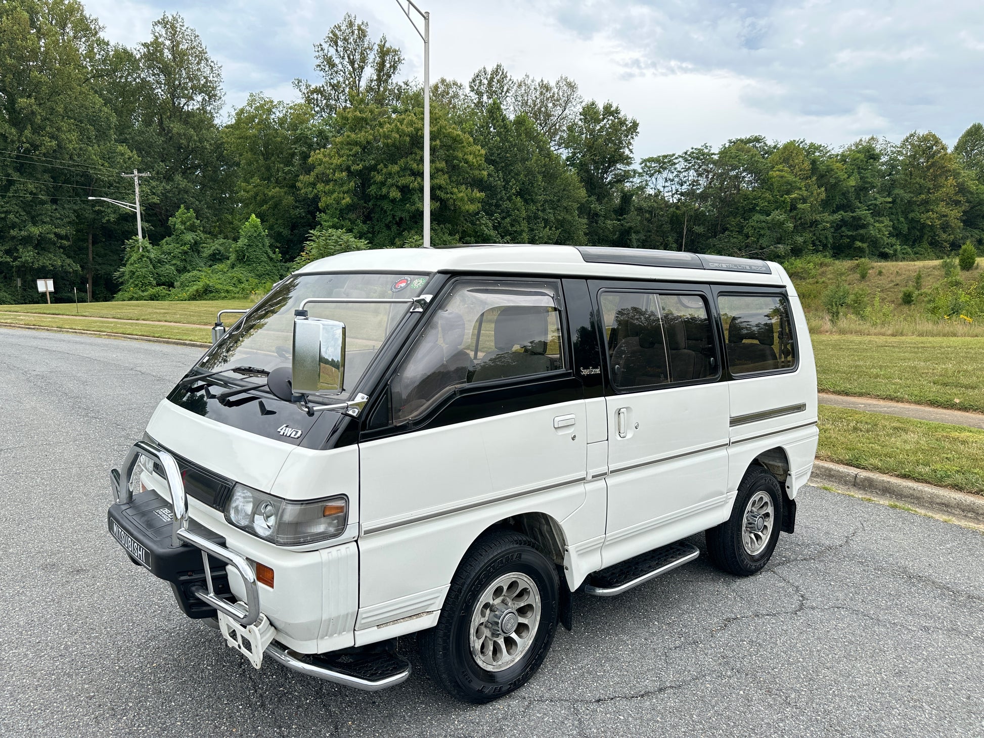 1992 MITSUBISHI DELICA STAR WAGON 4WD SUPER EXCEED P35W——107,940 Miles, “4D56”, Inline 4, 2500cc, 2.5 Liter, TURBO DIESEL, 4-Speed Automatic Transmission and a Dual Range Transfer Case, Selectable 4WD, Auto Free Front Hubs, 180 Degree Swivel Middle Captains Seats, 3rd Row Seating, 7 Seater, Cloth Upholstery, Power Windows, OEM Wheels, Power Locks, Factory Bull-Bar, Automatic Dual-Zone Climate Control.