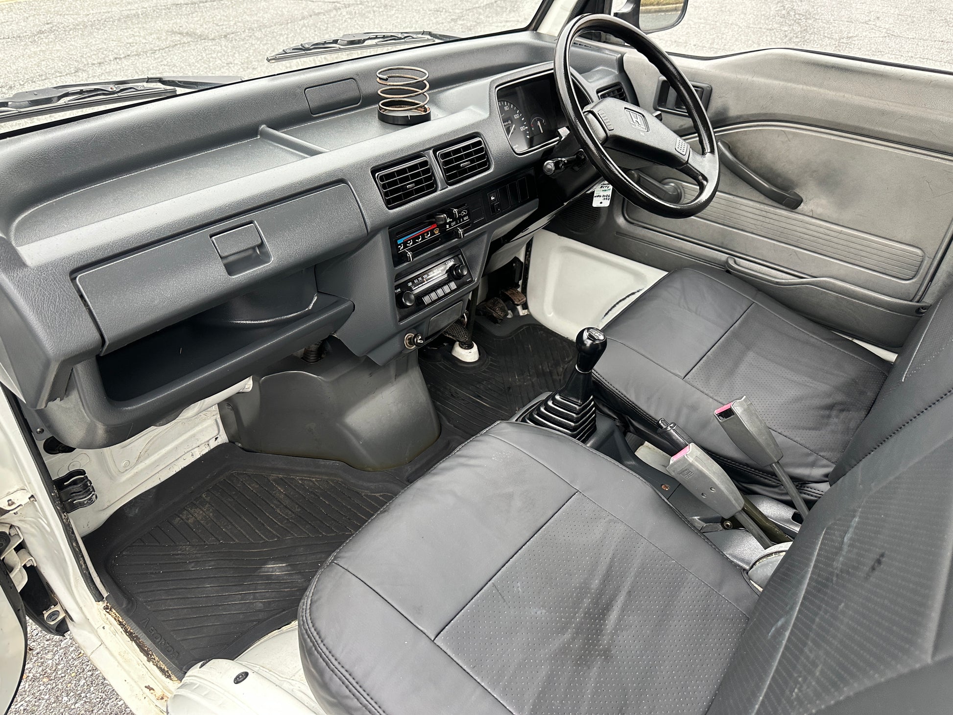 1993 HONDA ACTY SDX V-HA4 —— 38,229 Miles, “E07A” Engine, 660CC, Inline-Three, Gasoline, 5-Speed Manual, Transmission, REALTIME 4WD, Drop-Down Cargo Bed Sides, 350kg Load Capacity, Cargo Area Light, OEM Wheels, Heat & Fan, Faux Leather Seat Covers.