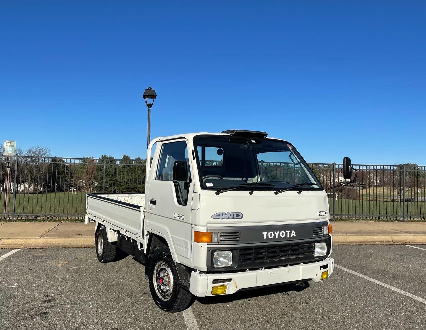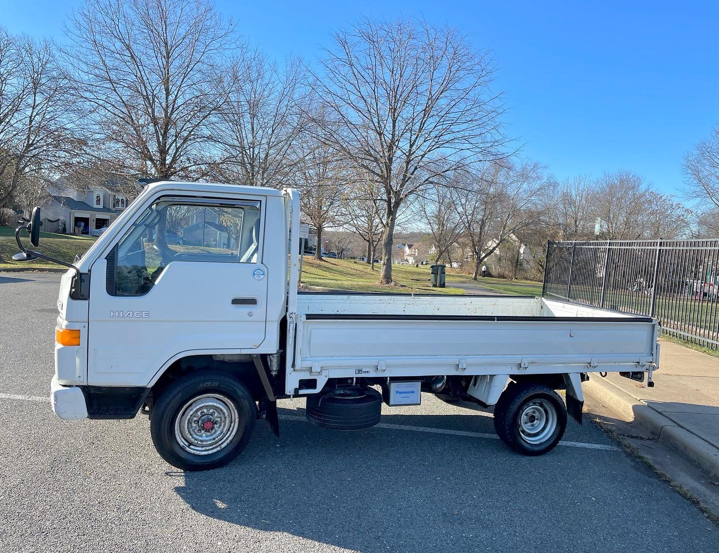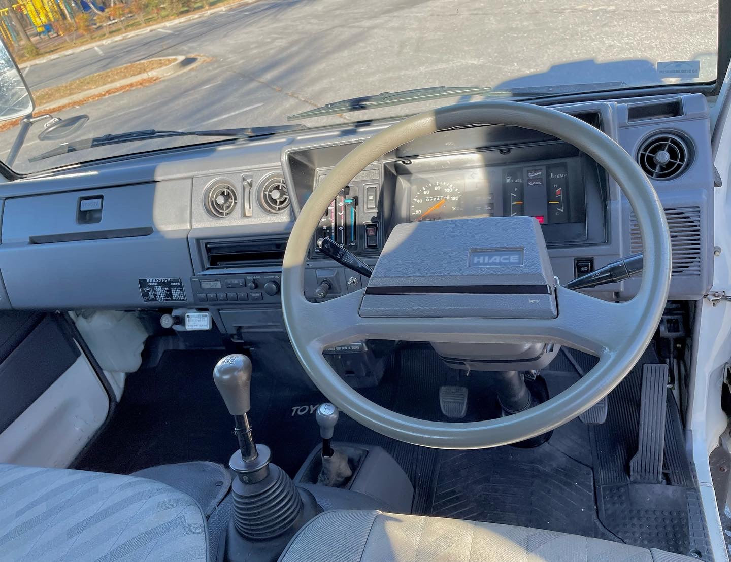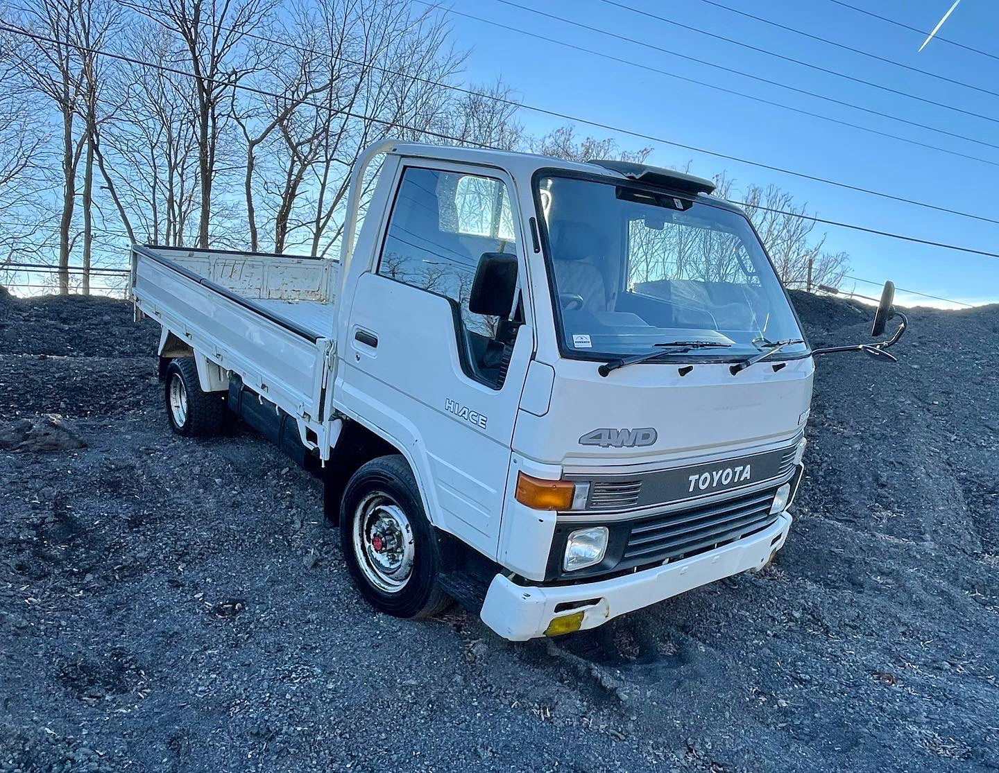1993 TOYOTA HIACE LH95——45k miles. “2L” 2446cc, Inline Four, Diesel, 5 Speed Manual Transmission, Floor Shifted 2 Speed Transfer Case, 4WD High And Low Range, Manually Locking Aisin Front Hubs, White Paint, Vinyl Upholstery, A/C, Roof Scoop, Manual Windows, Drop-Side Cargo Bed, Bulkhead Bar, Load Capacity of 1000KG