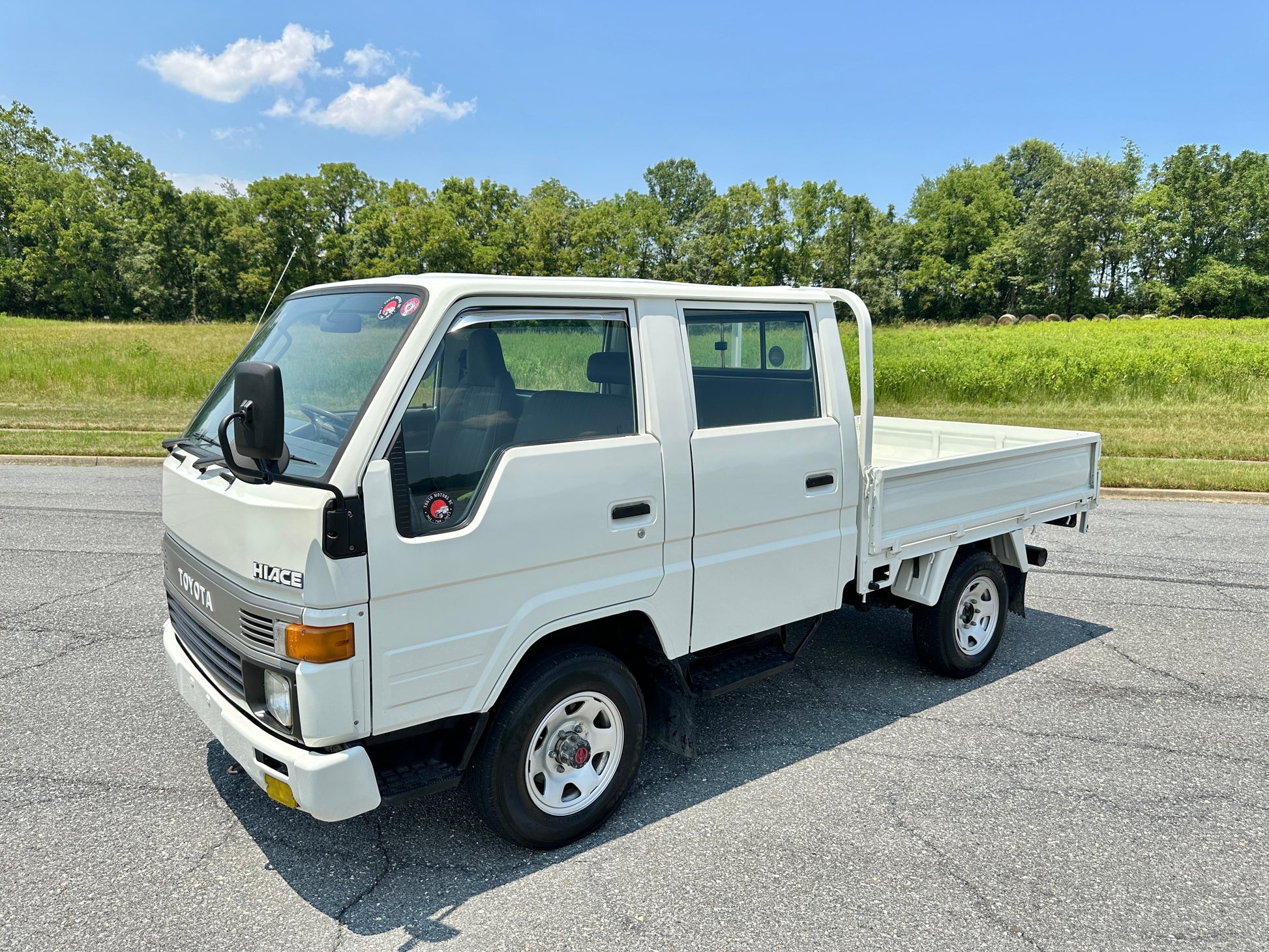 1993 TOYOTA HIACE LH95 DOUBLE-CAB TRUCK - 168,718 Miles. “2L” 2,446cc, Inline Four, Diesel, 5 Speed Manual Transmission, Selectable 4WD, Floor Shifted 2 Speed Transfer Case, 4WD With High And Low Ranges, Manually Locking Aisin Front Hubs, DOUBLE CAB, White Paint, Custom Gray Cloth Upholstery, AIR CONDITIONING & HEAT, Manual Windows.