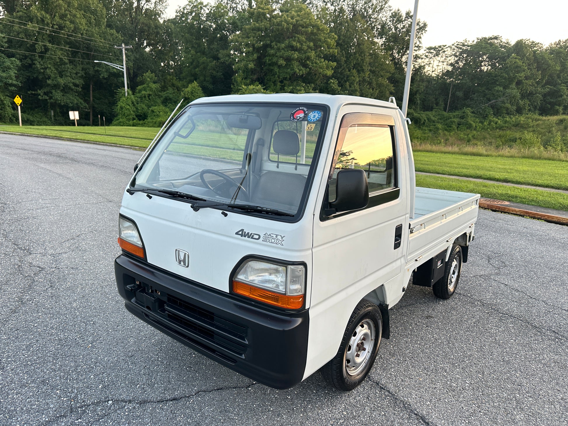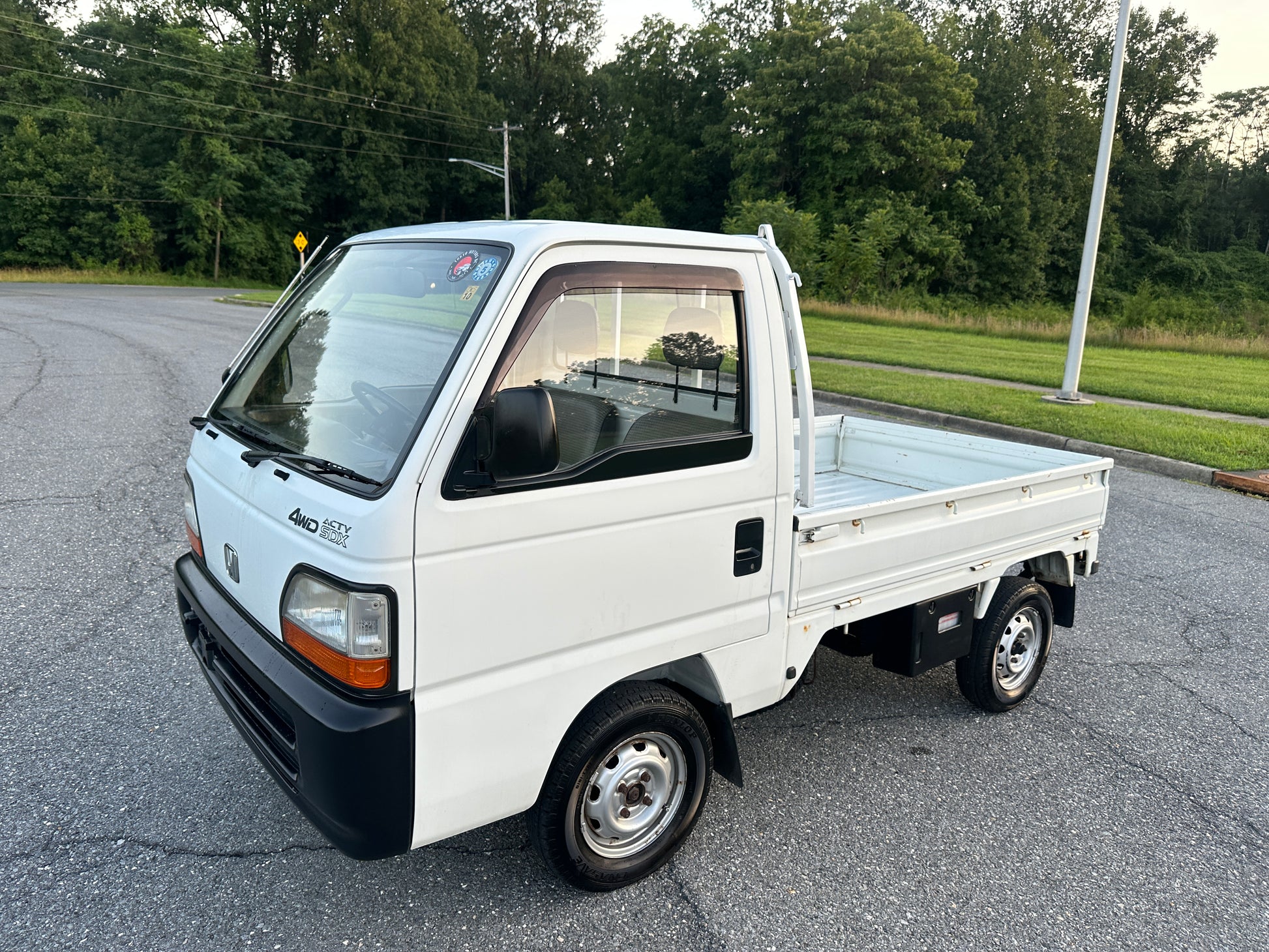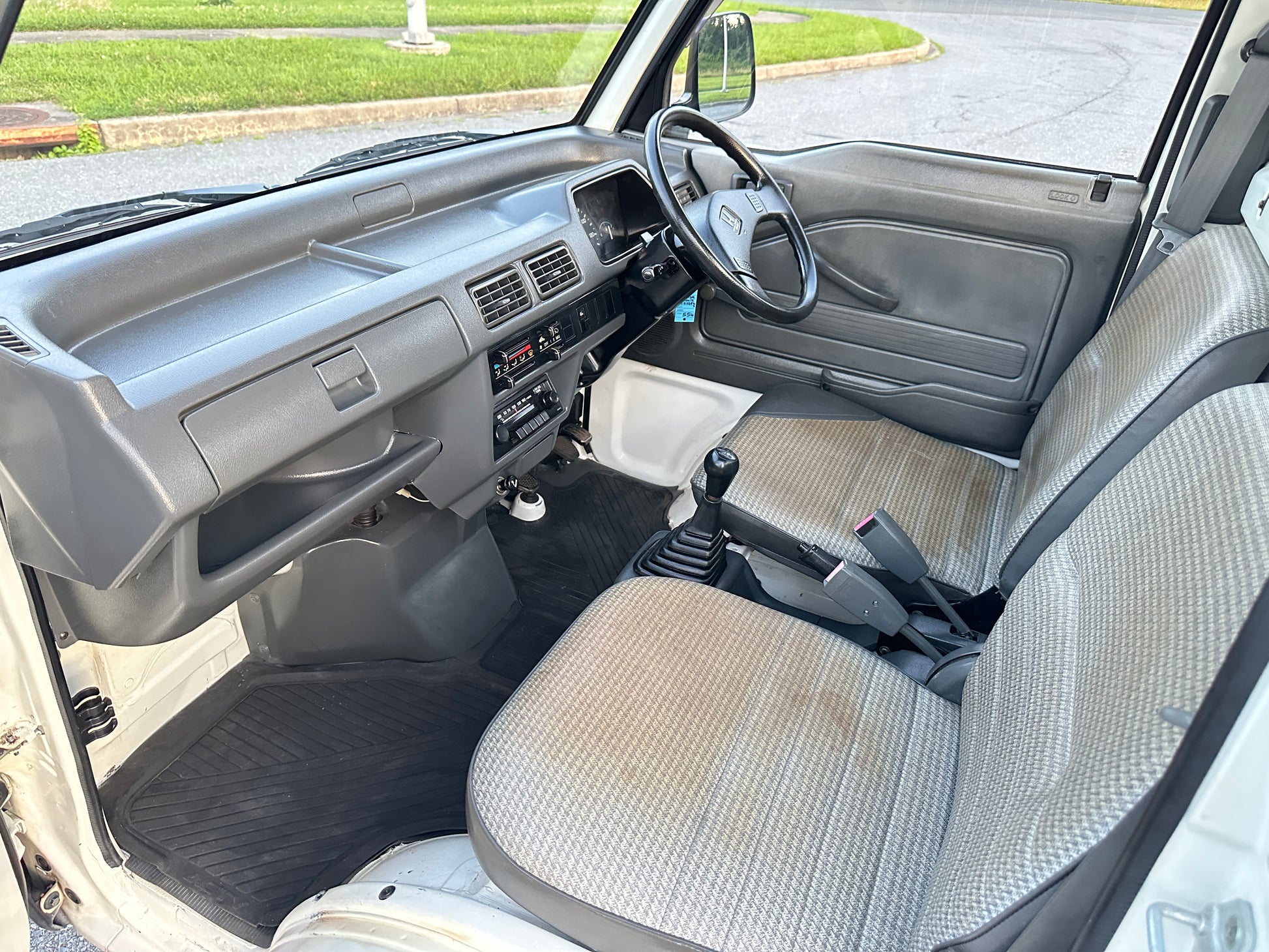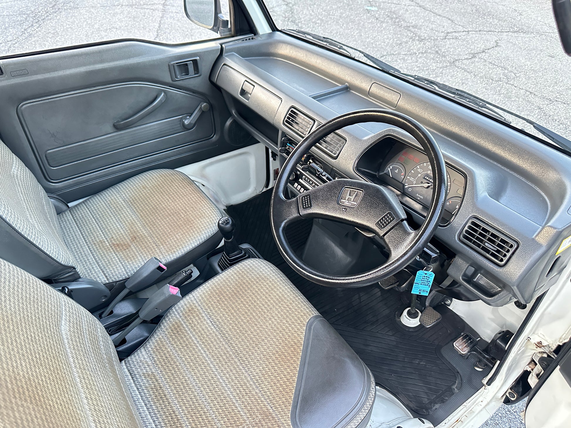 1994 HONDA ACTY SDX V-HA4 —— 38,449 Miles, “E07A” Engine, 660CC, Inline-Three, Gasoline, 5-Speed Manual, Transmission, REALTIME 4WD, Drop-Down Cargo Bed Sides, 350kg Load Capacity, Cargo Area Light, OEM Wheels, Heat & Fan.