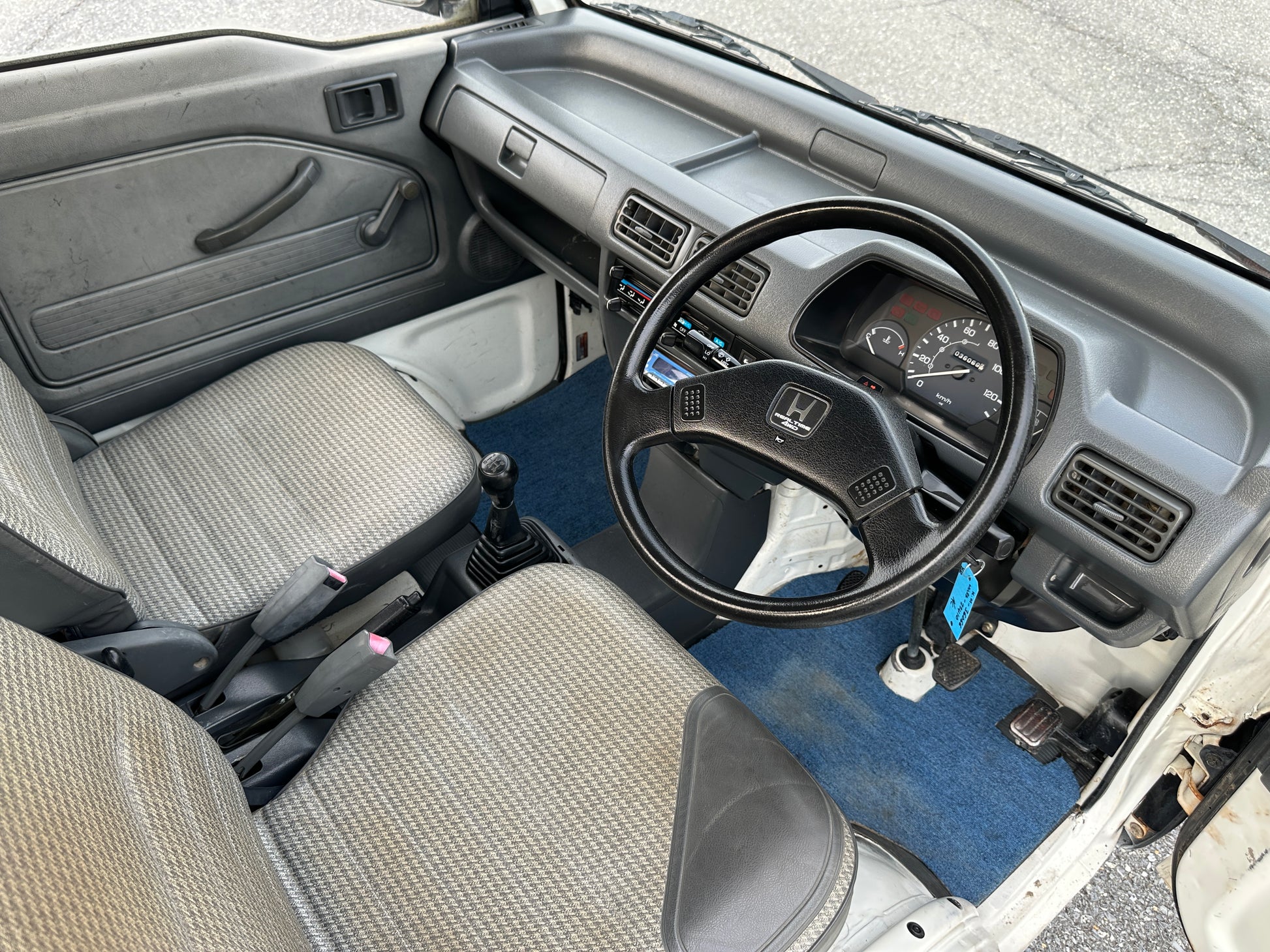 1994 HONDA ACTY SDX V-HA4 —— 22,412 Miles, “E07A” Engine, 660CC, Inline-Three, Gasoline, 5-Speed Manual, Transmission, REALTIME 4WD, Drop-Down Cargo Bed Sides, 350kg Load Capacity, Cargo Area Light, 3-Spoke Wheels, AIR CONDITIONING & HEAT.