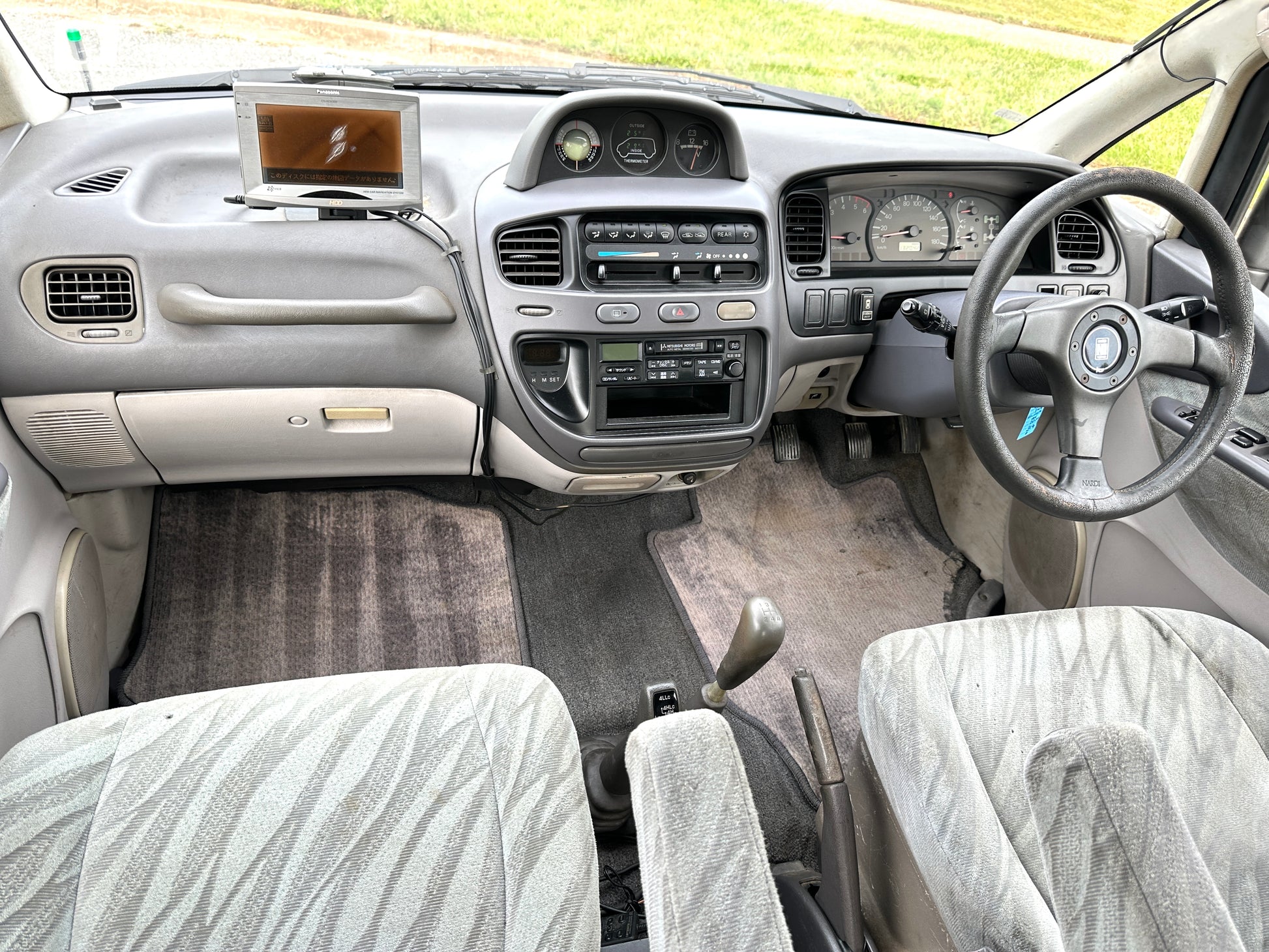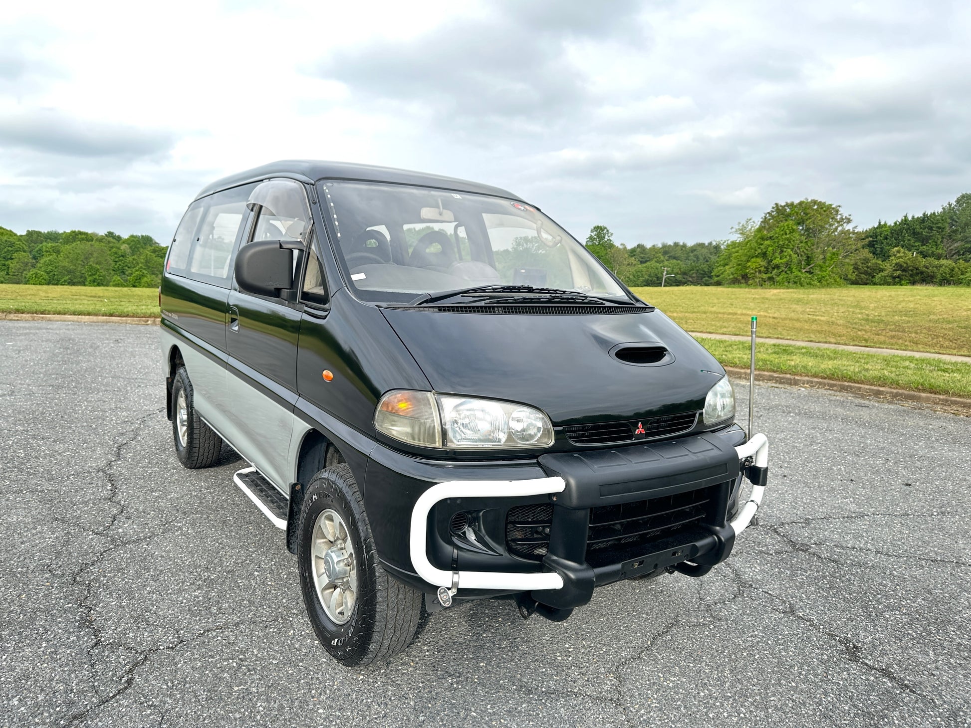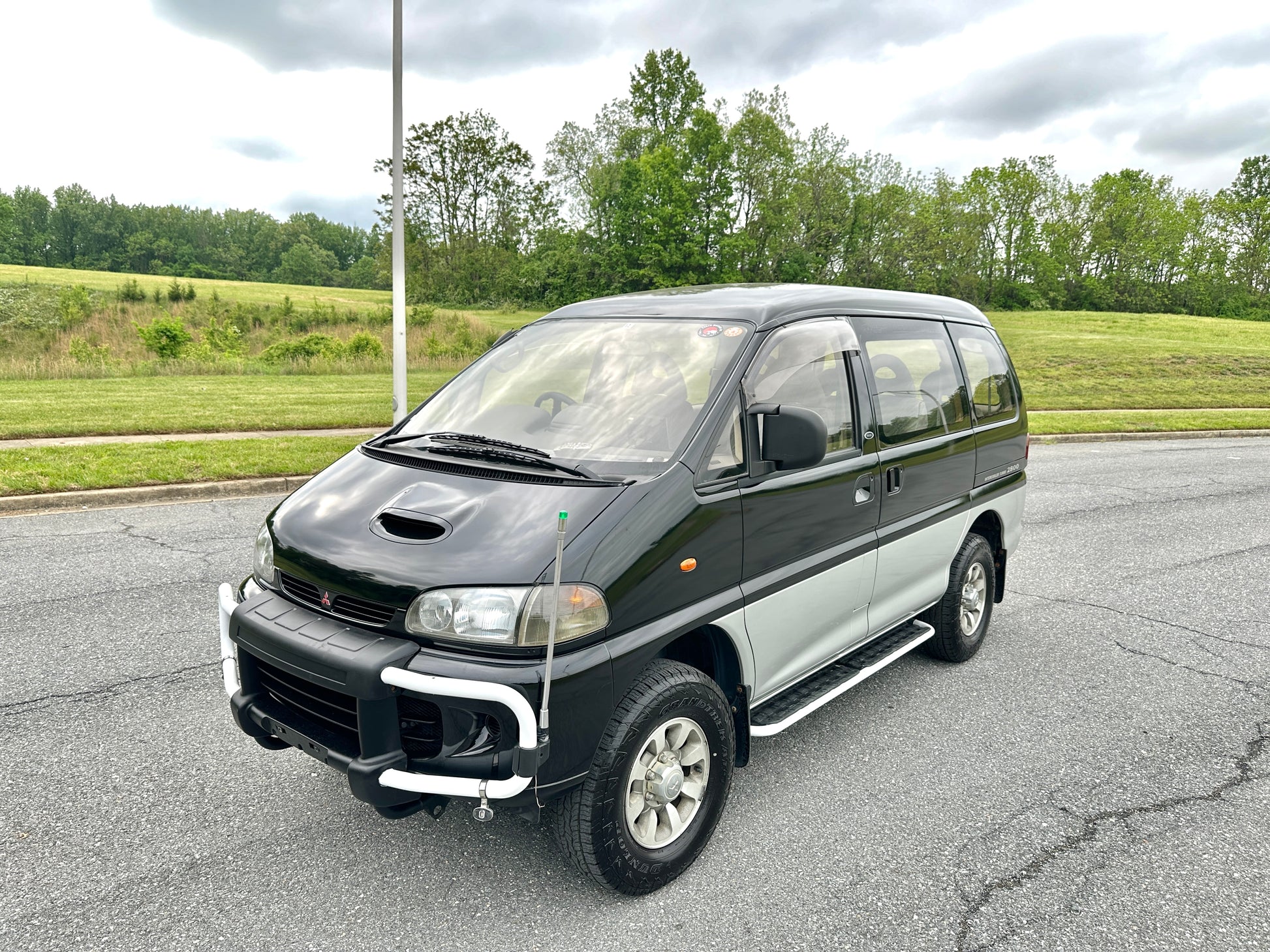 1994 MITSUBISHI DELICA SPACE GEAR EXCEED 4WD PE8W——82,047 Miles, “4M40”, Inline 4, 2835cc, 2.8 Liter, INTERCOOLER TURBO DIESEL, 5-SPEED MANUAL TRANSMISSION and a Dual Range Transfer Case, CENTER LOCKING DIFFERENTIAL, Selectable 4WD, Factory RainGuards, 180 Degree Swiveling & Folding Middle Captains Seats, 3rd Row Seating, 7 Seater, Cloth Upholstery, Power Windows, Power Adjustable Door Mirrors, OEM Wheels Wrapped In Dunlop Grandtrek ATS Tires , Power Locks, Factory Brush-Guard, Automatic Dual-Zone Climate Control, FUNCTIONAL HOOD SCOOP.