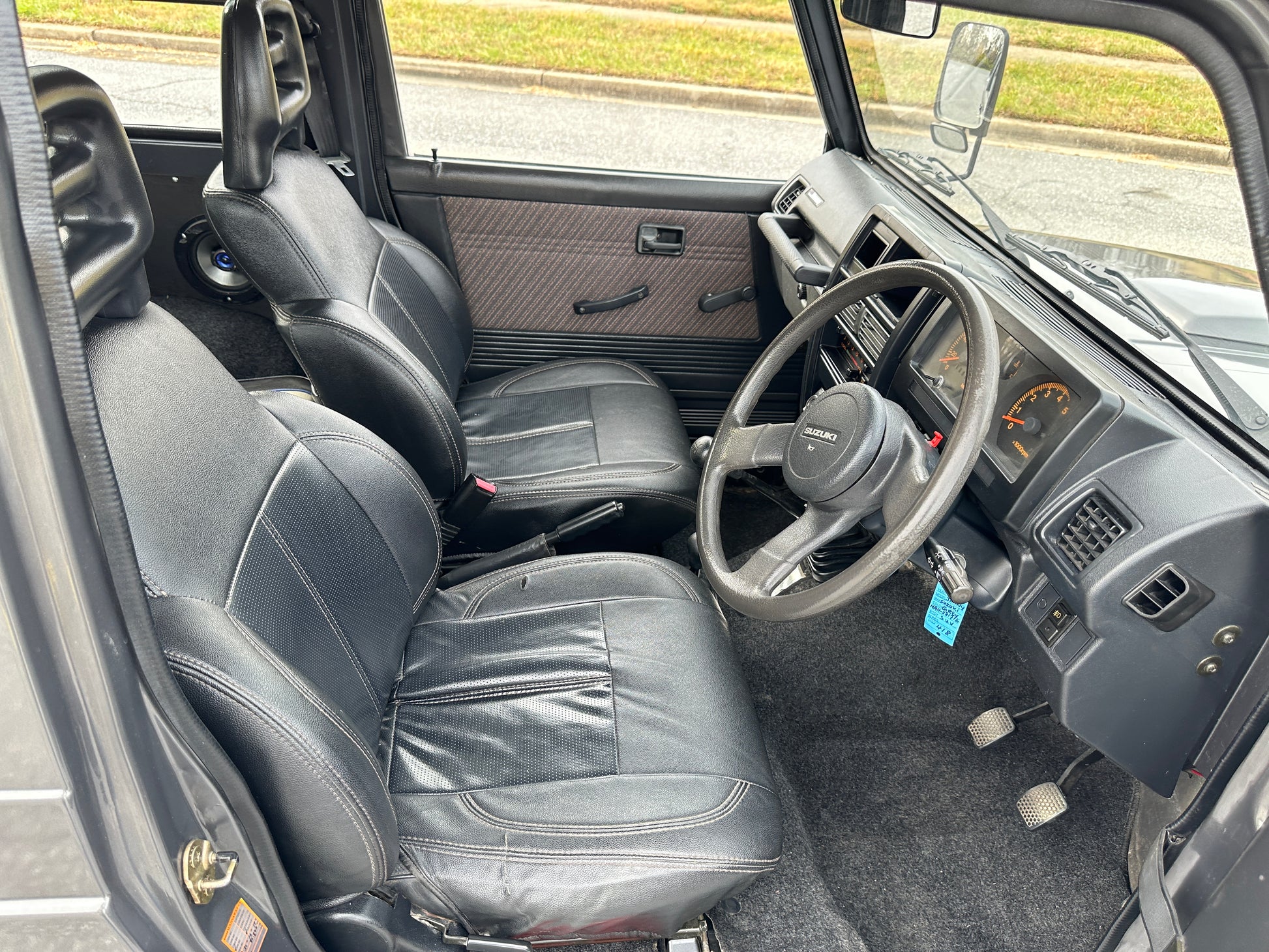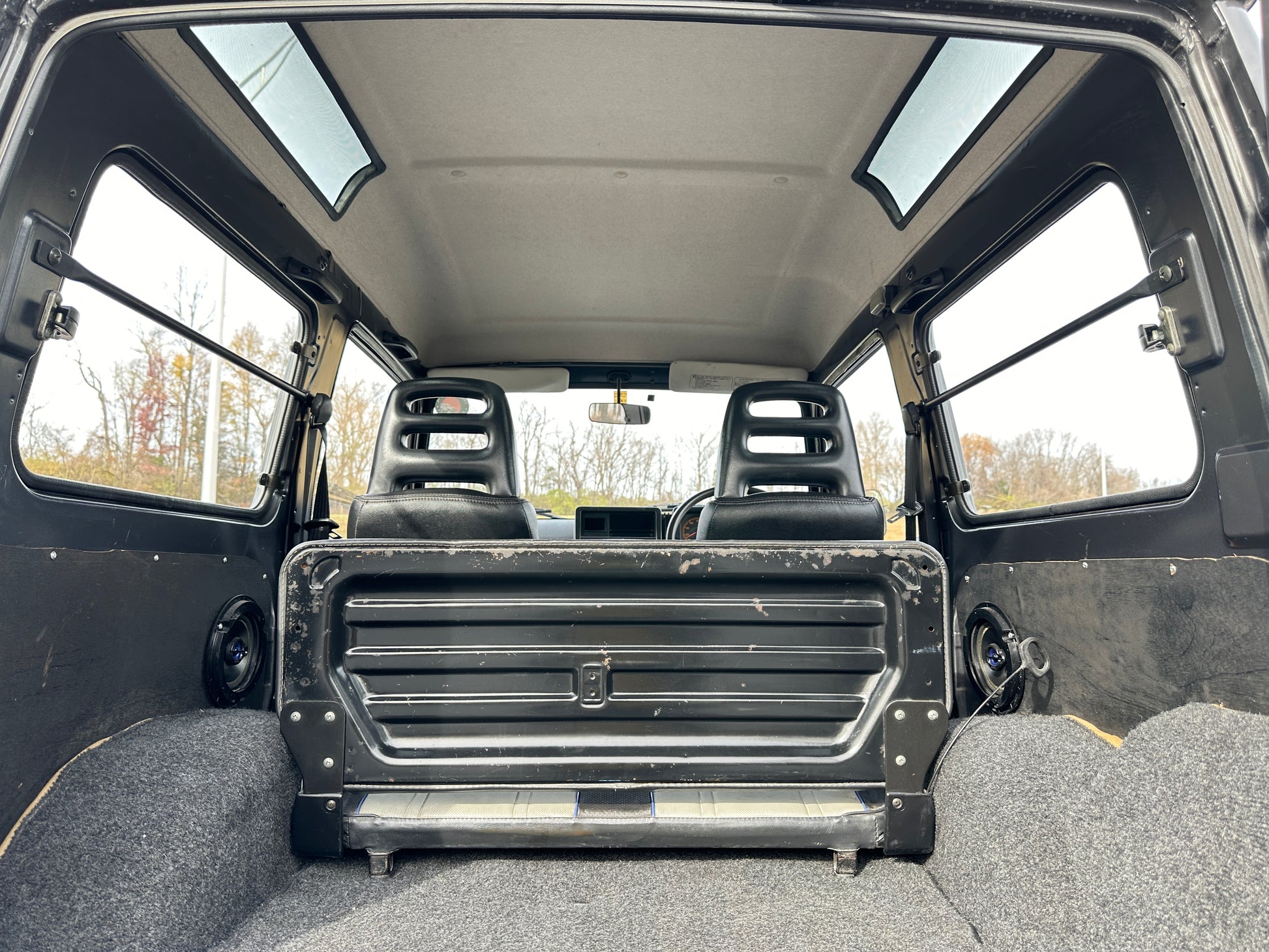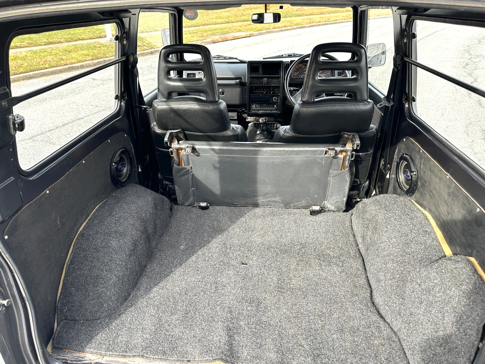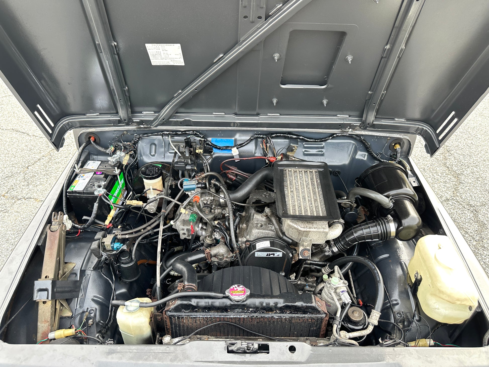 1994 SUZUKI JIMNY TURBO 4WD V-JA11V —— 75,044 miles, “F6A”, Inline 3, 657CC, Gasoline, Turbocharged, 5-Speed Manual Transmission, Selectable 4WD With A 2-Speed Transfercase, Manually-Locking Front Hubs, Solid Front Axle, 16-Inch Wheels Wrapped in Yokohama Geolandar M/T Tires, 4 Seater, Front Bucket Seats & Rear Bench Seats That Fold Away, Manual Side Windows, Pop-Out Quarter Windows, High-Roof Model With Safari Windows, Air Conditioner & Heat, New Battery.
