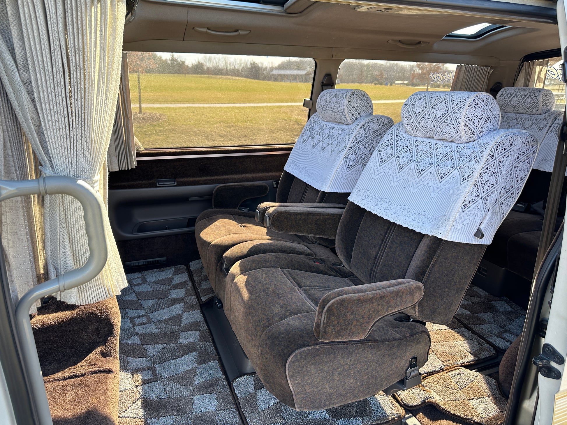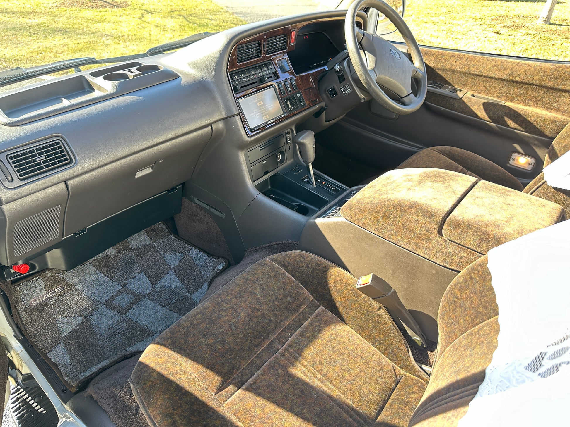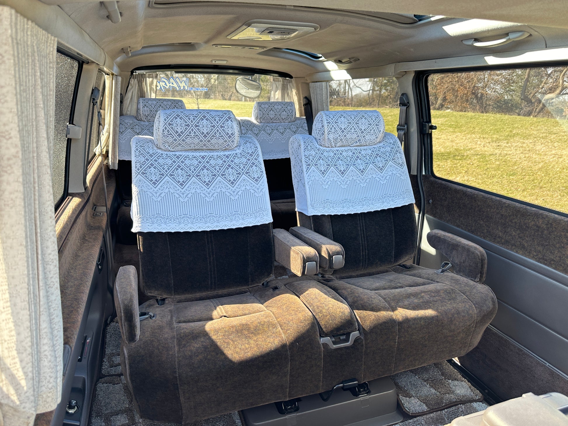 1994 TOYOTA HIACE SUPER CUSTOM LIMITED KZH106 ——105,743 Miles, “1KZ-TE”, 3.0 Liter Inline 4, Turbo Diesel, Automatic Transmission, Full Time 4WD, Venting Front Sunroof, Massive Central Sunroof, Power Rear Sunroof, White Pearl Mica & Light Beige Metallic Two-Tone Paint, Brown Cloth Upholstery With Factor Lace Seat Covers, Factory 3rd Row, 180 Degree Swivel Middle Row, Full Flat Folding Seats, Dual Zone Climate Control, Power Windows, Power Retractable Mirrors, Power Locks, Soft Closing Sliding Door, WEDS ADVENTURE Wheels, DIGITAL INSTRUMENT CLUSTER, HOT/COOLER BOX WITH ICE-MAKER, POWER SLIDING REAR DOOR, TEMS SUSPENSION, IDLE UP SWITCH, JOYFUL TALK, BACK & CLEARANCE SONAR.