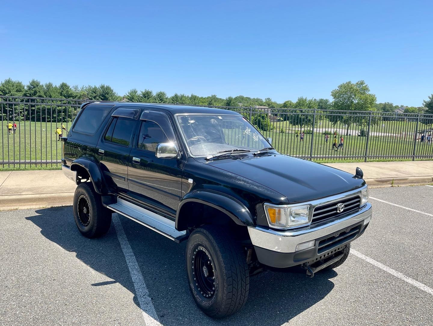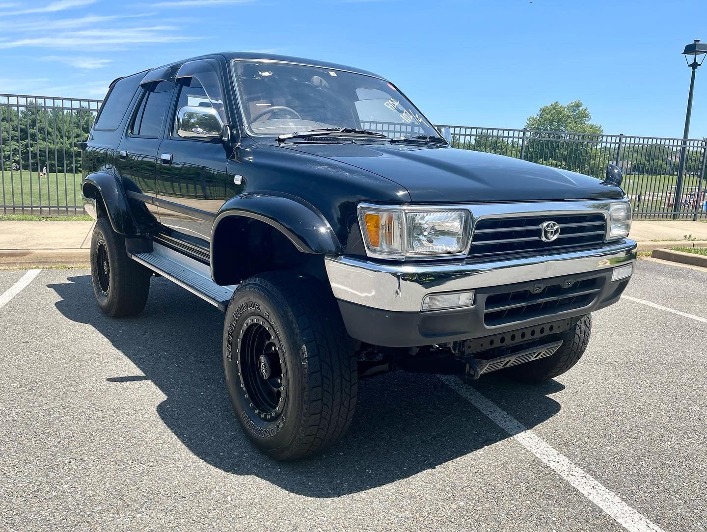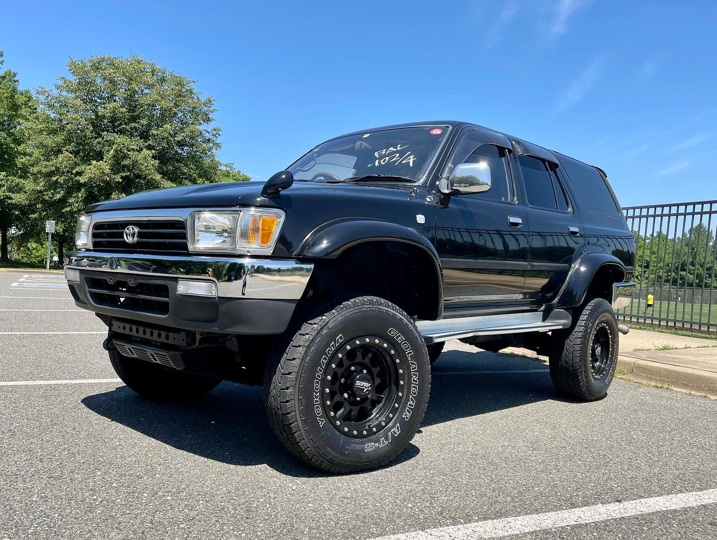 1994 Toyota Hilux Surf SSR-X LIMITED KZN130 ——145K miles, “1KZ-TE” 3.0 Liter Inline 4, Turbo Diesel, Four-Speed Automatic Transmission With Overdrive And A Transfer Case With High And Low Ranges, Selectable 4WD, Black Paint, Automatic Climate Control, Cold A/C, TEMS Suspension, Power Back Glass, Power Windows, Power Locks, OEM Rainguards, AMS AFTERMARKET WHEELS WRAPPED IN GEOLANDAR A/T-S Tires, RANCHO SUSPENSION COMPONENTS, SUNROOF, Will Come with a Maryland Title