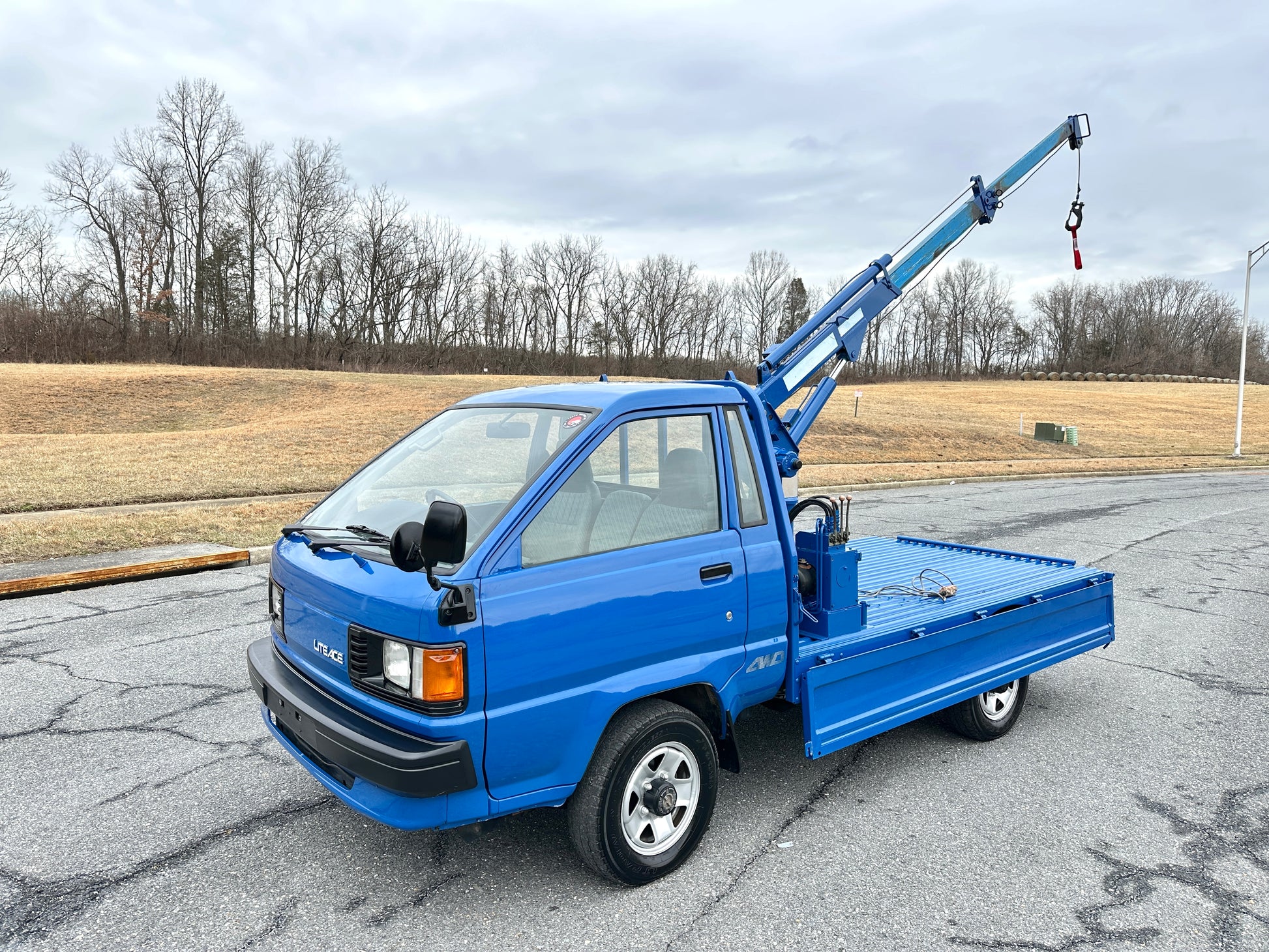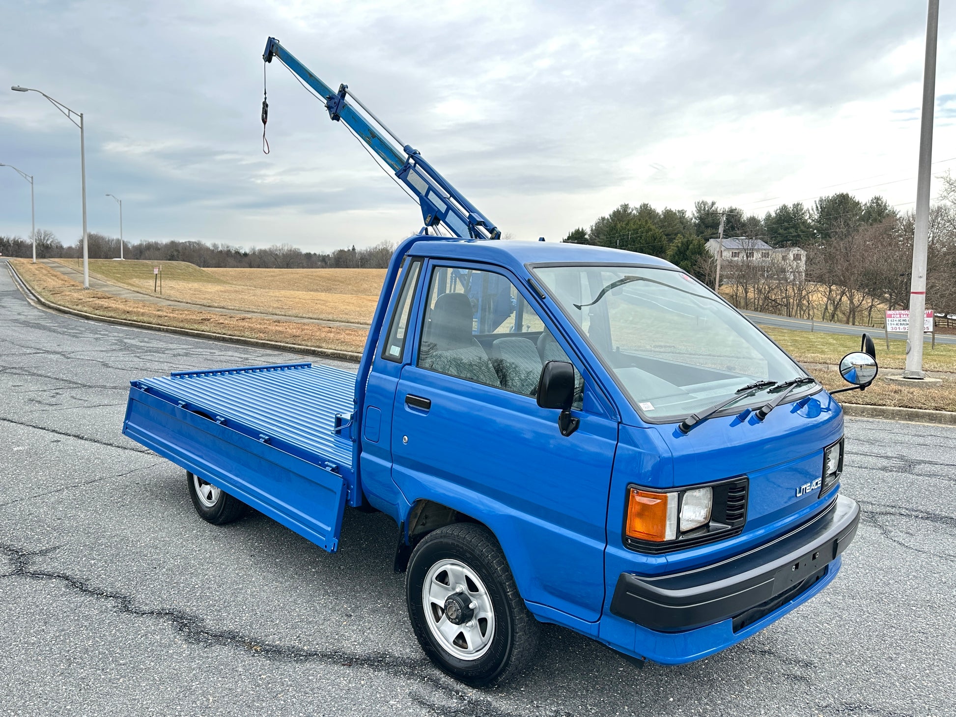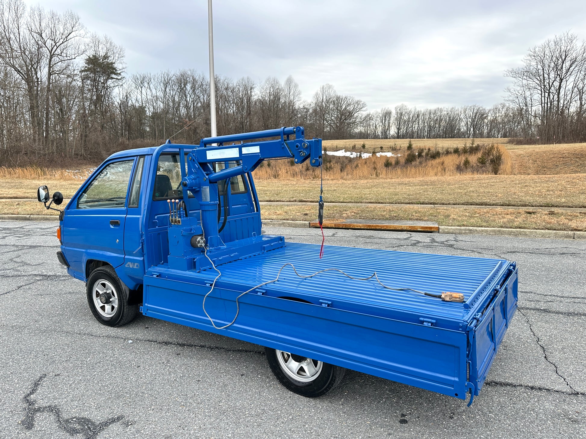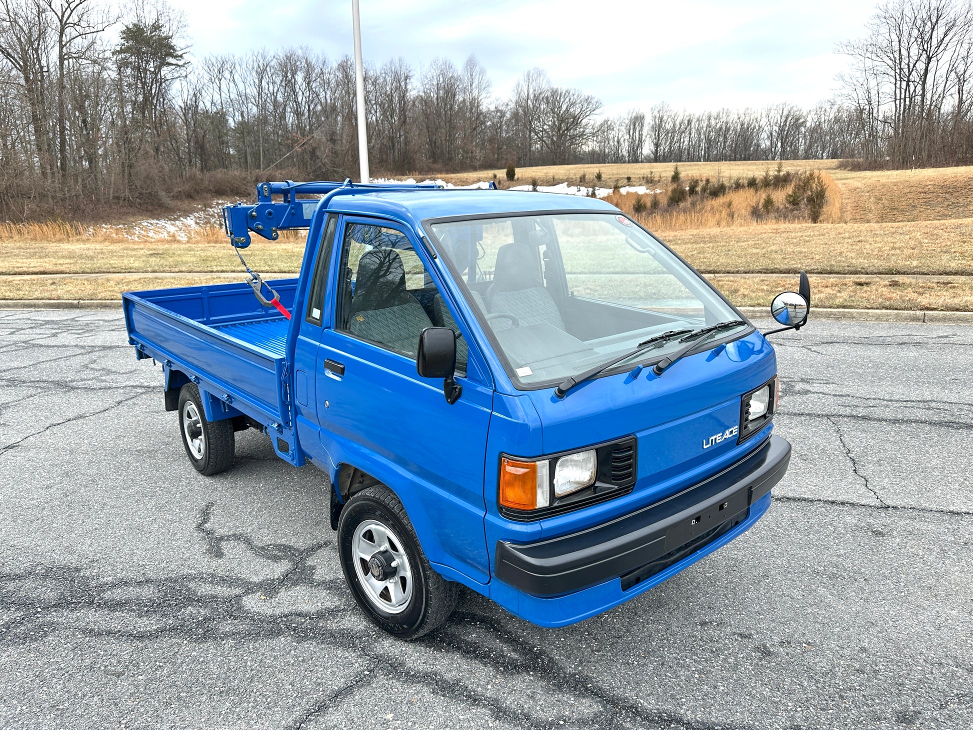 1994 TOYOTA LITEACE YM65——54,156 miles. “2Y” 1812cc, Inline Four, Gasoline, Column-Shifted 5 Speed Manual Transmission, Floor Shifted 2 Speed Transfer Case, Push Button 4WD, Manually Locking Aisin Front Hubs, Blue Paint, Vinyl Upholstery, 60/40 Split Seat With A Center Armrest, Manual Windows, 1000KG (1 TON) Payload Capacity, Bulkhead Bar, TADANO BOOM CRANE.