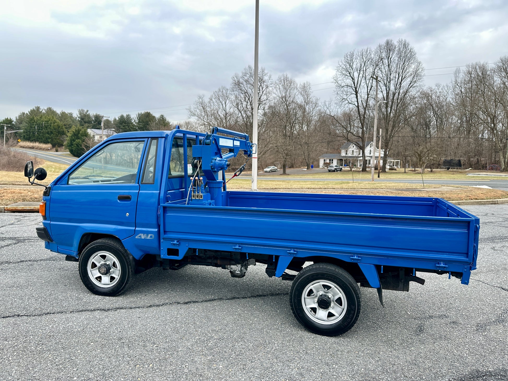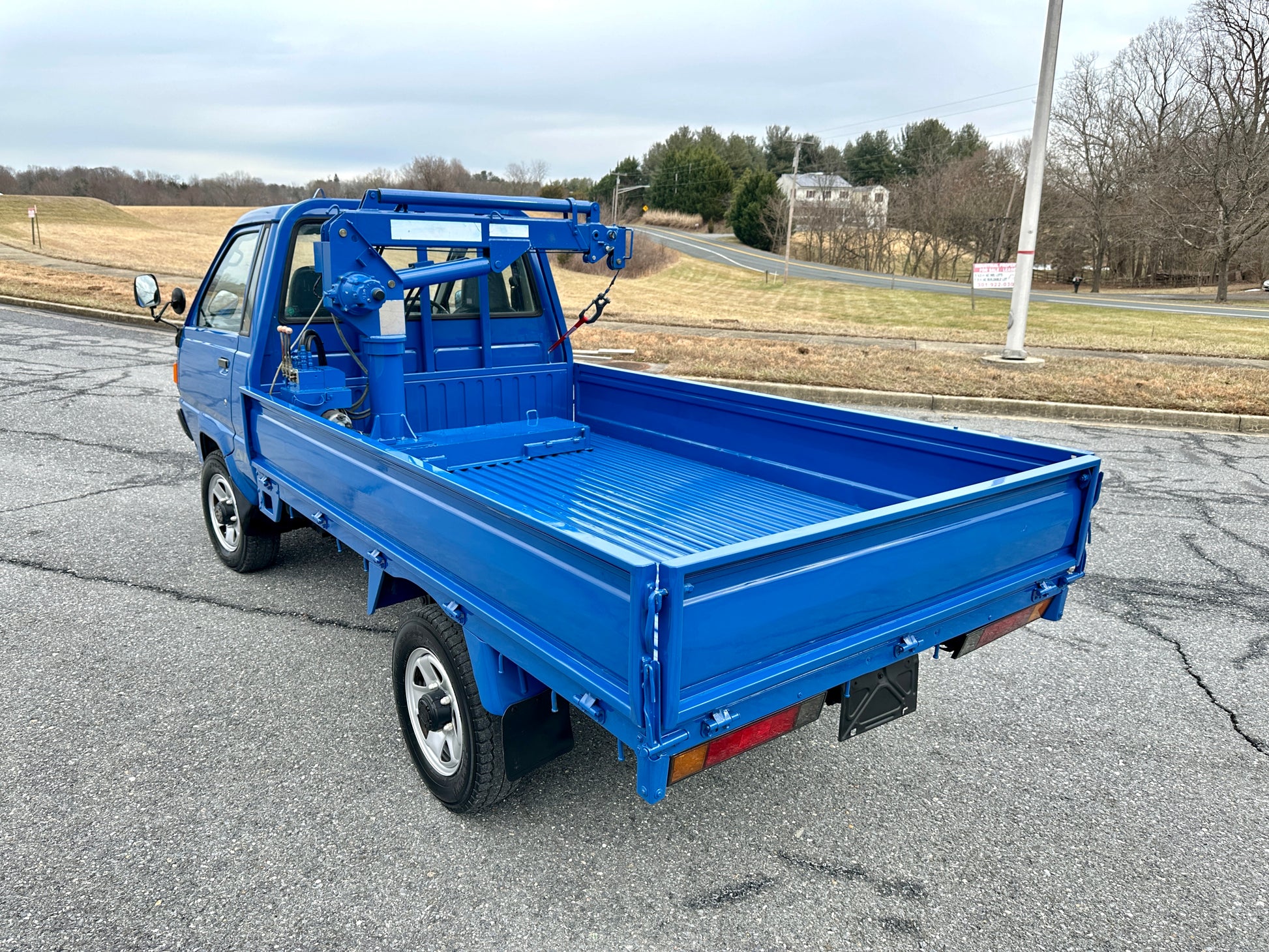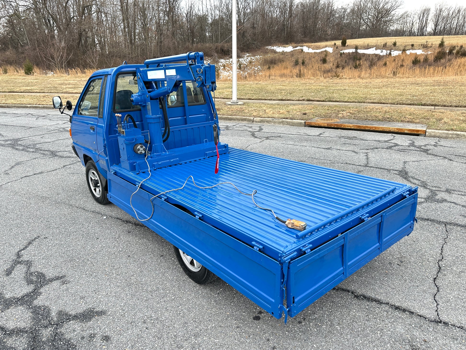 1994 TOYOTA LITEACE YM65——54,156 miles. “2Y” 1812cc, Inline Four, Gasoline, Column-Shifted 5 Speed Manual Transmission, Floor Shifted 2 Speed Transfer Case, Push Button 4WD, Manually Locking Aisin Front Hubs, Blue Paint, Vinyl Upholstery, 60/40 Split Seat With A Center Armrest, Manual Windows, 1000KG (1 TON) Payload Capacity, Bulkhead Bar, TADANO BOOM CRANE.