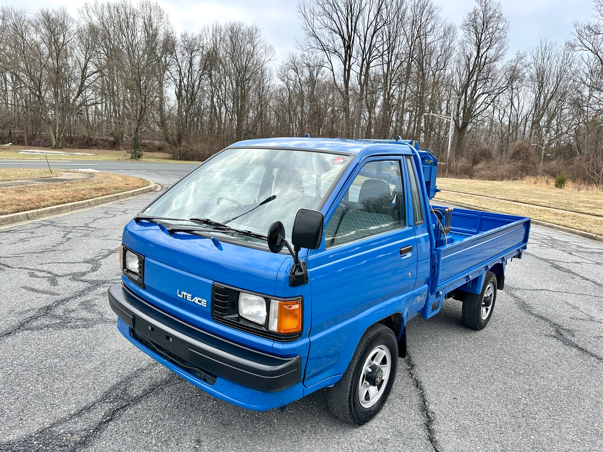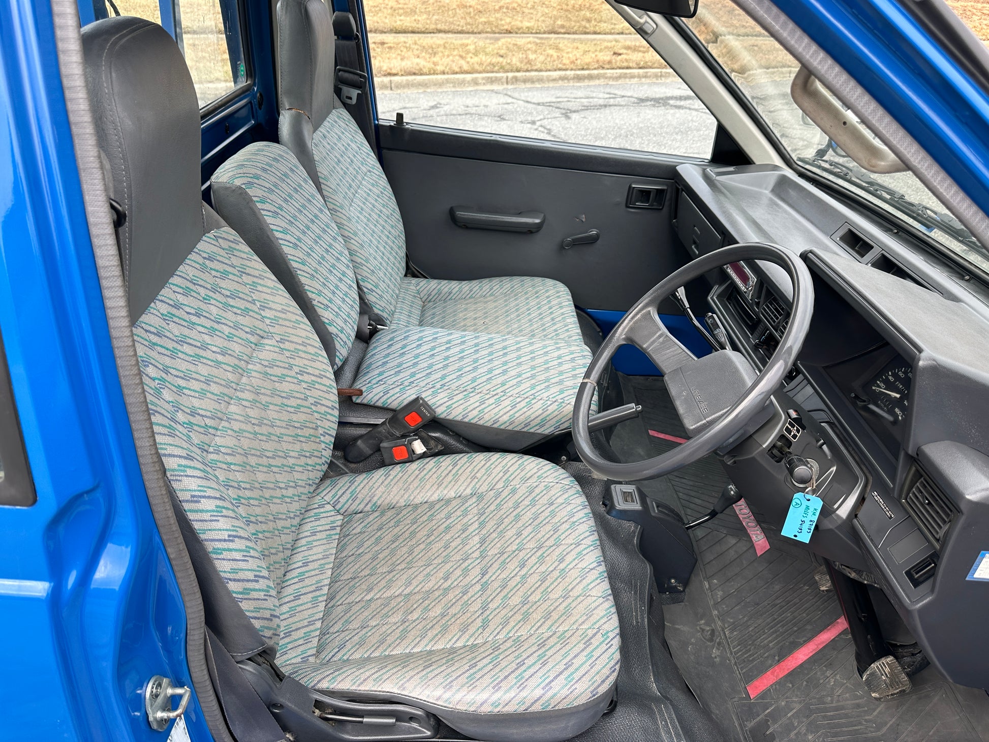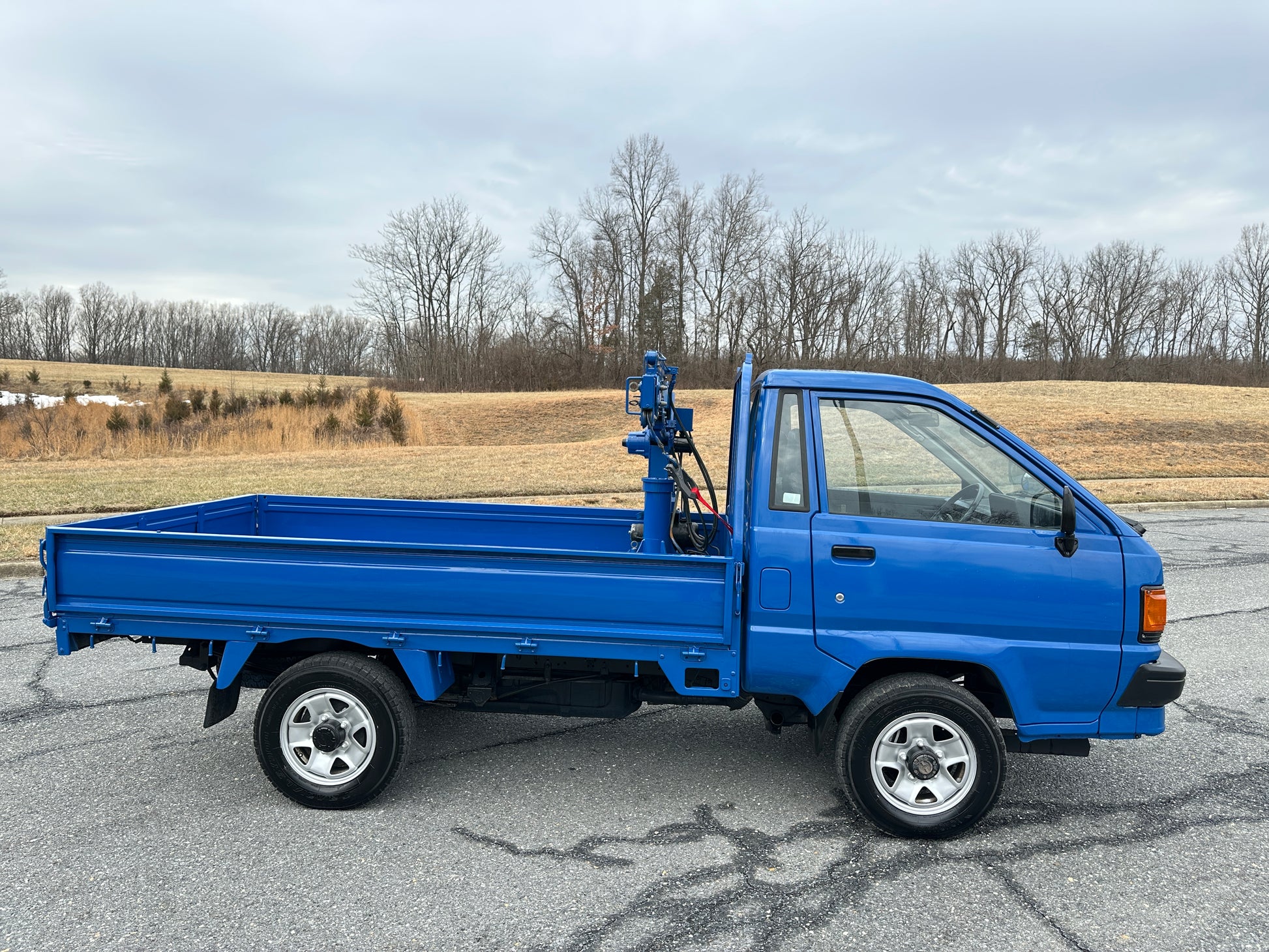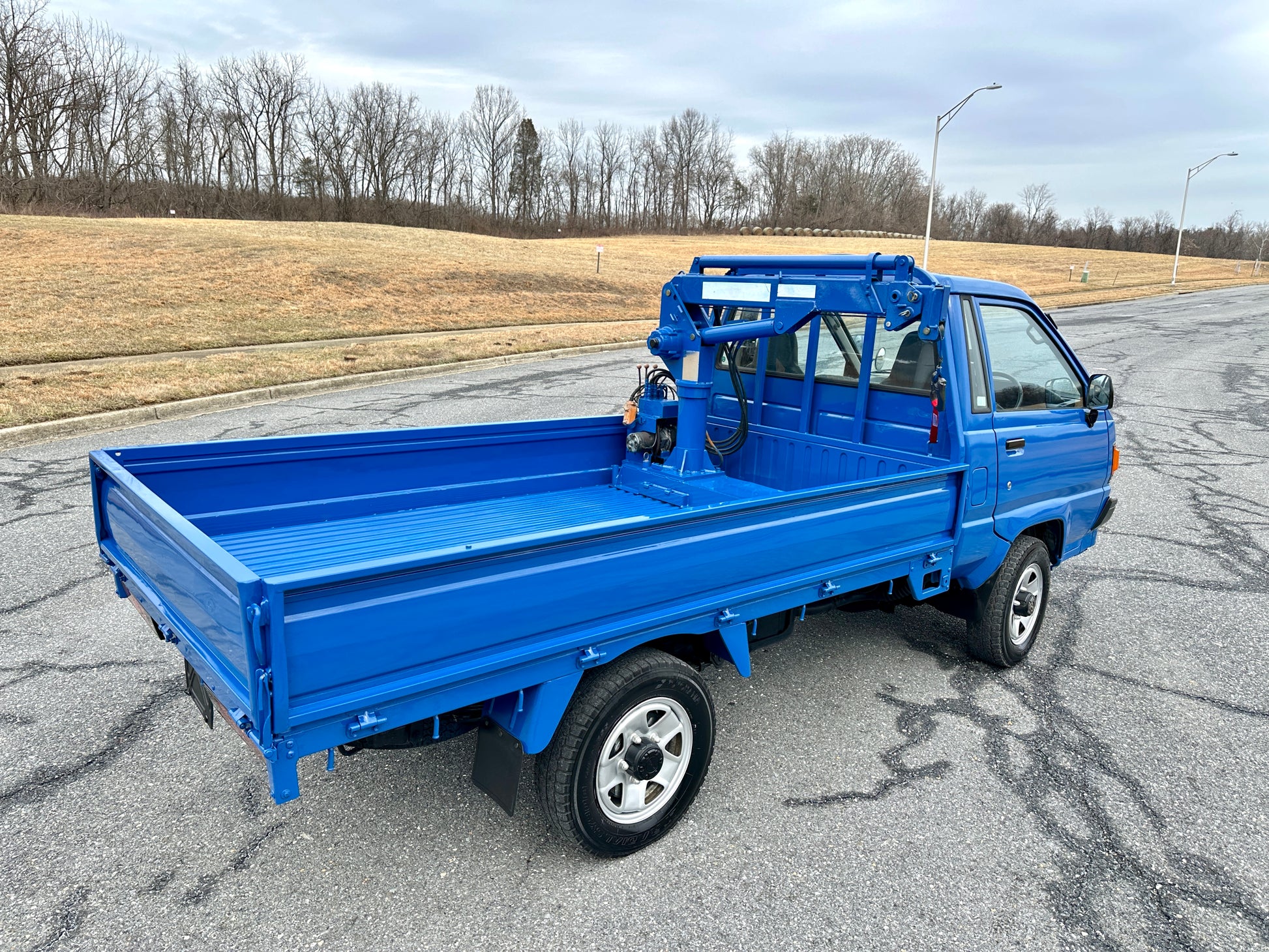 1994 TOYOTA LITEACE YM65——54,156 miles. “2Y” 1812cc, Inline Four, Gasoline, Column-Shifted 5 Speed Manual Transmission, Floor Shifted 2 Speed Transfer Case, Push Button 4WD, Manually Locking Aisin Front Hubs, Blue Paint, Vinyl Upholstery, 60/40 Split Seat With A Center Armrest, Manual Windows, 1000KG (1 TON) Payload Capacity, Bulkhead Bar, TADANO BOOM CRANE.
