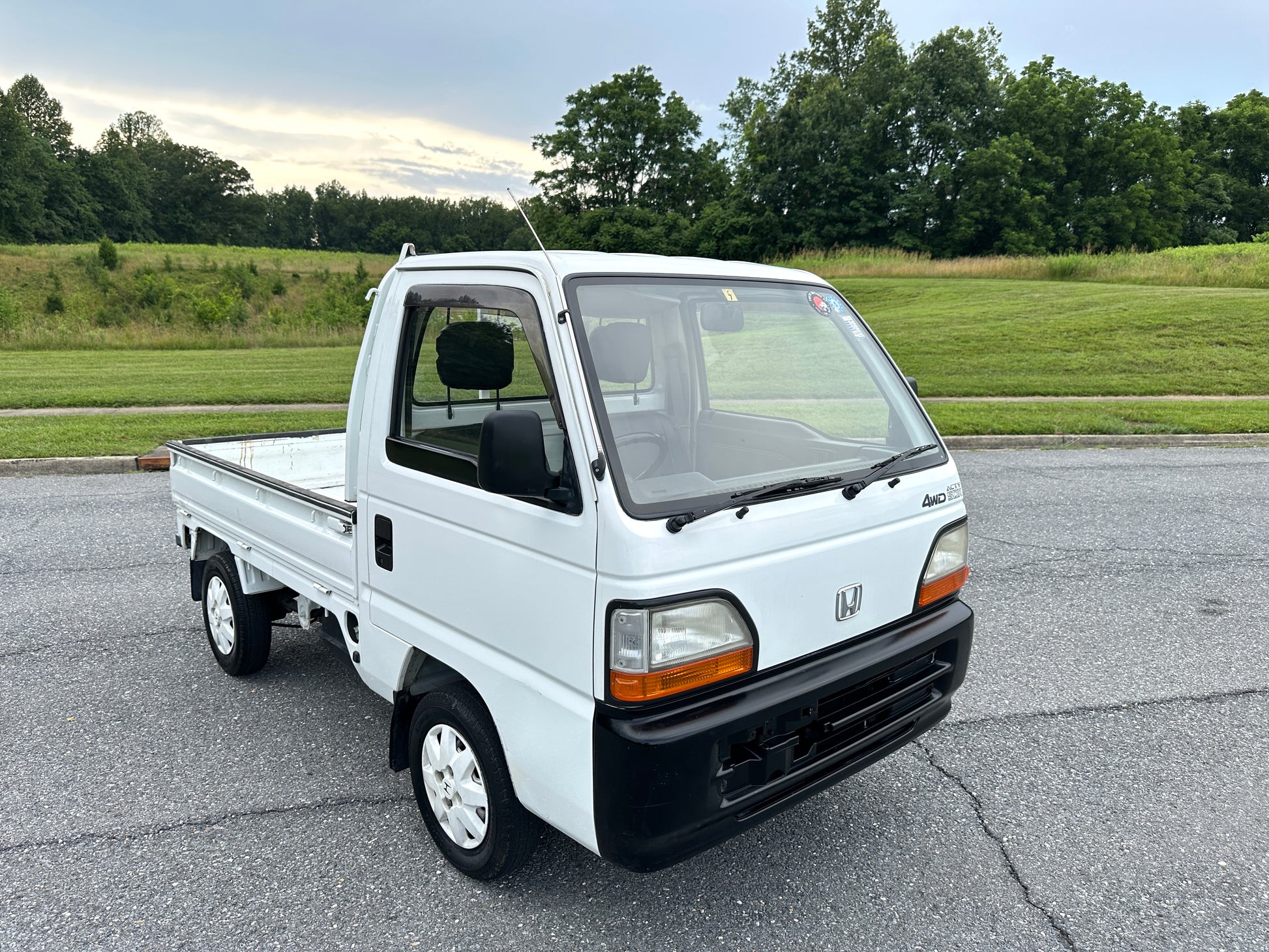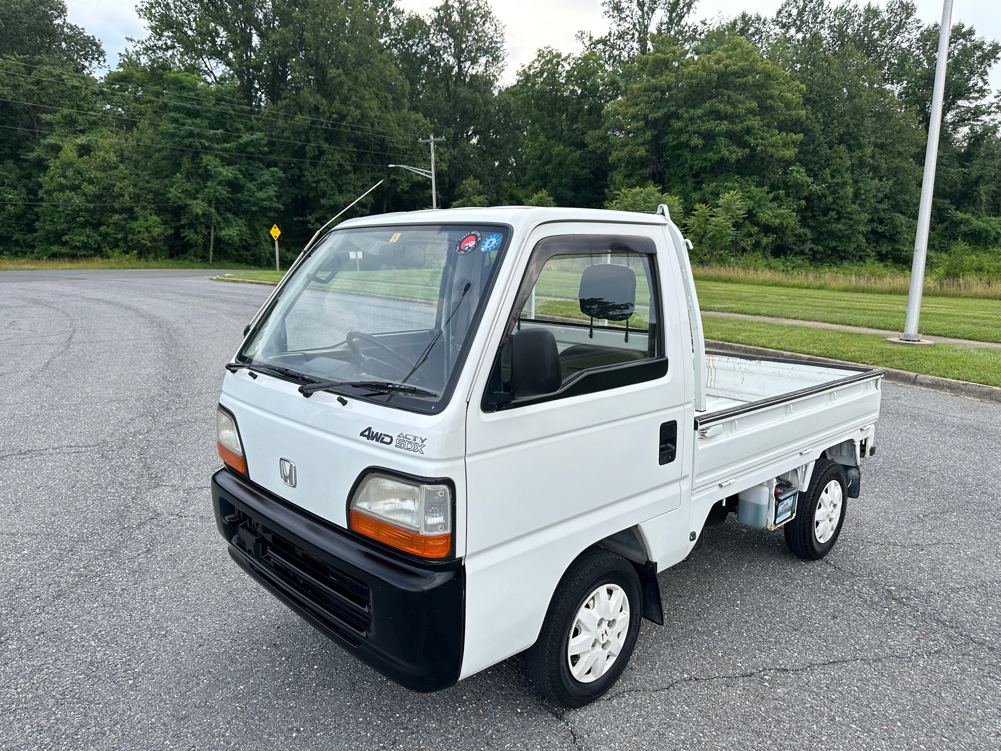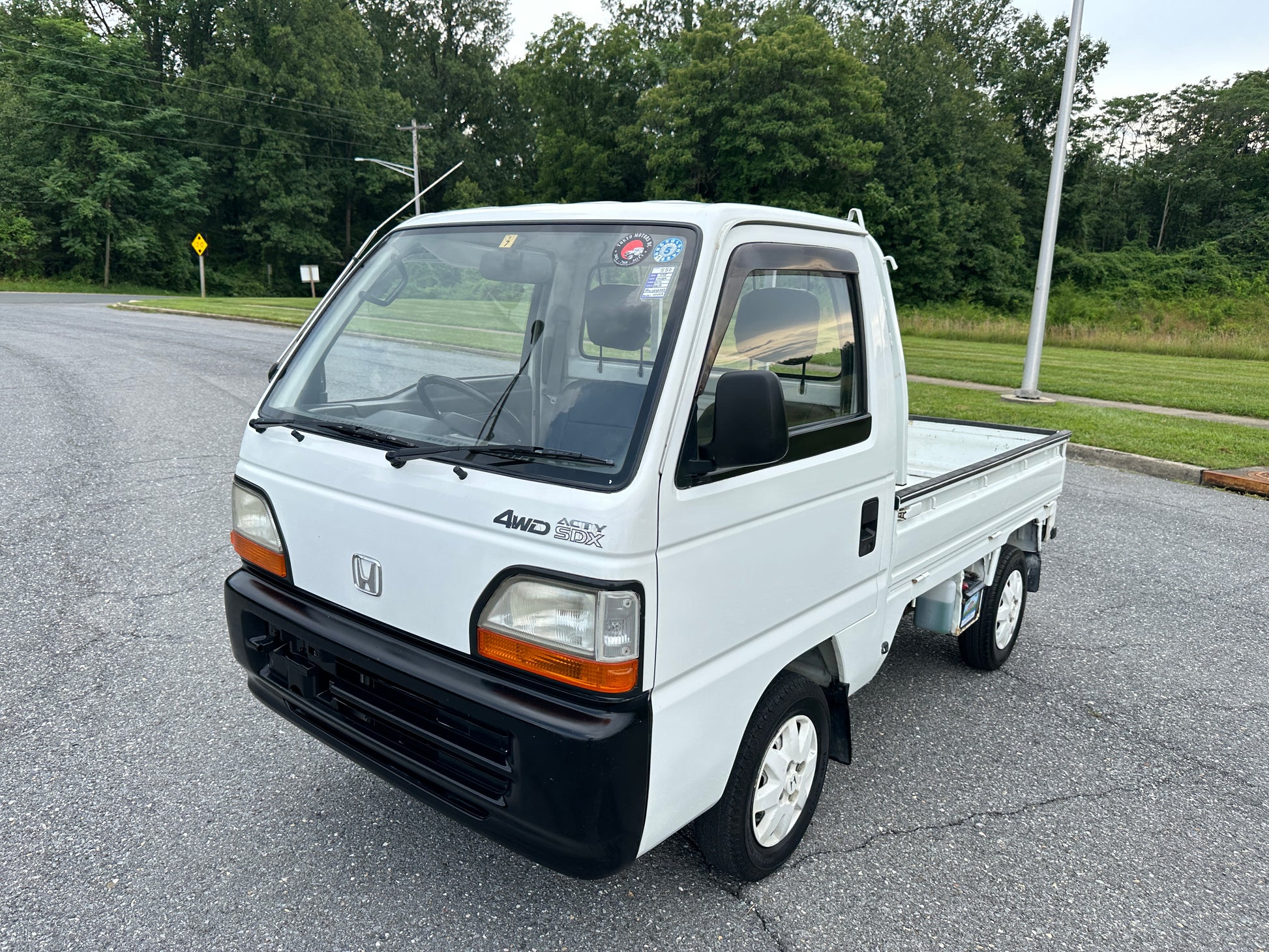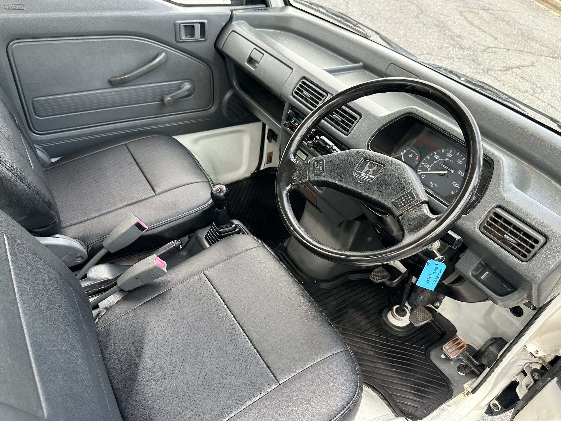 1995 HONDA ACTY SDX V-HA4 —— 40,447 Miles, “E07A” Engine, 660CC, Inline-Three, Gasoline, 5-Speed Manual, Transmission, REALTIME 4WD, Drop-Down Cargo Bed Sides, 350kg Load Capacity, Cargo Area Light, OEM Wheels With Honda Branded Hubcaps, Heat & Fan, Leather Seat Covers, New Battery.