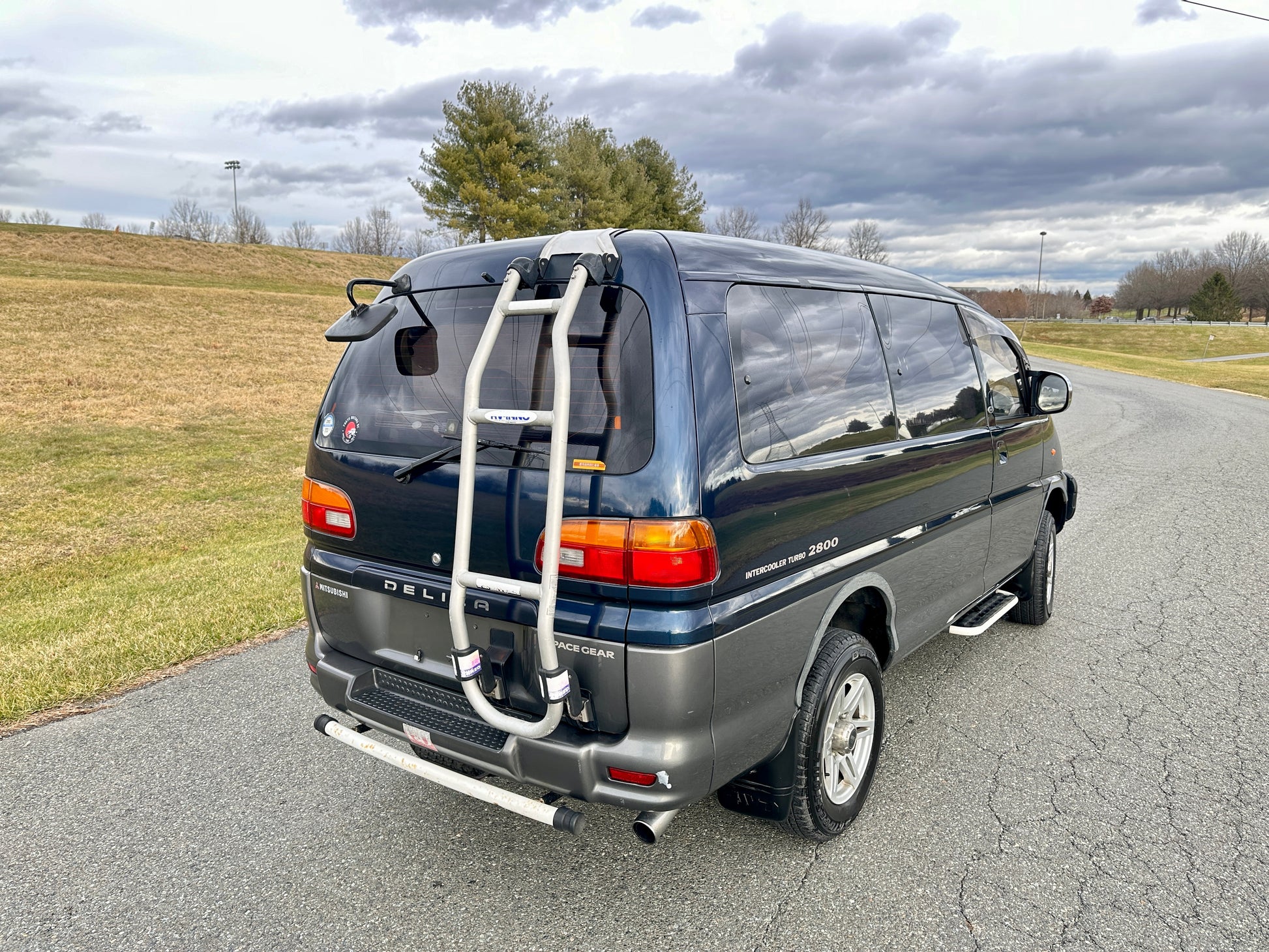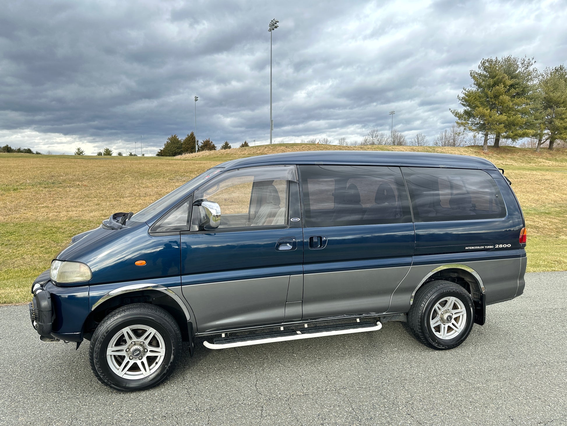 1995 MITSUBISHI DELICA SPACE GEAR EXCEED 4WD LONG WHEELBASE PF8W——99,548 Miles, “4M40”, Inline 4, 2835cc, 2.8 Liter, INTERCOOLER TURBO DIESEL, 4-Speed Automatic Transmission and a Dual Range Transfer Case, CENTER LOCKING DIFFERENTIAL, Selectable 4WD, Factory RainGuards, 180 Degree Swiveling & Folding Middle Captains Seats, 3rd Row Seating, 7 Seater, Cloth Upholstery, Aftermarket Stereo, Power Windows, Power Adjustable Door Mirrors, BERG Wheels Wrapped In Bridgestone Dueler H/T Tires , Power Locks, Factory Brush-Guard With Fog Lights, Automatic Dual-Zone Climate Control, Privacy Tint, Terzo Ladder, FUNCTIONAL HOOD SCOOP, Hood Wind Deflector.