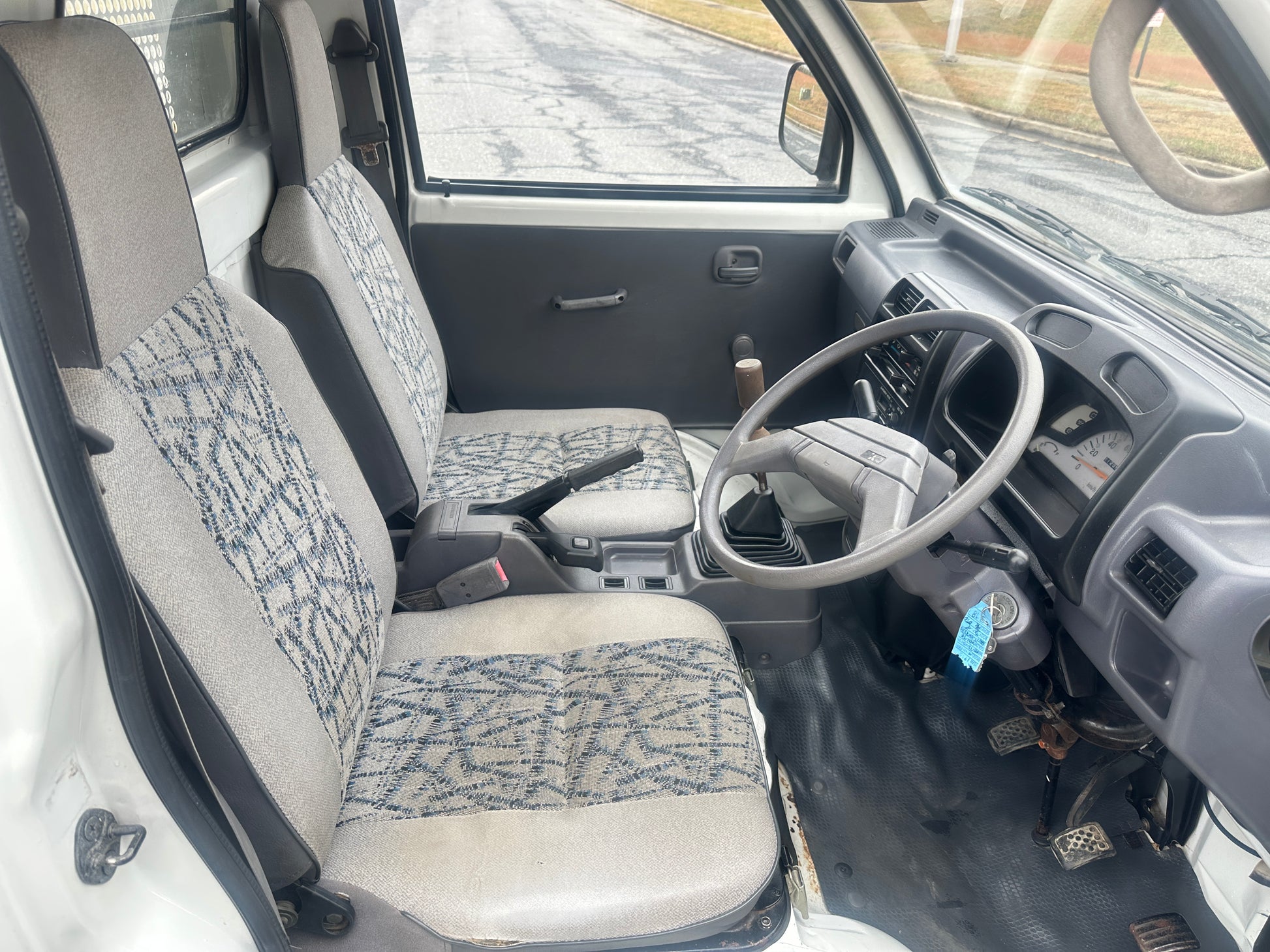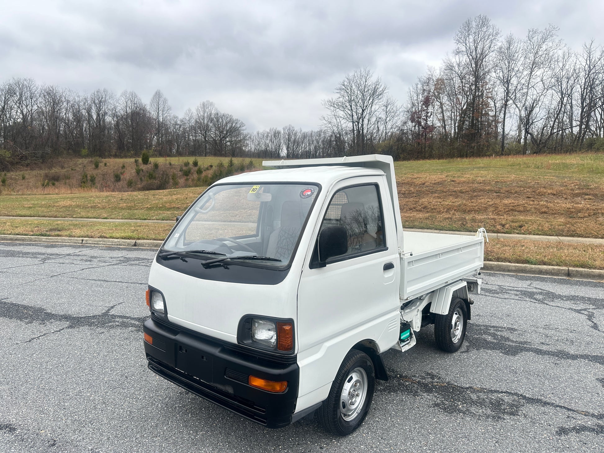1995 MITSUBISHI MINICAB DUMP TRUCK V-U42T ——77,036 Miles, “3G83” 12 Valve Engine, 660CC Inline-Three, Gasoline, 4-Speed Manual Transmission, Dual Range Transfer Case With High & Low Range, Selectable 4WD, PTO OPERATED DUMP BED WITH FOLD-DOWN SIDES, 350kg Load Capacity, Fan & Heat.