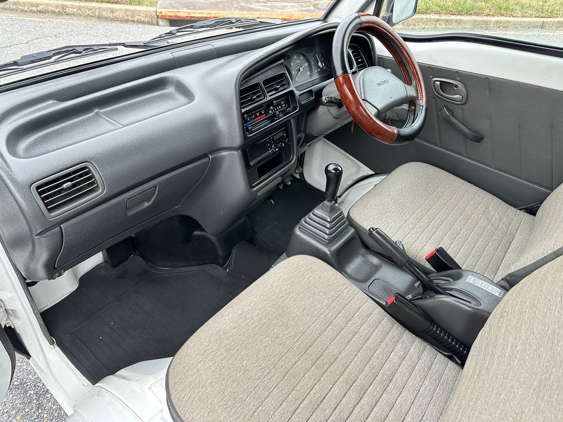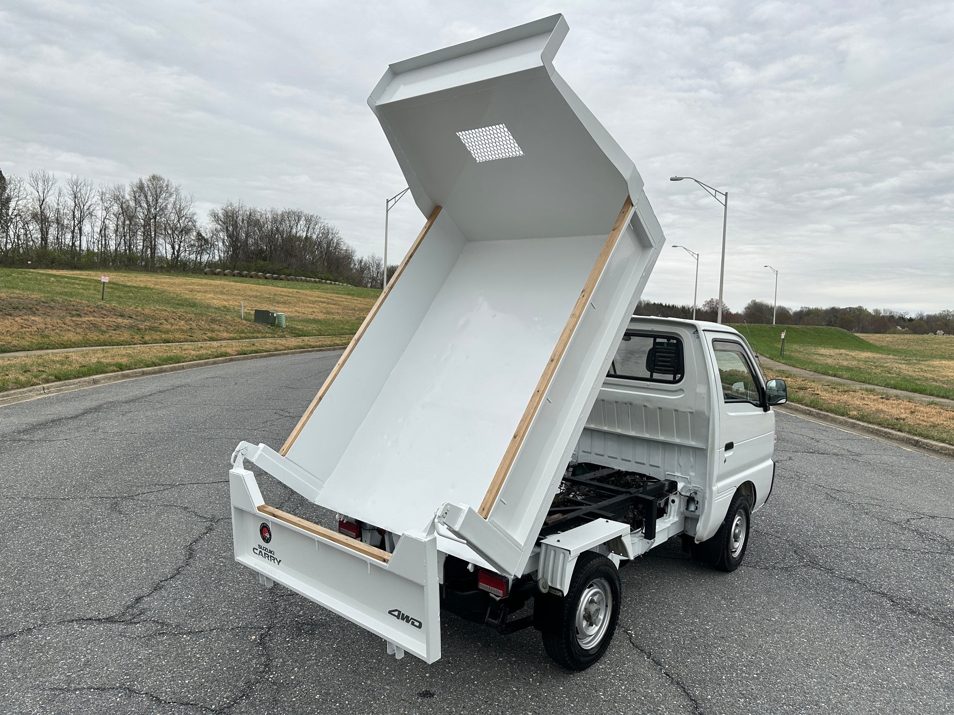1995 SUZUKI CARRY V-DD51T—— 23,103 Miles, “F6A” Engine, 660CC Inline-Three, Gasoline, 5-Speed Manual Transmission, Selectable 4WD, AXLE LOCK, DIFF LOCK, DUMP BED, 350kg Load Capacity, NEW PAINT-JOB, AIR CONDITIONING & HEAT.