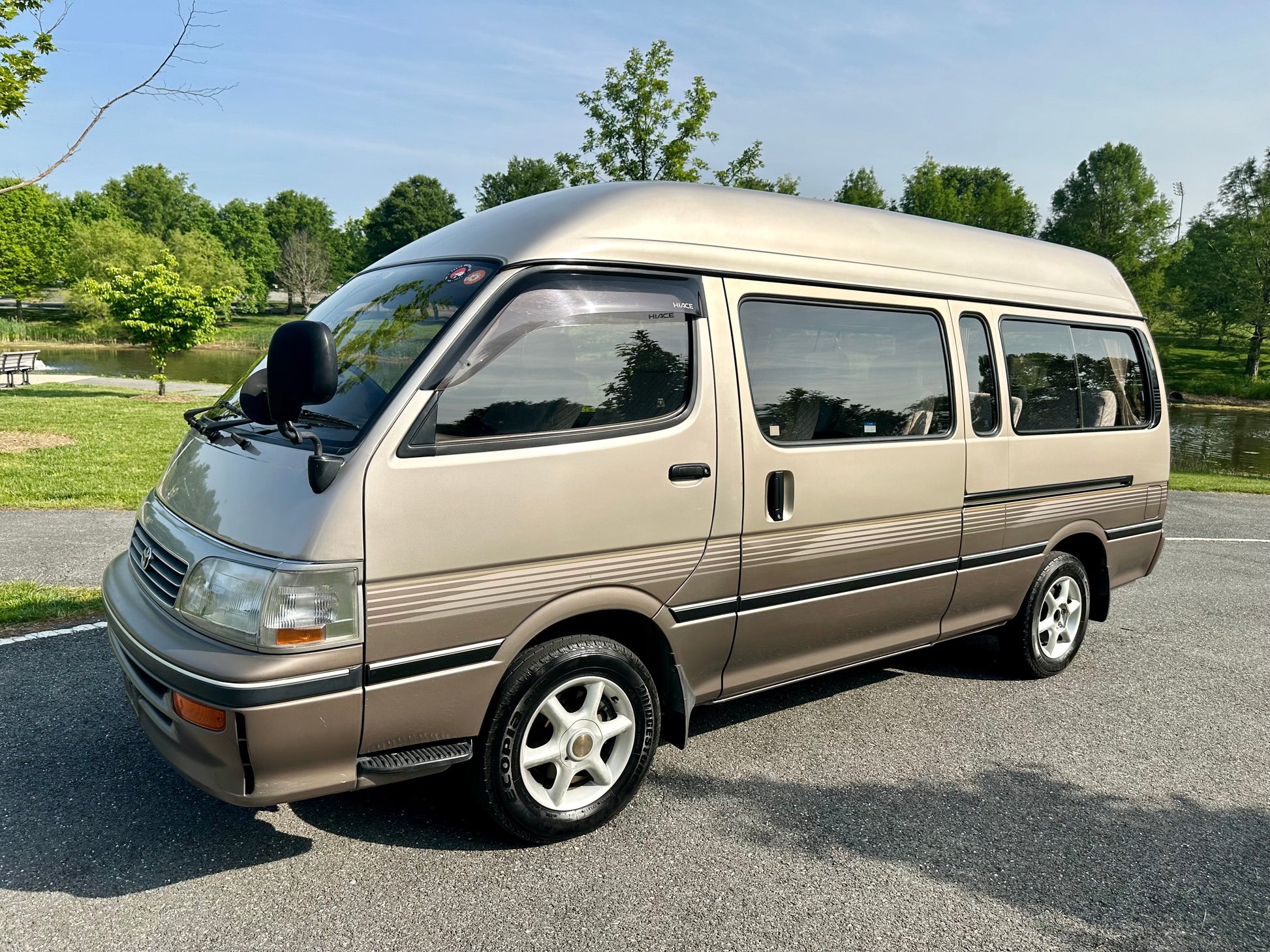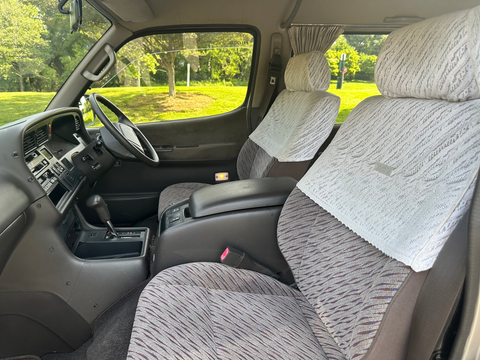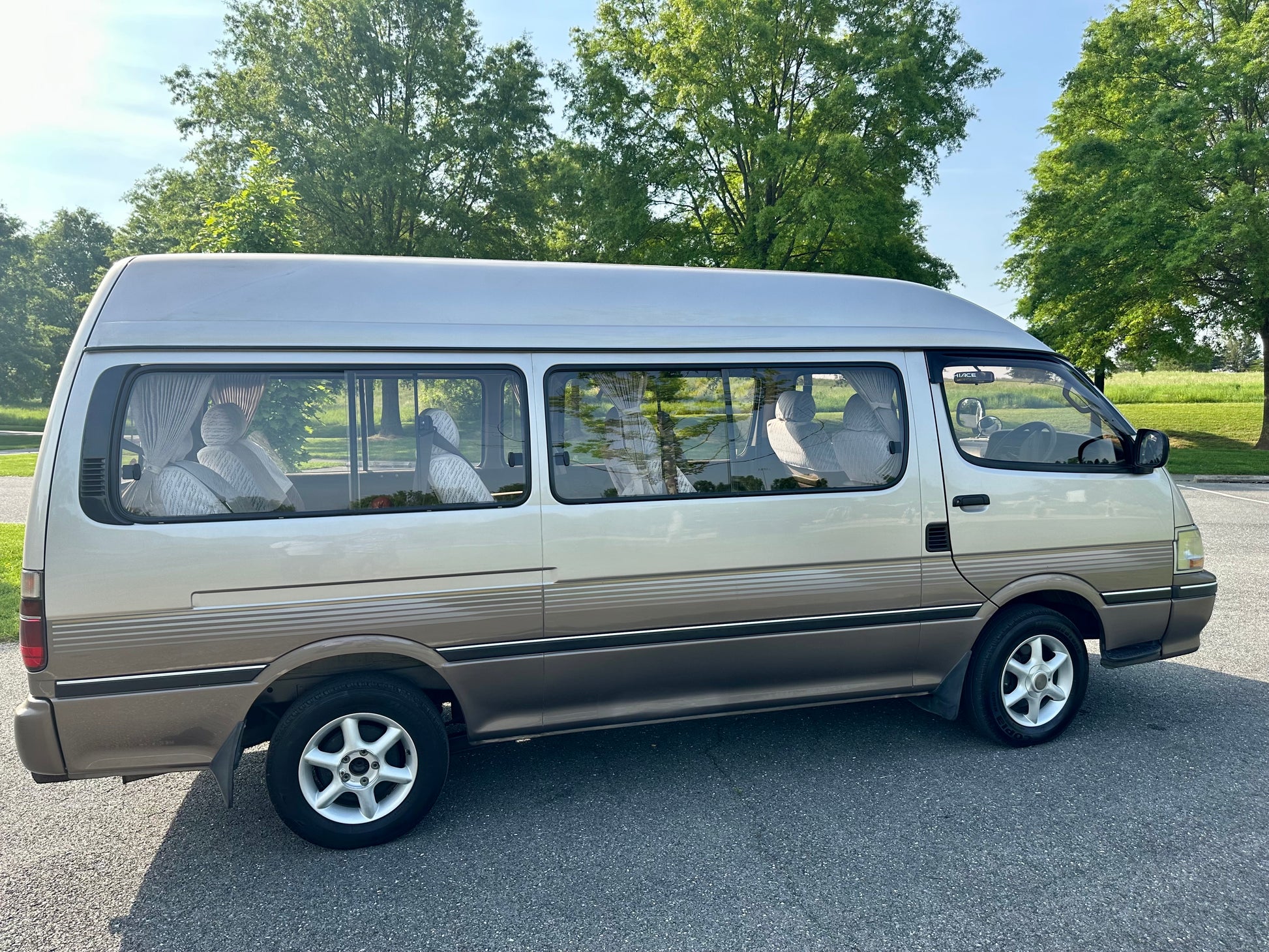1995 TOYOTA HIACE GRAND CABIN G KZH120 ——47,224 miles, “1KZ-TE” 3.0 Liter Inline 4, Turbo Diesel, Automatic Transmission, HIGH ROOF, Two-Tone Paint (21T), Brown Cloth Upholstery, 10 Seater, Aftermarket Wheels, Rear Heat and A/C, Dual Zone Climate Control, Power Windows, Power Mirrors, Power Locks, Soft Closing Sliding Door, Curtains.