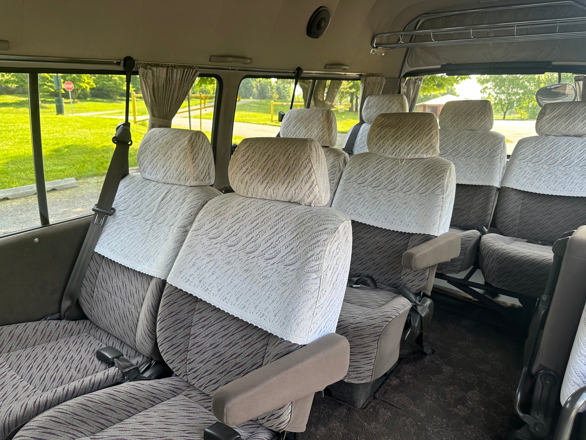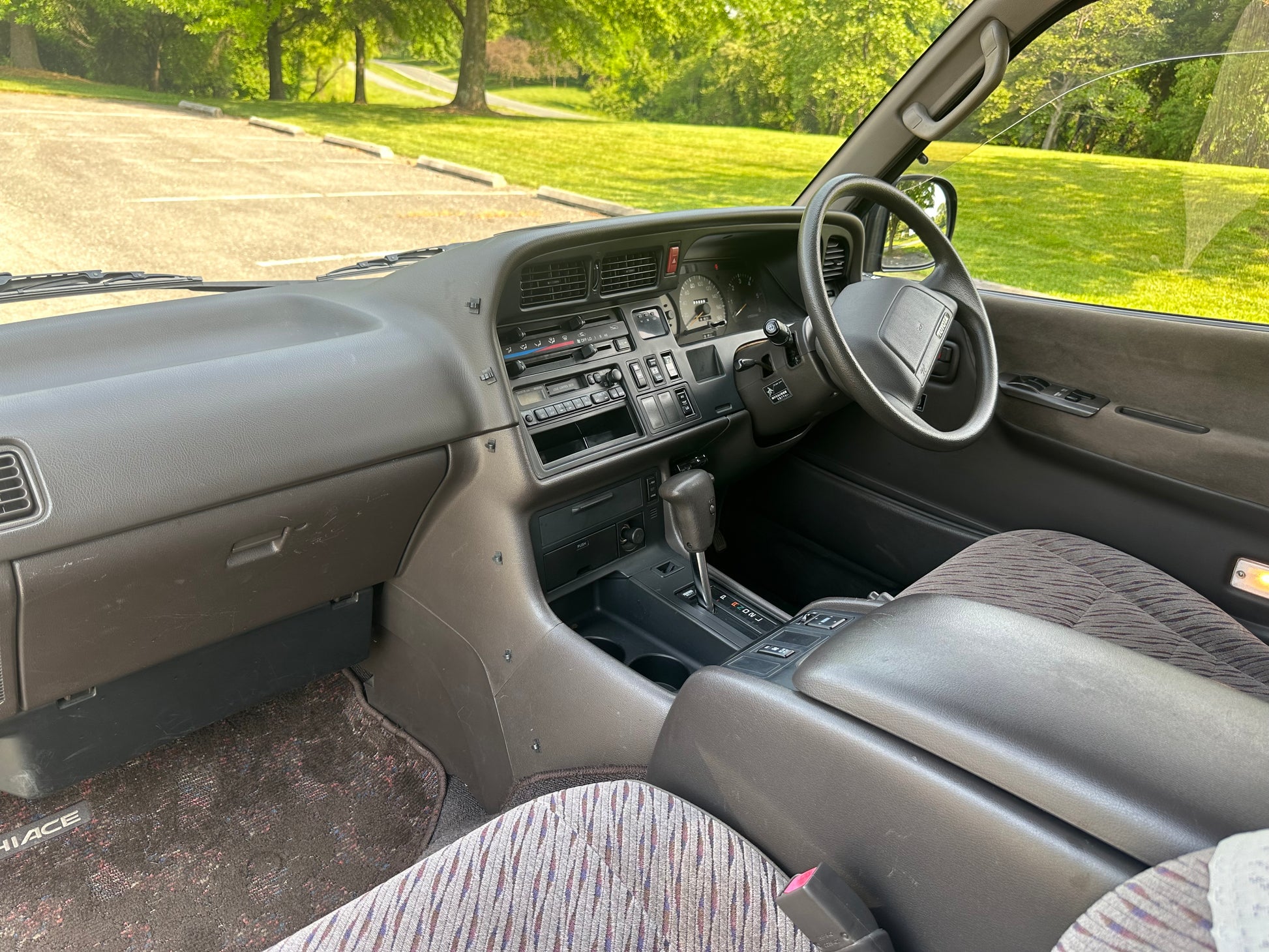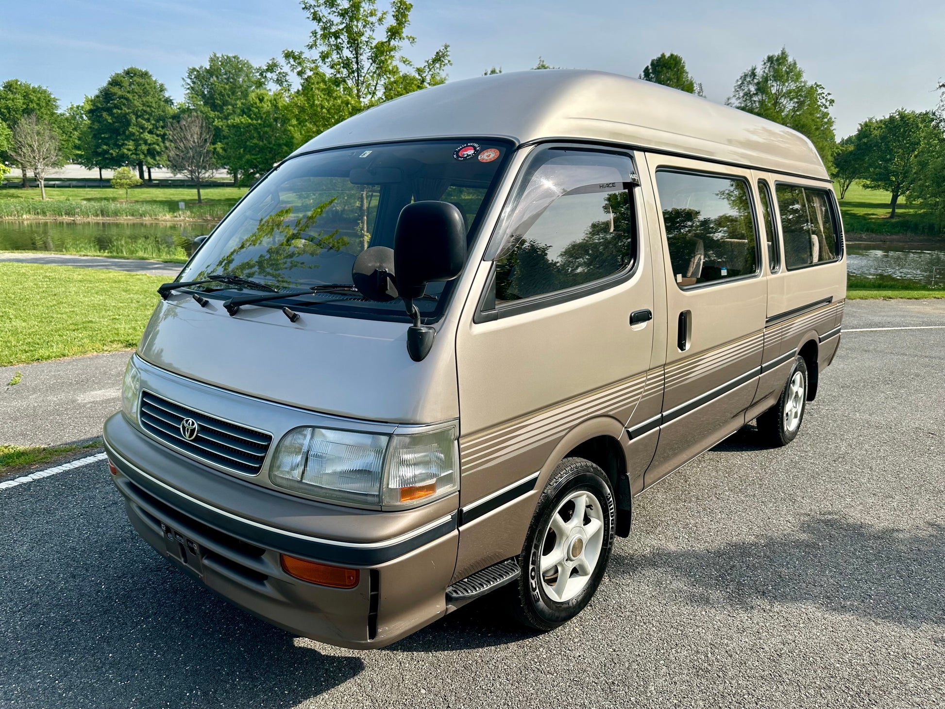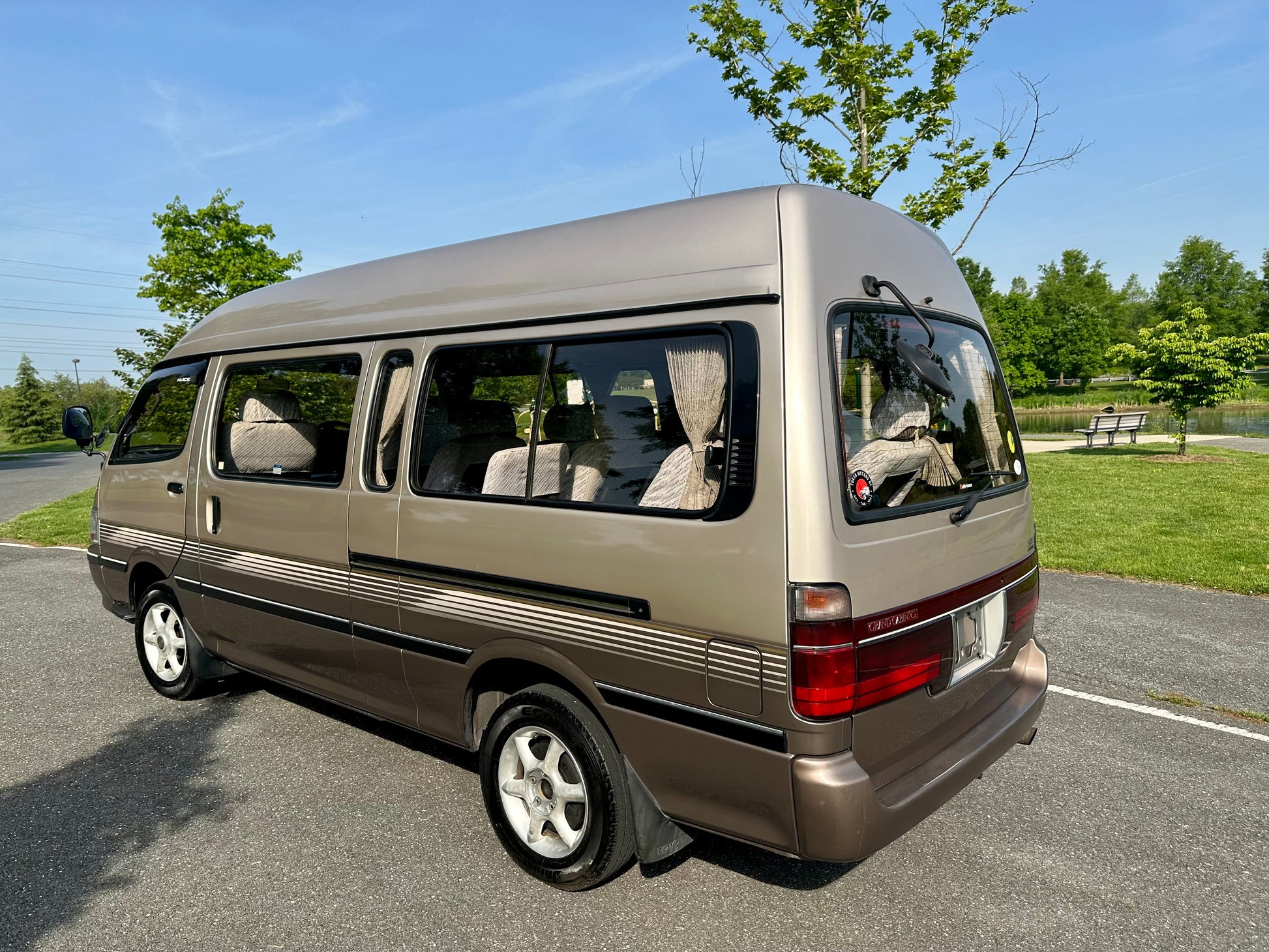 1995 TOYOTA HIACE GRAND CABIN G KZH120 ——47,224 miles, “1KZ-TE” 3.0 Liter Inline 4, Turbo Diesel, Automatic Transmission, HIGH ROOF, Two-Tone Paint (21T), Brown Cloth Upholstery, 10 Seater, Aftermarket Wheels, Rear Heat and A/C, Dual Zone Climate Control, Power Windows, Power Mirrors, Power Locks, Soft Closing Sliding Door, Curtains.