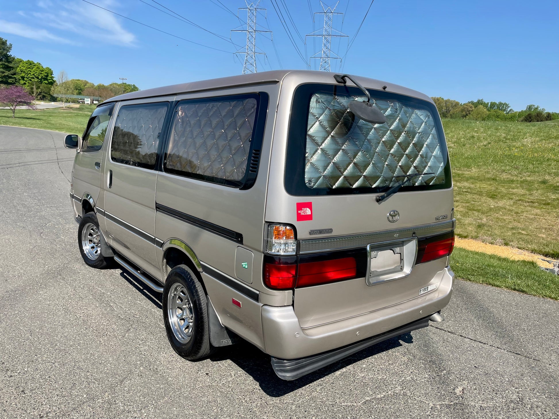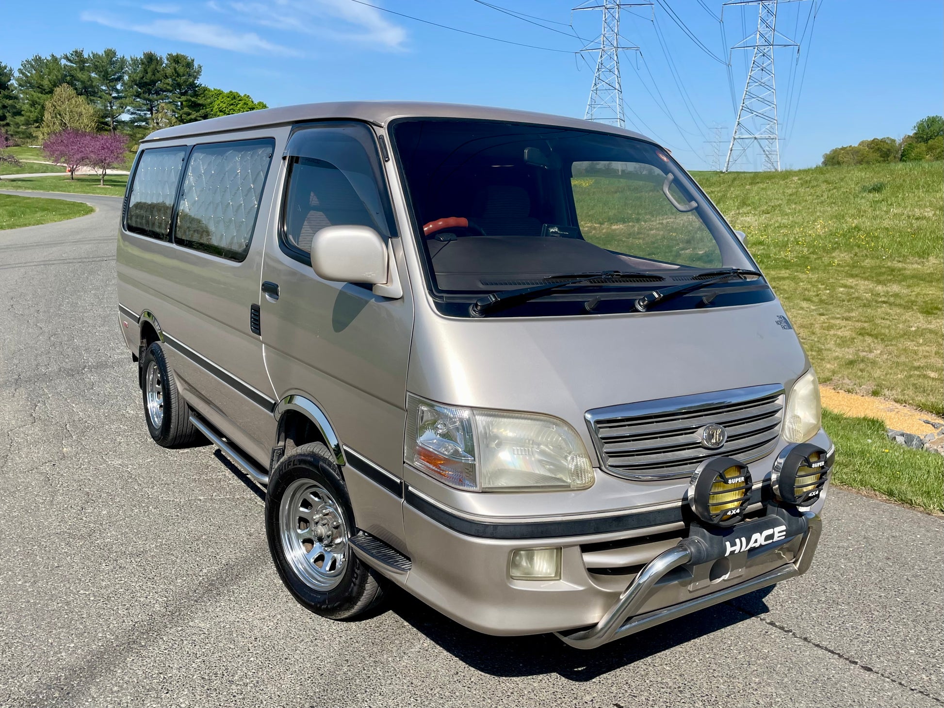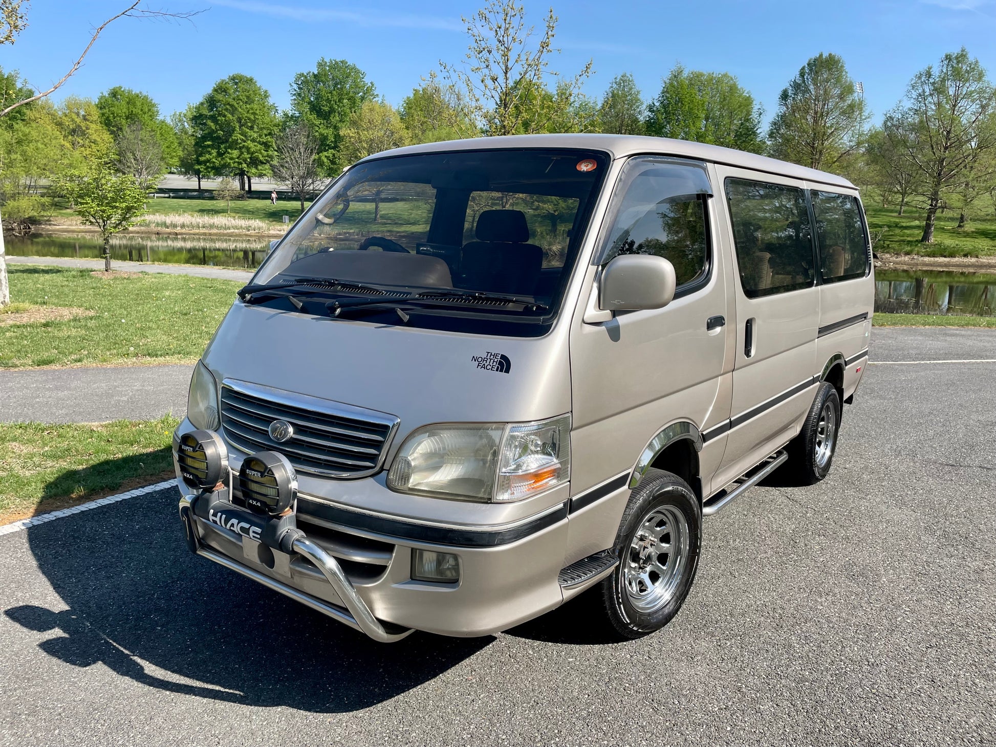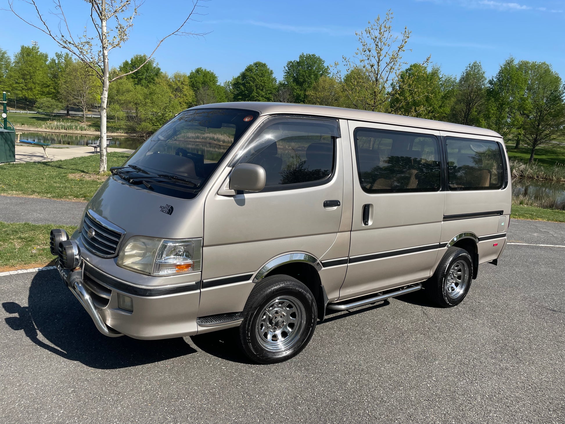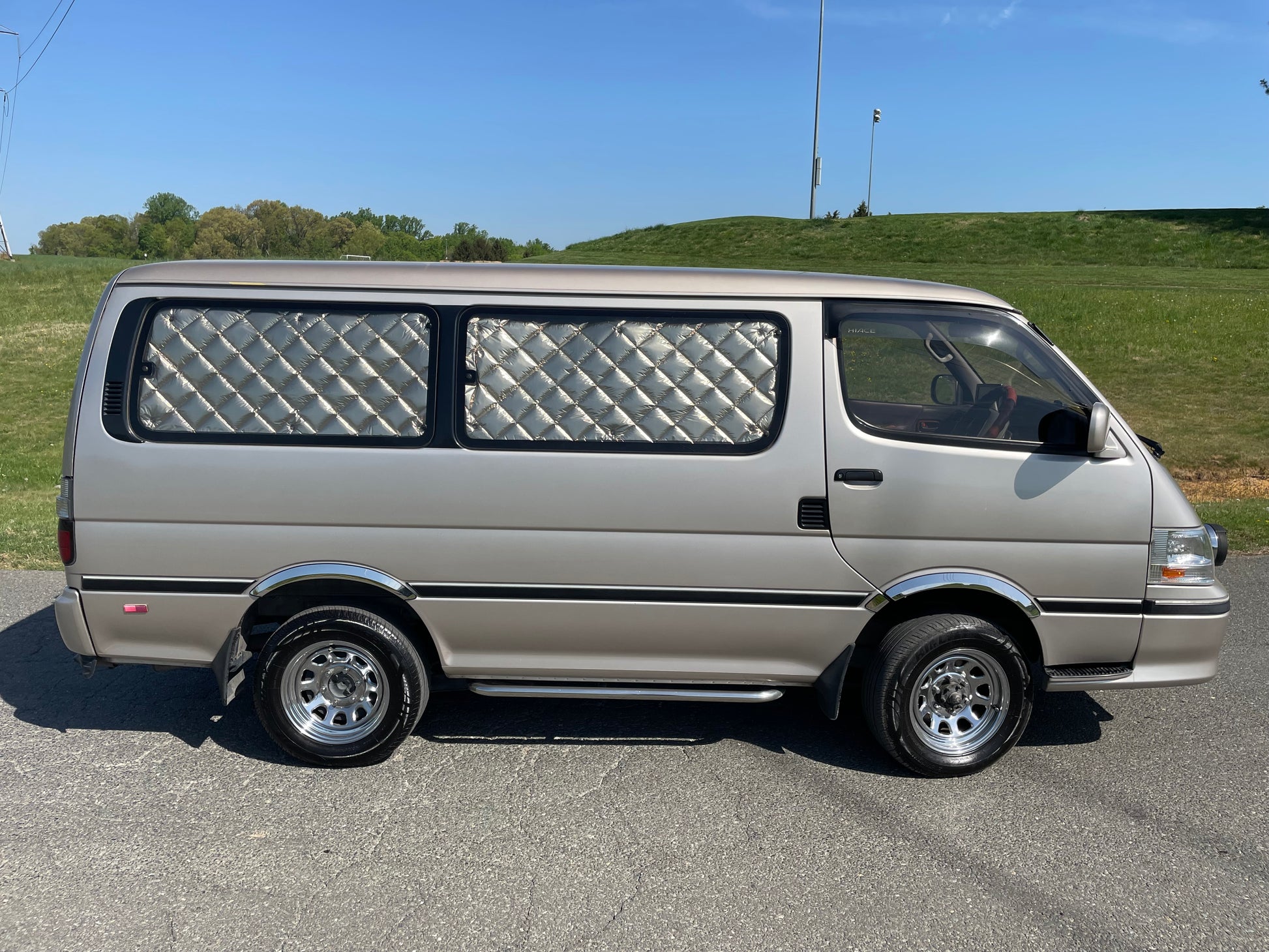 1995 TOYOTA HIACE SUPER CUSTOM KZH106 ——152,411miles, “1KZ-TE” 3.0 Liter Inline 4, Turbo Diesel, Automatic Transmission, Full Time 4WD, Silver Paint, Brown Cloth Upholstery, Factory 3rd Row, 180 Degree Swivel Middle Row, Full Flat Folding Seats, Dual Zone Climate Control, Power Windows, Power Mirrors, Power Locks, Soft Closing Sliding Door, AFTERMARKET WHEELS, PRIVACY SHADES FOR CAMPING, KENWOOD HEAD UNIT AND T/V, FOG LAMPS, HIACE BRANDED BULL BAR, TUBULAR NERF BARS, HIACE BRANDED REAR BUMPER SKIRT.