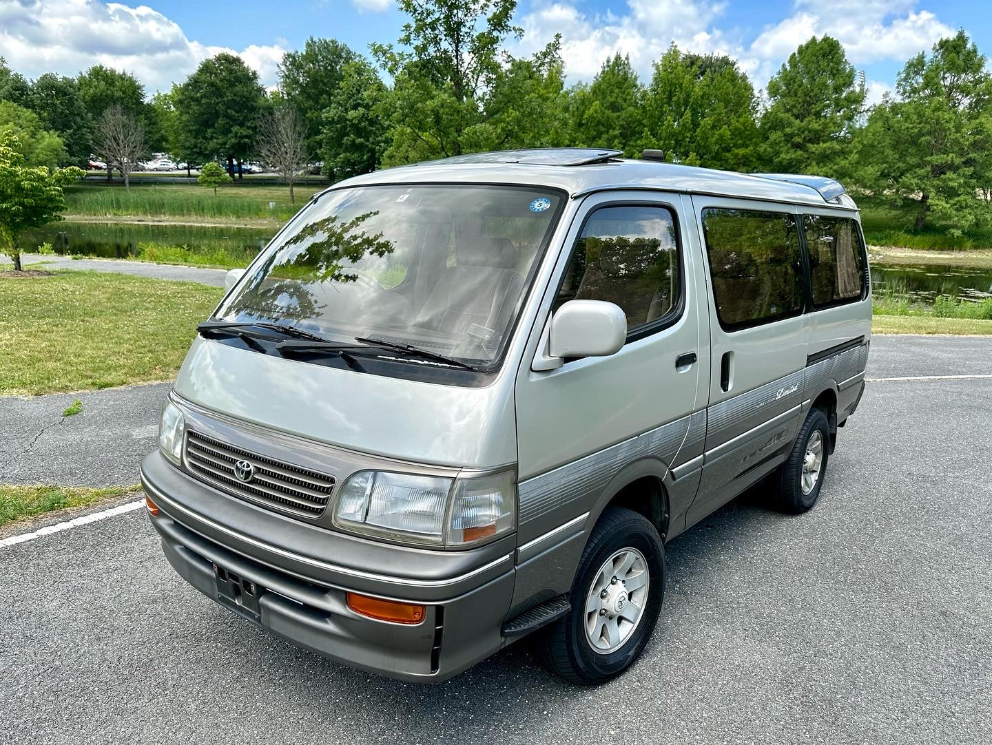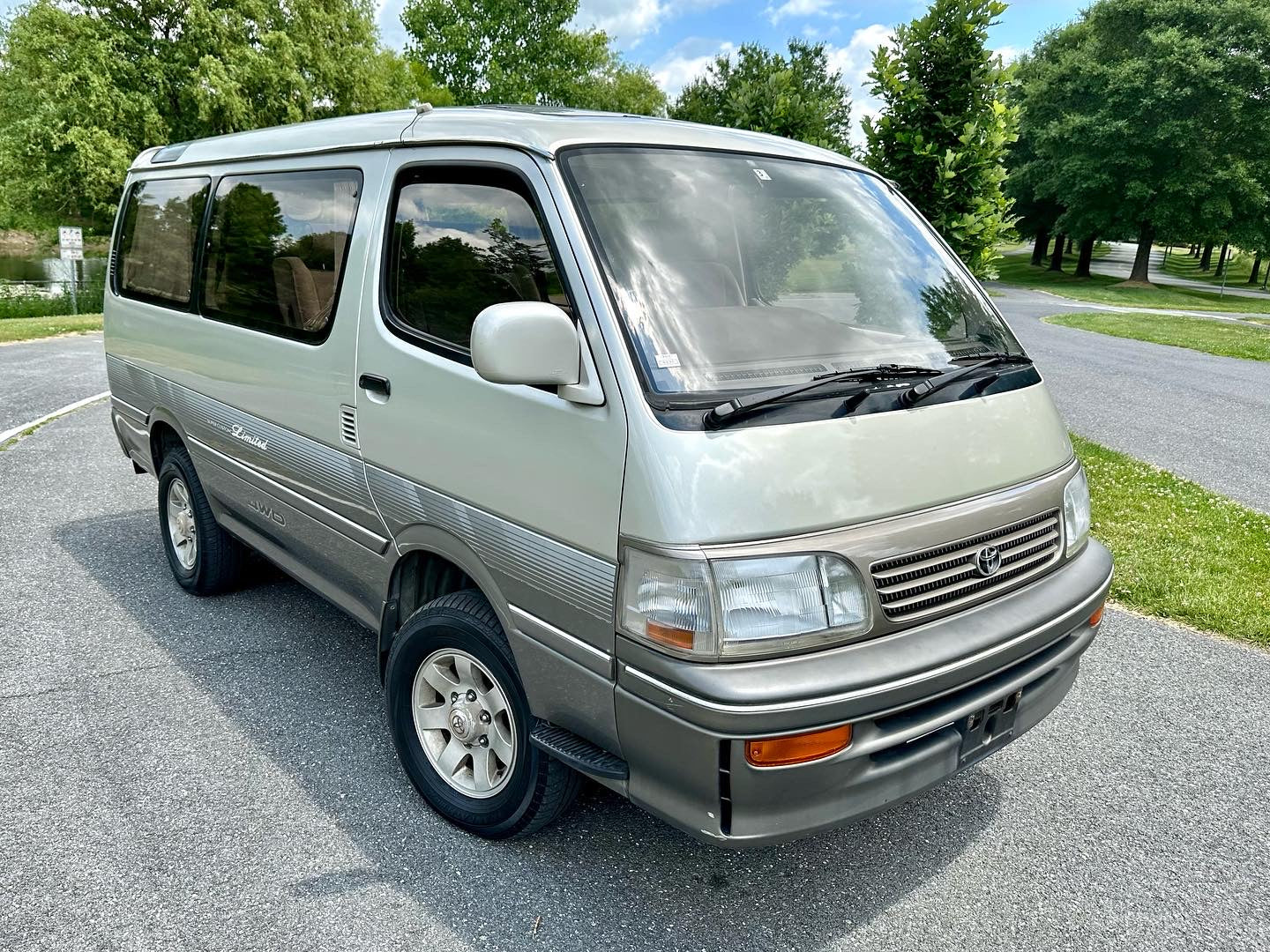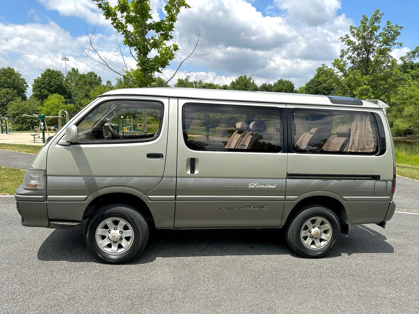 1995 TOYOTA HIACE SUPER CUSTOM LIMITED KZH106 ——76,534 Miles, “1KZ-TE” 3.0 Liter Inline 4, Turbo Diesel, Automatic Transmission, Full Time 4WD, Venting Front Sunroof, Massive Central Sunroof, Power Rear Sunroof, Two-Tone Paint, Brown Cloth Upholstery, Driver Airbag, Factory 3rd Row, 180 Degree Swivel Middle Row, Full Flat Folding Seats, Dual Zone Climate Control, Power Windows, Power Retractable Mirrors, Power Locks, Soft Closing Sliding Door, Power Curtains, Original Radio, ABS, OEM Wheels, DIGITAL INSTRUMENT CLUSTER, ELECTRIC DRIVER’S SEAT.