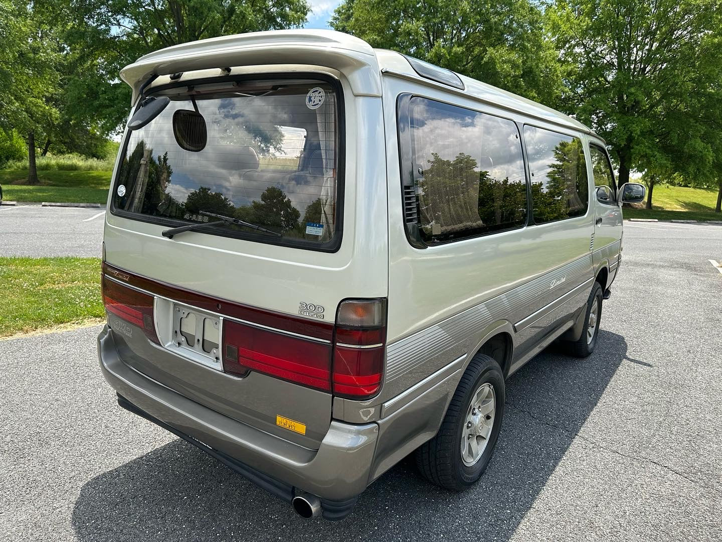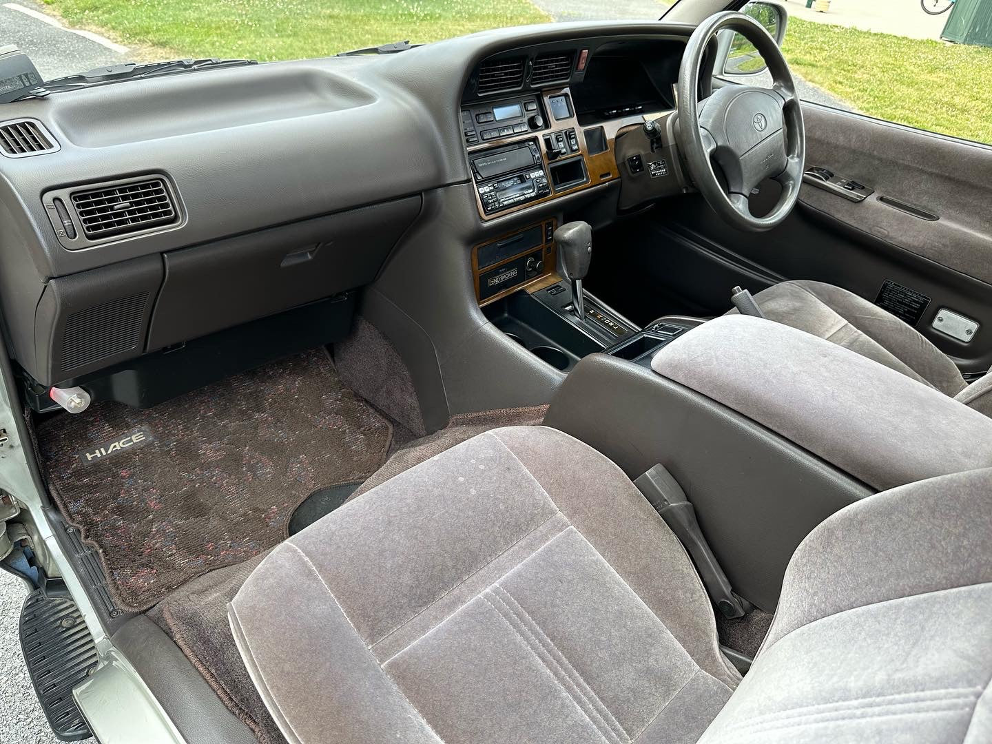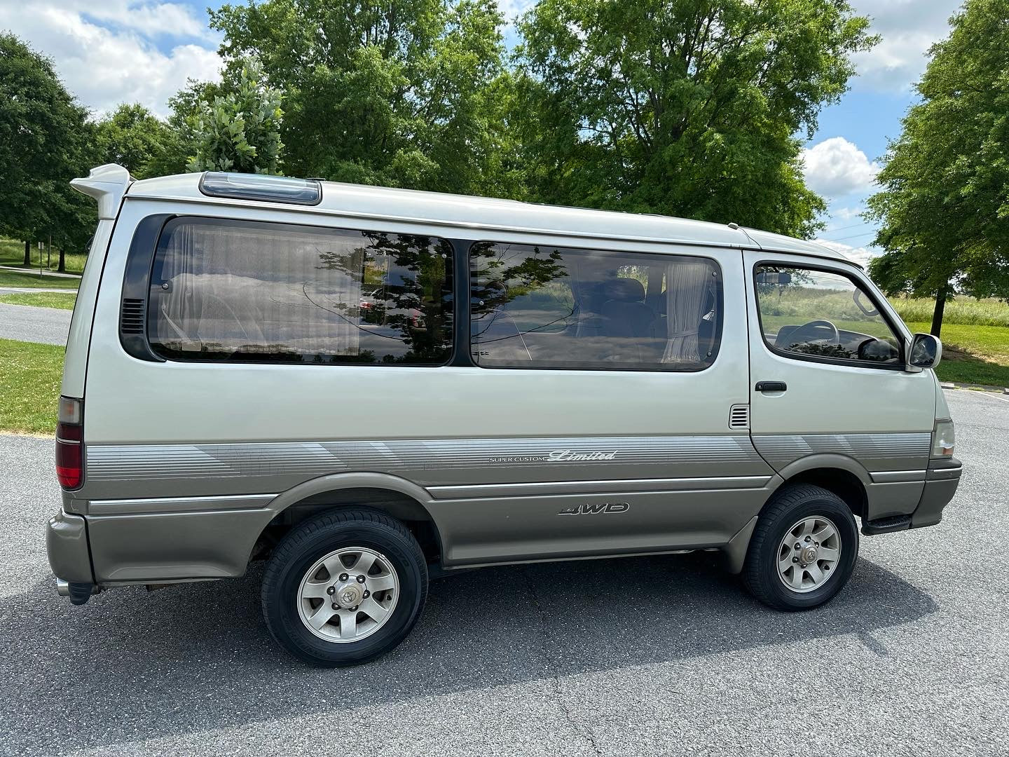1995 TOYOTA HIACE SUPER CUSTOM LIMITED KZH106 ——76,534 Miles, “1KZ-TE” 3.0 Liter Inline 4, Turbo Diesel, Automatic Transmission, Full Time 4WD, Venting Front Sunroof, Massive Central Sunroof, Power Rear Sunroof, Two-Tone Paint, Brown Cloth Upholstery, Driver Airbag, Factory 3rd Row, 180 Degree Swivel Middle Row, Full Flat Folding Seats, Dual Zone Climate Control, Power Windows, Power Retractable Mirrors, Power Locks, Soft Closing Sliding Door, Power Curtains, Original Radio, ABS, OEM Wheels, DIGITAL INSTRUMENT CLUSTER, ELECTRIC DRIVER’S SEAT.