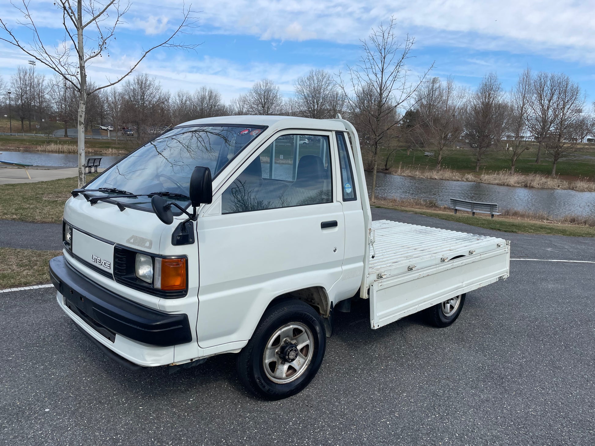 1995 TOYOTA LITEACE CM60——59,787 miles. “2C” 1974cc, Inline Four, Diesel, Column-Shifted 5 Speed Manual Transmission, Floor Shifted 2 Speed Transfer Case, Push Button 4WD, Manually Locking Aisin Front Hubs, White Paint (048), Vinyl Upholstery, 60/40 Split Seat With A Center Armrest, Manual Windows, 750KG Payload Capacity, Bulkhead Bar.