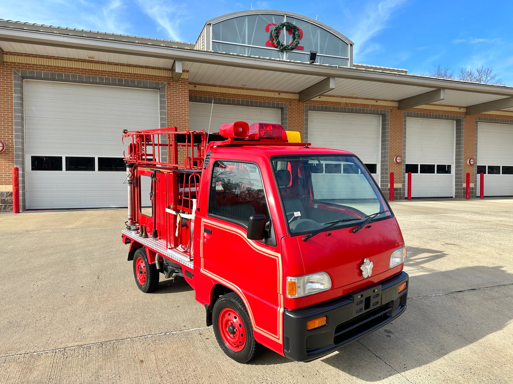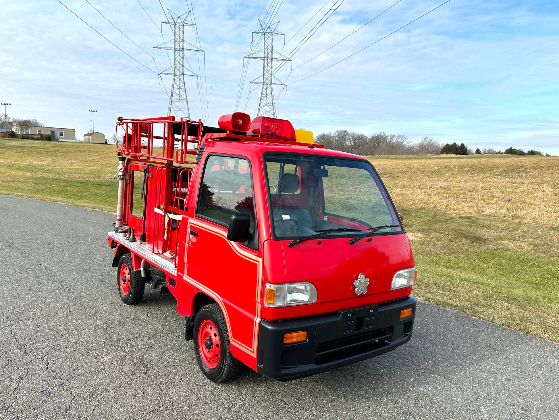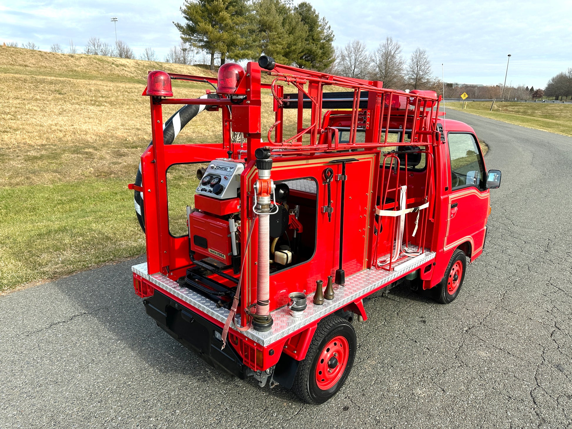 1996 SUBARU SAMBAR V-KS4 —— 3,219 Miles, “EN07” CLOVER 4 Engine, 660CC, 4-Cylinder, Gasoline, 5-Speed Manual Transmission, EXTRA LOW GEAR, Selectable 4WD, OEM Radio, Open-Air Rear Bench Seat, Equipped With TOHATSU Fire Fighting Pump, Hoses, Nozzles, Ladder, OSAKA Siren, Loudspeaker System, Spotlight, Emergency Flashers.