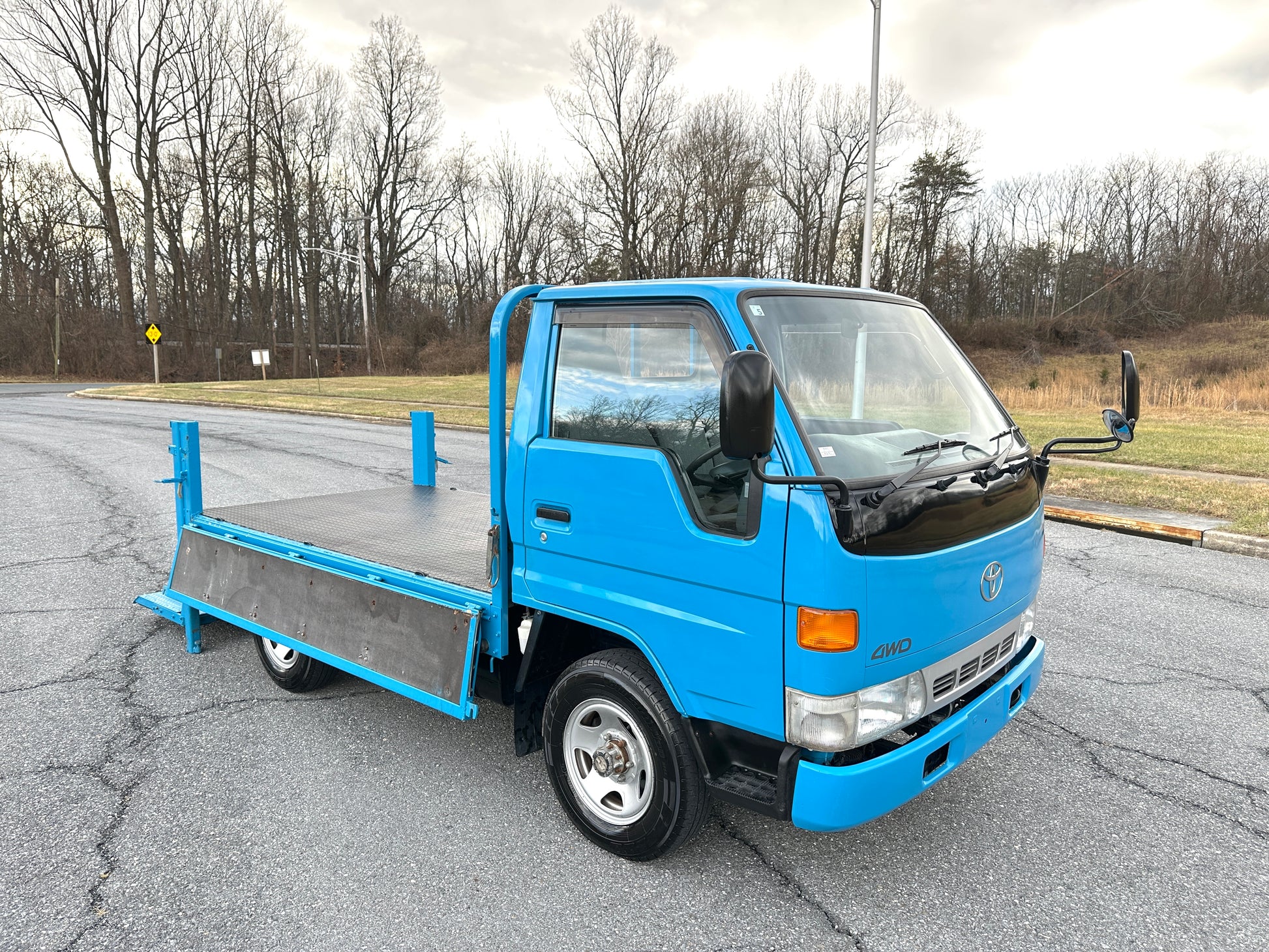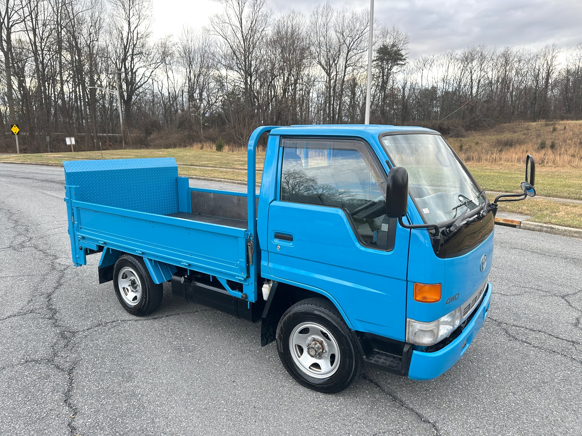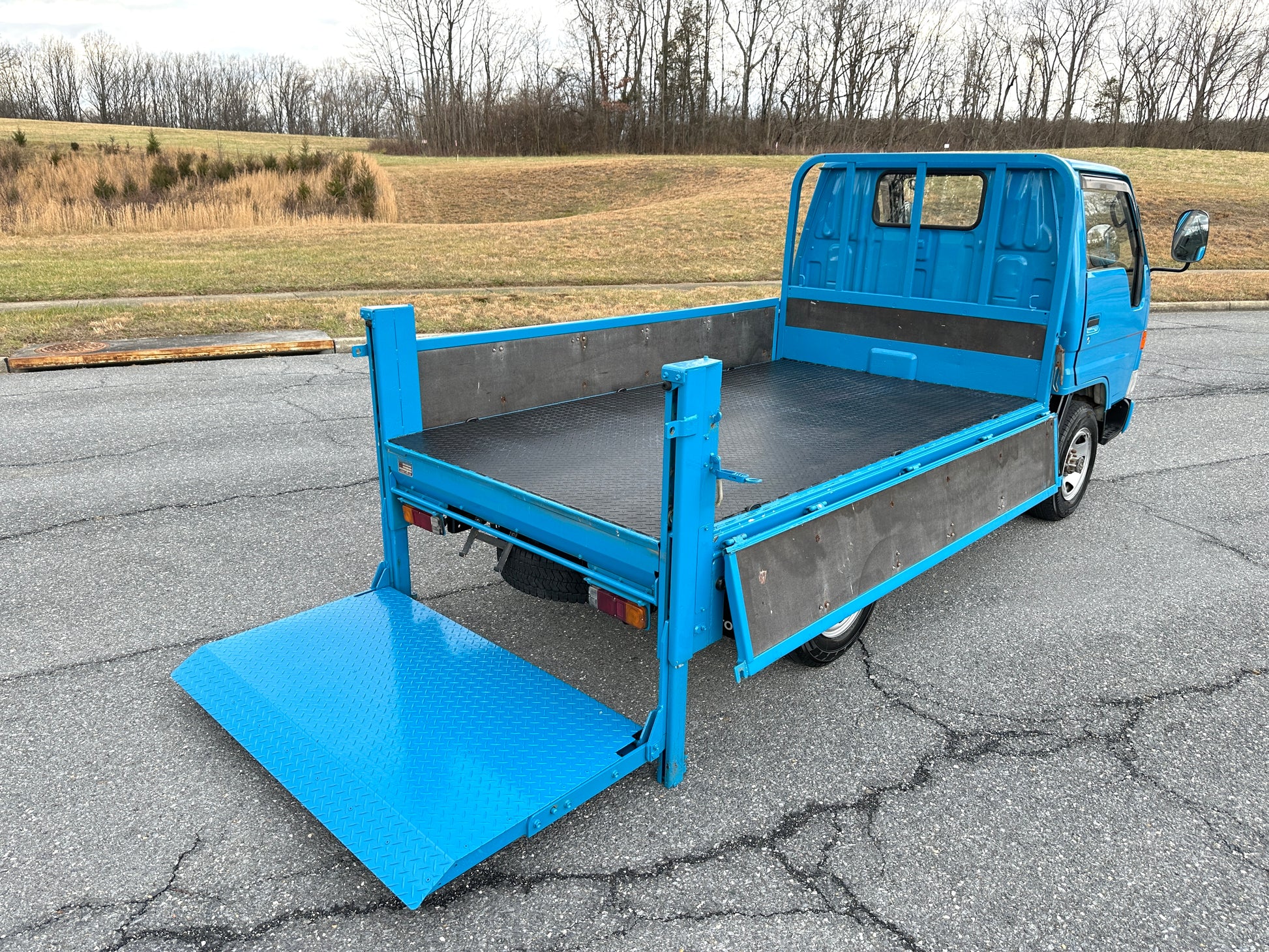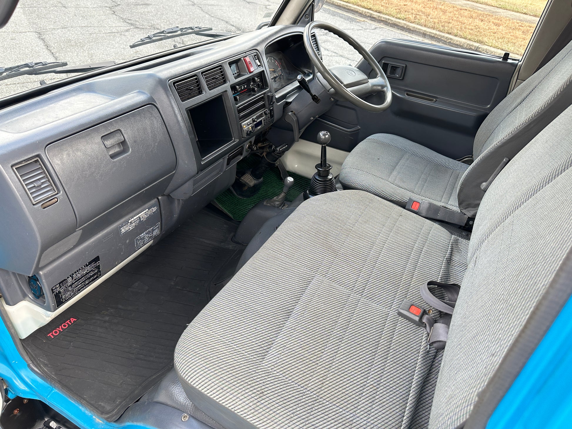 1996 TOYOTA HIACE LY151 —56,225 miles. “3L” 2,779cc, Inline Four, Diesel, 5 Speed Manual Transmission, Floor Shifted 2 Speed Transfer Case, 4WD With High And Low Ranges, Manually Locking Aisin Front Hubs, Blue Paint, Cloth Upholstery, AIR CONDITIONING & HEAT, Drop-Side Cargo Bed With Steal Reinforced Platform, Bulkhead Bar, Hydraulic Liftgate, Load Capacity of 1050KG.