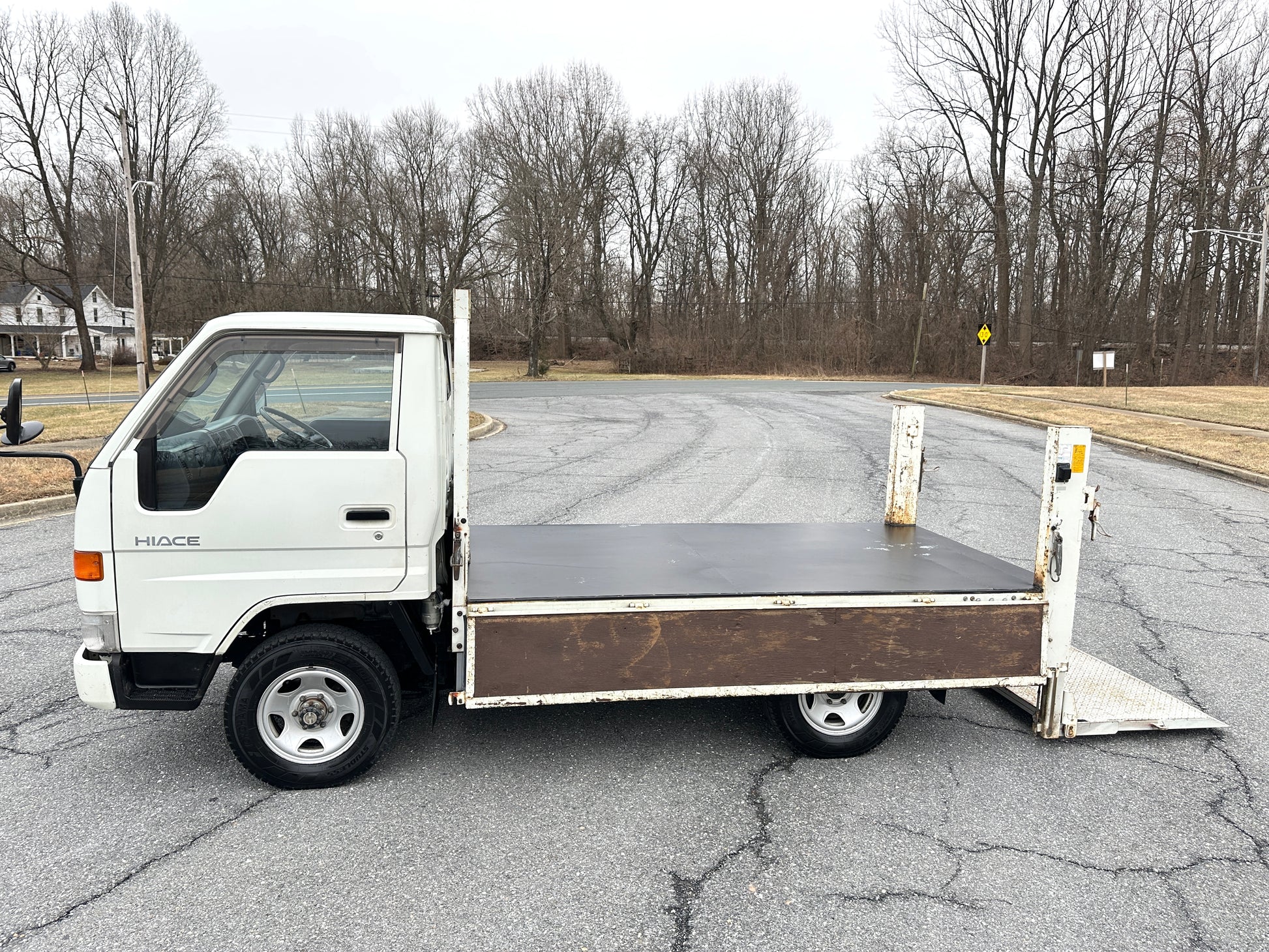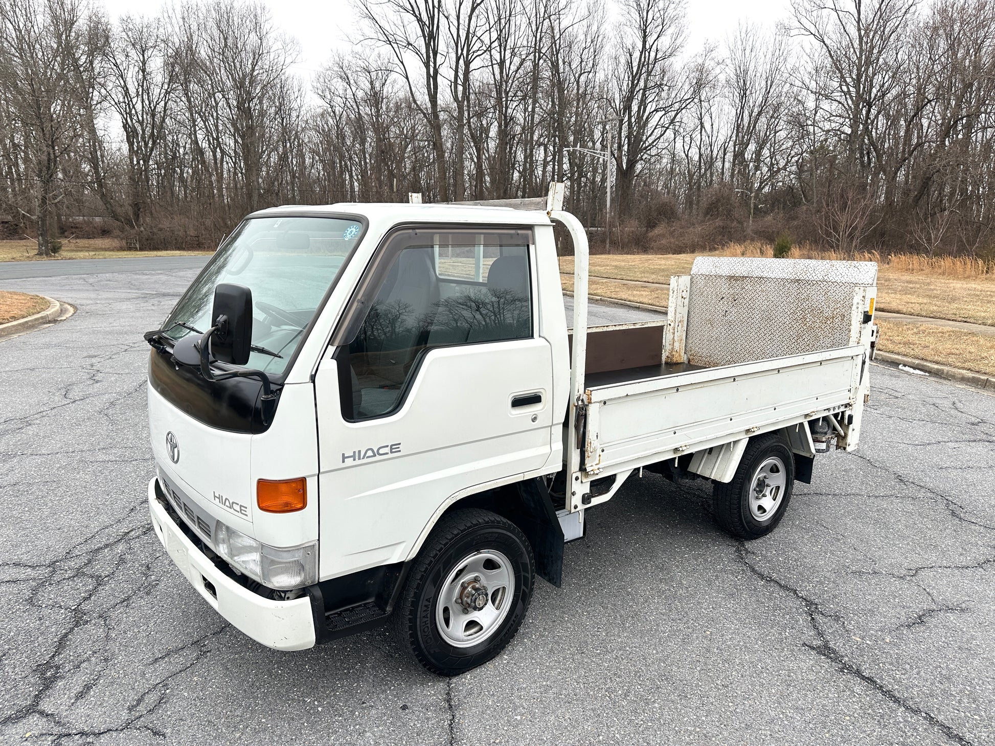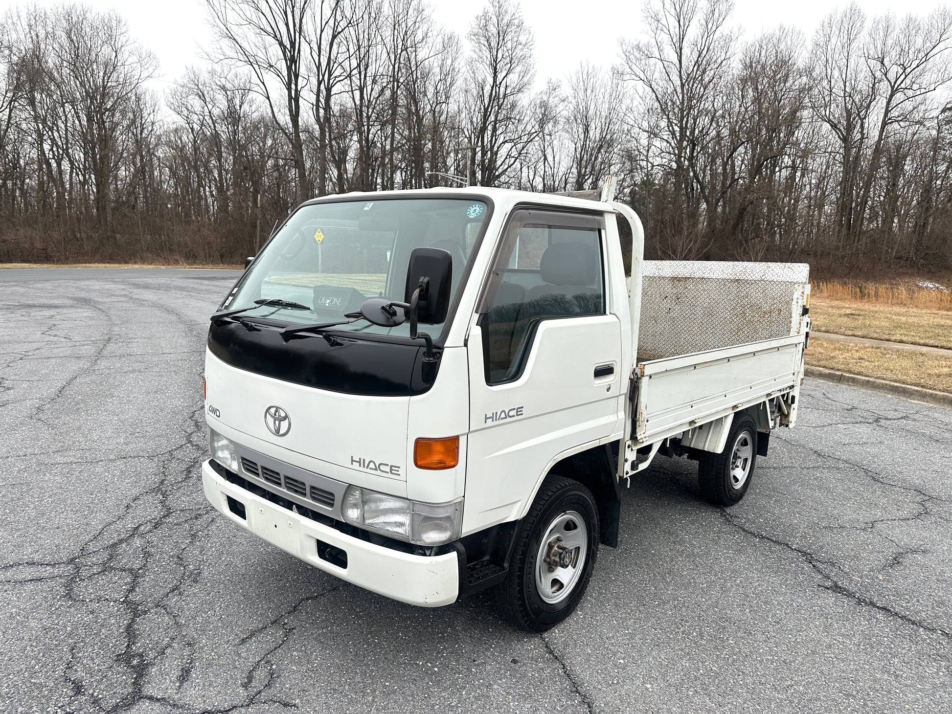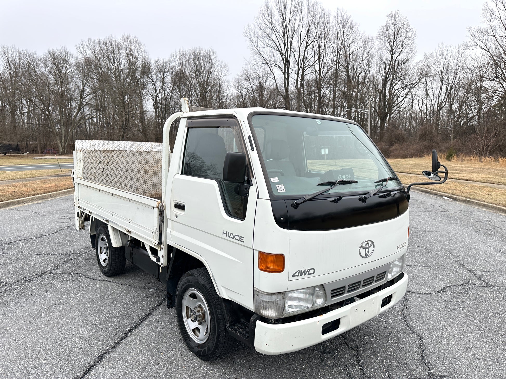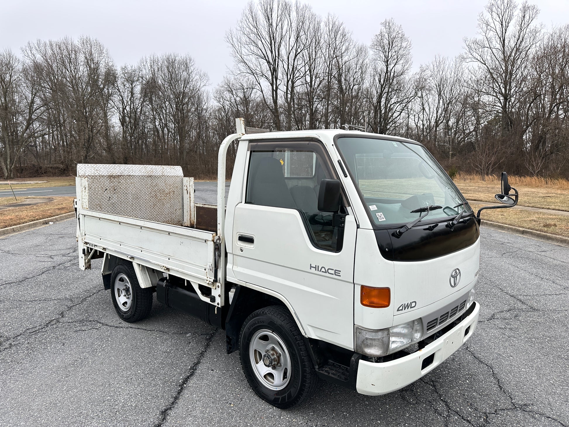 1996 TOYOTA HIACE LY151 —128,954 Miles. “3L” 2,779cc, Inline Four, Diesel, 5 Speed Manual Transmission, Floor Shifted 2 Speed Transfer Case, 4WD With High And Low Ranges, Manually Locking Aisin Front Hubs, White Paint, Cloth Upholstery, AIR CONDITIONING & HEAT, Drop-Side Cargo Bed With Steal Reinforced Platform, Bulkhead Bar, Hydraulic Liftgate with 500KG Lifting Capacity, Load Capacity of 1050KG.