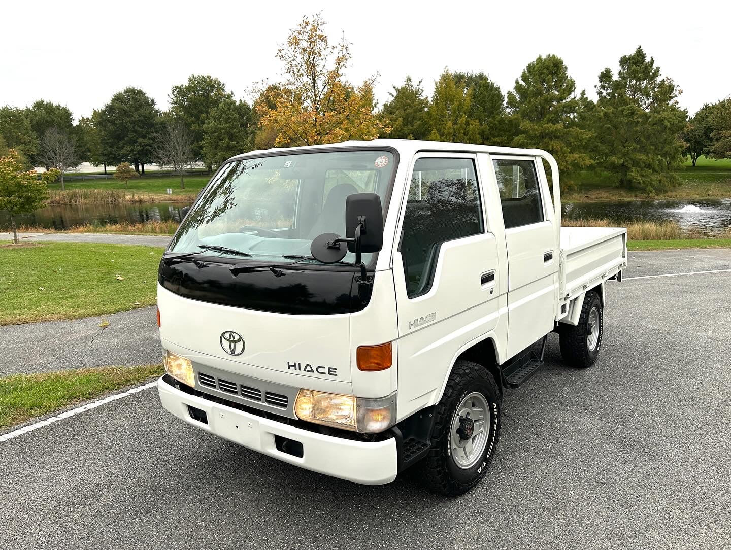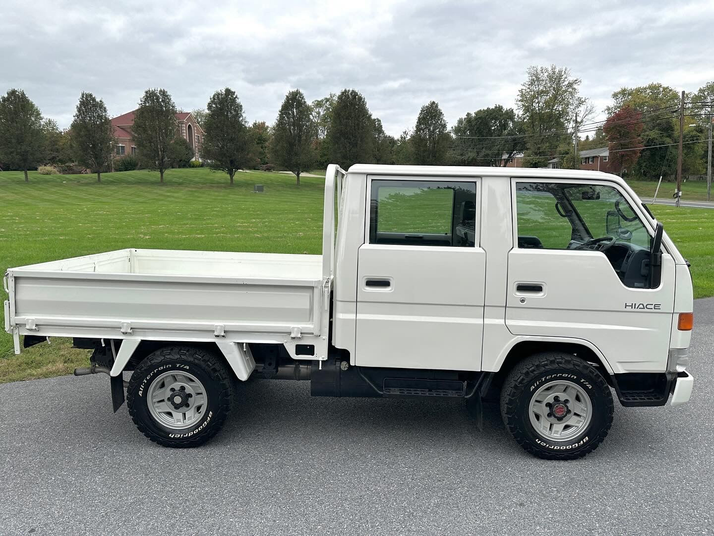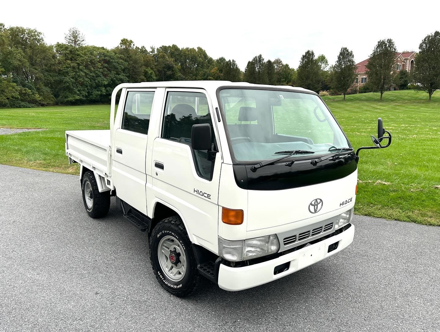 1996 TOYOTA HIACE LY161 —130,877 Miles. “3L” 2,779cc, Inline Four, Diesel, 5 Speed Manual Transmission, Selectable 4WD, Floor Shifted 2 Speed Transfer Case, 4WD High And Low Range, Manually Locking Aisin Front Hubs, DOUBLE CAB, White Paint, Cloth Upholstery, Heat, Manual Windows, Drop-Side Cargo Bed, Bulkhead Bar, Load Capacity of 850KG, OEM TOYOTA WHEELS Wrapped In BFGoodrich All-Terrain T/A Tires.