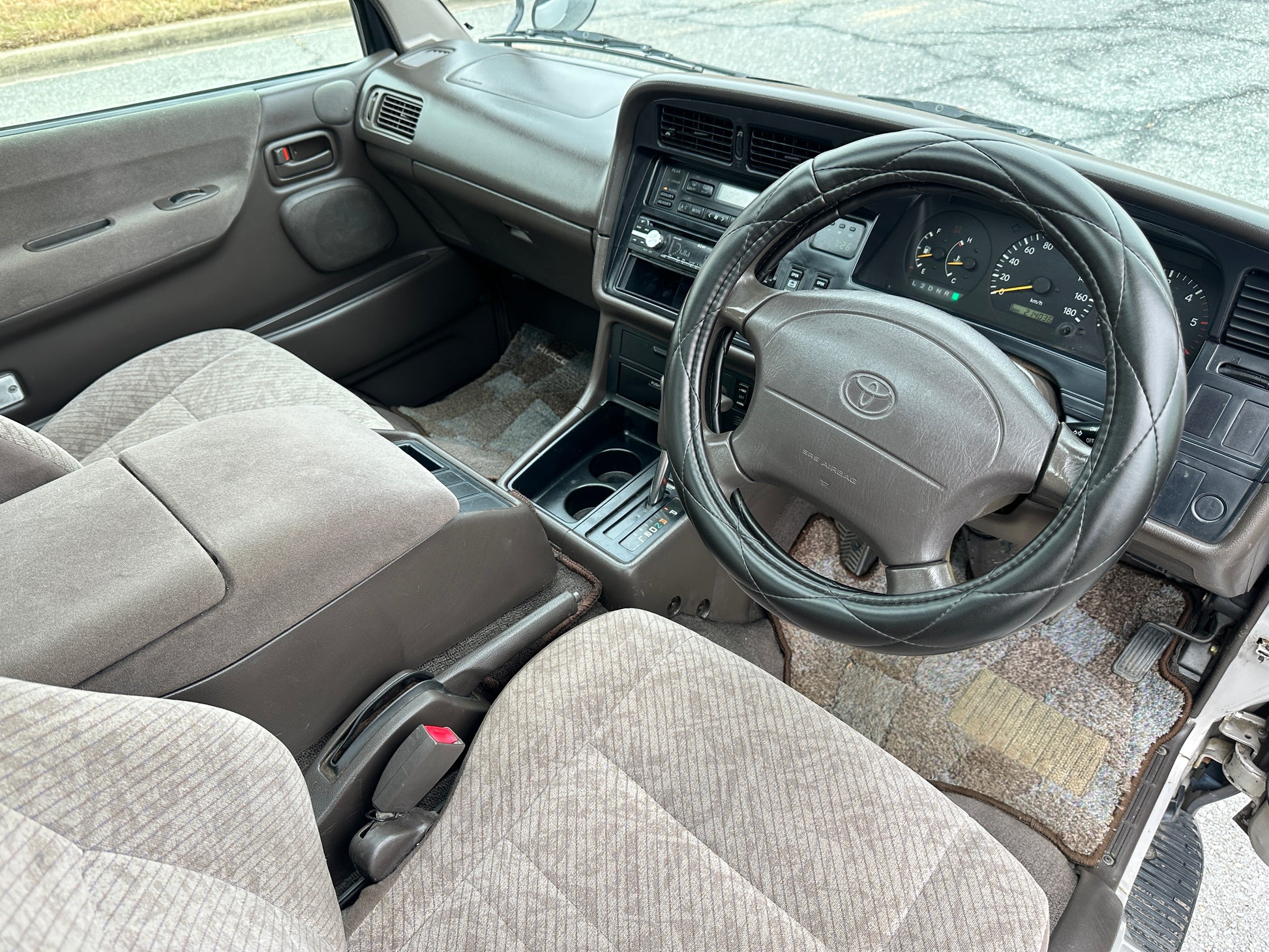 1996 TOYOTA HIACE SUPER CUSTOM G EXCELLENT KZH100 ——132,992 Miles, “1KZ-TE”, 3.0 Liter Inline 4, Turbo Diesel, Automatic Transmission, RWD, ABS, SRS AIRBAGS, Venting Front Sunroof, Massive Central Sunroof, Power Rear Sunroof, Two-Tone Paint, Brown Cloth Upholstery, Factory 3rd Row, 180 Degree Swivel Middle Row, Full Flat Folding Seats, Dual Zone Climate Control, Power Windows, Power Locks, Soft Closing Sliding Door, COOLER BOX WITH ICE-MAKER.