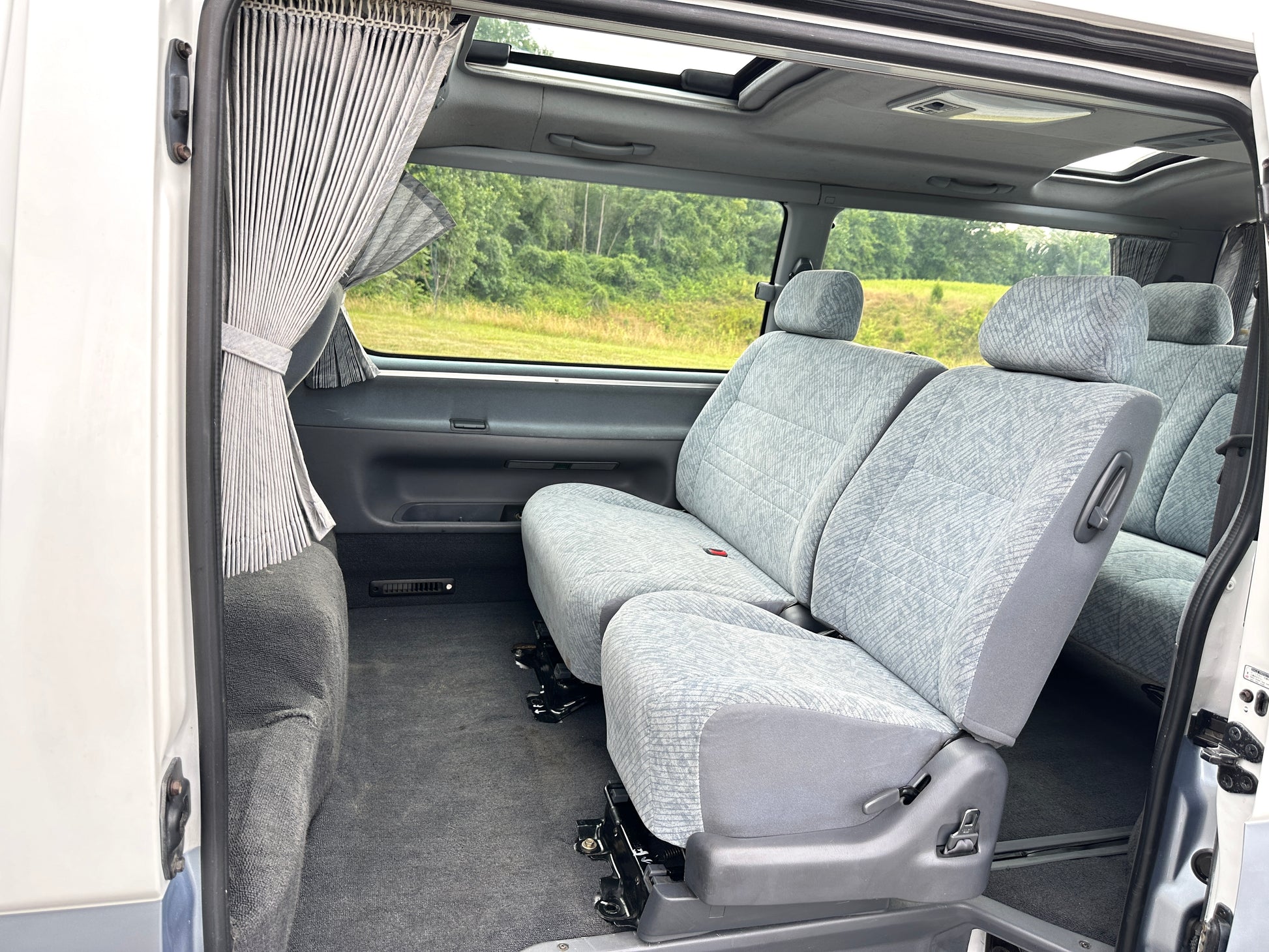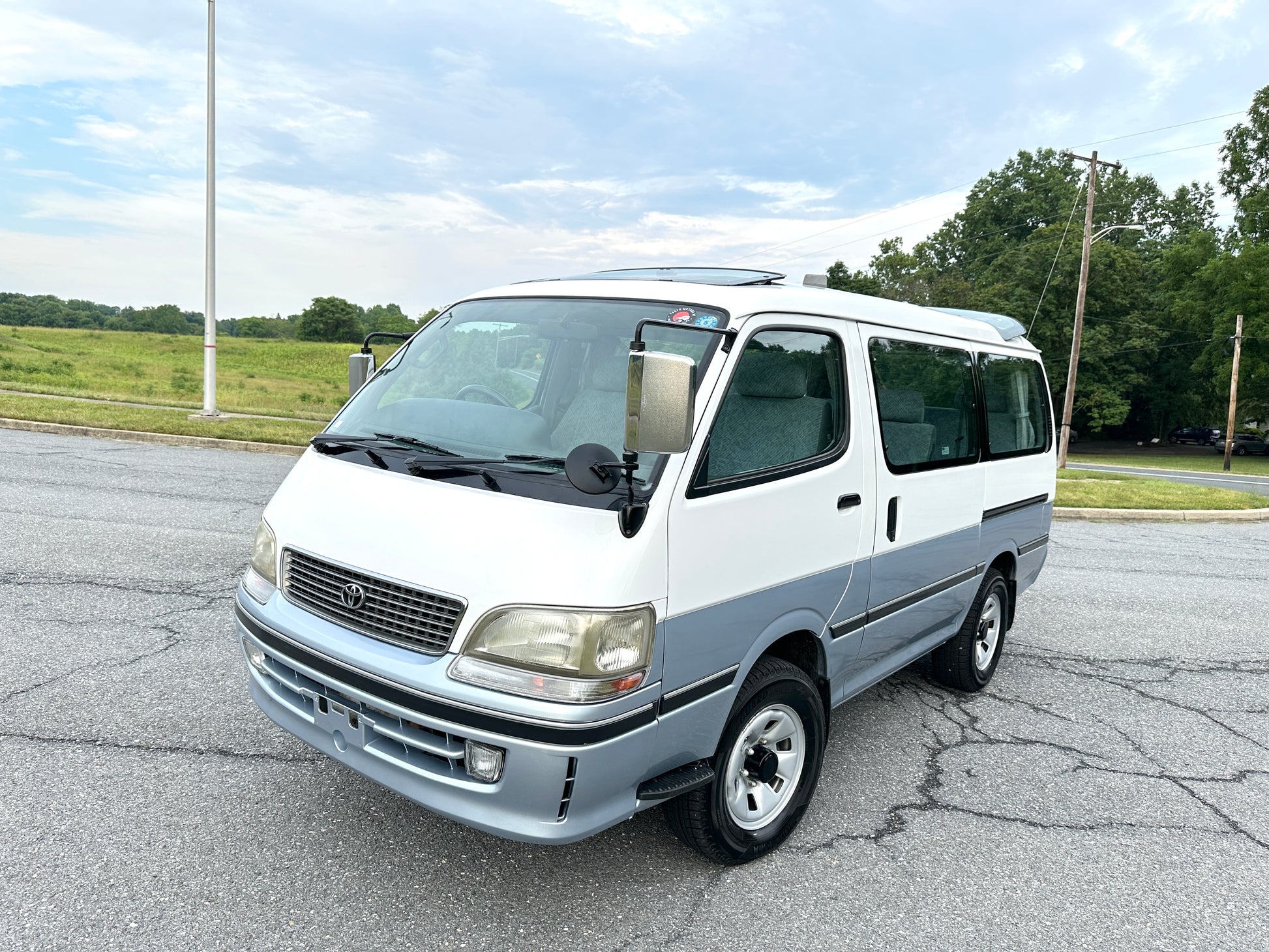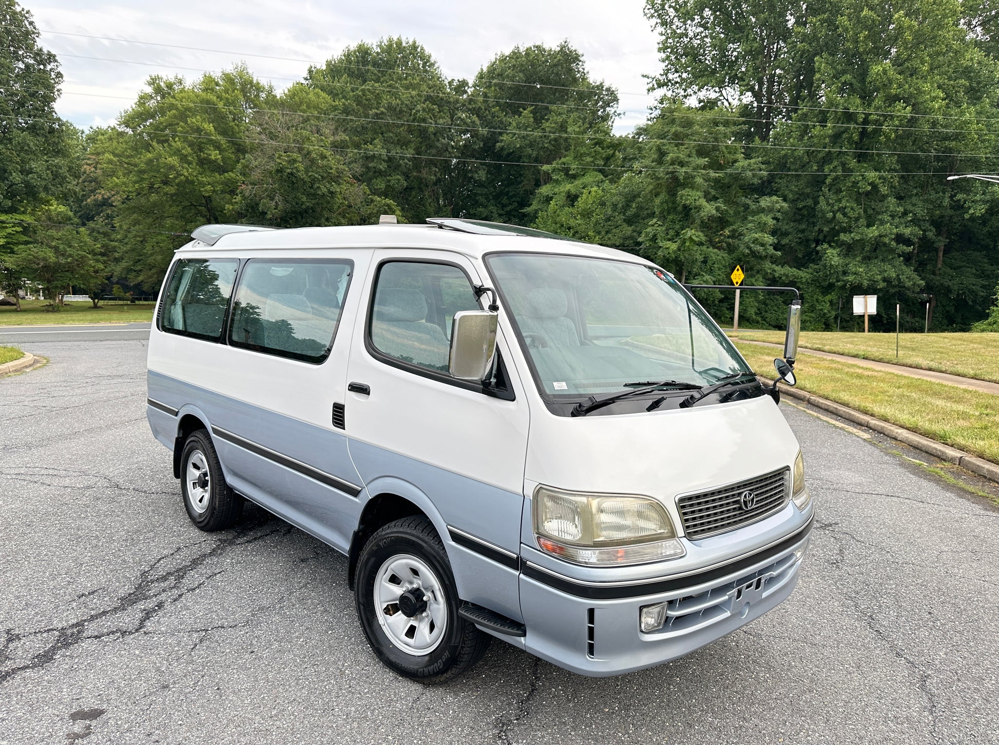 1996 TOYOTA HIACE SUPER CUSTOM G KZH106 —— 74,804 Miles, “1KZ-TE”, 3.0 Liter Inline 4, Turbo Diesel, Automatic Transmission, Full Time 4WD, Venting Front Sunroof, Massive Central Sunroof, Power Rear Sunroof, Two-Tone Paint, Blue Cloth Upholstery, Factory 3rd Row, 180 Degree Swivel Middle Row, Full Flat Folding Seats, Dual Zone Climate Control, Power Windows, Power Locks, Curtains, OEM Wheels, DRIVER & PASSENGER AIRBAGS.