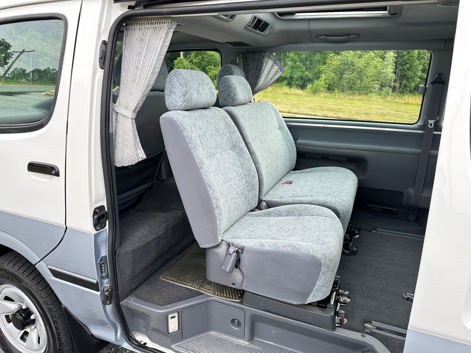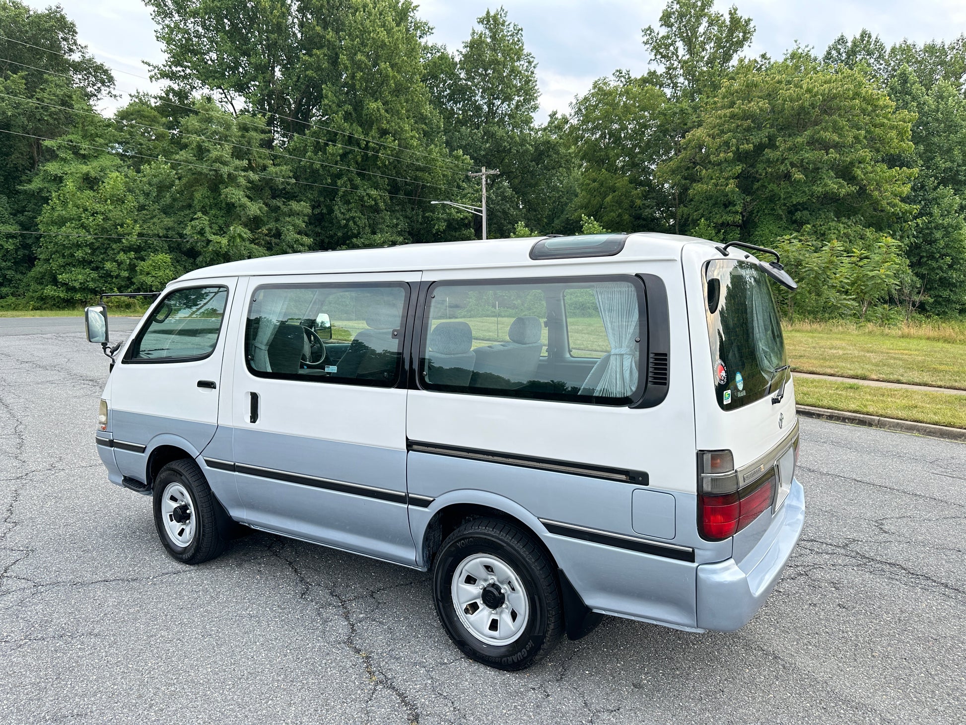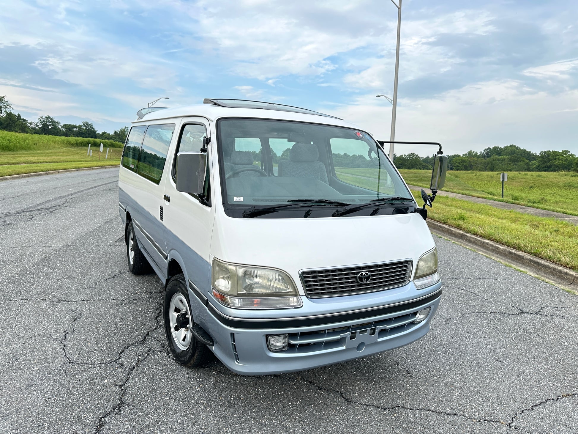 1996 TOYOTA HIACE SUPER CUSTOM G KZH106 —— 74,804 Miles, “1KZ-TE”, 3.0 Liter Inline 4, Turbo Diesel, Automatic Transmission, Full Time 4WD, Venting Front Sunroof, Massive Central Sunroof, Power Rear Sunroof, Two-Tone Paint, Blue Cloth Upholstery, Factory 3rd Row, 180 Degree Swivel Middle Row, Full Flat Folding Seats, Dual Zone Climate Control, Power Windows, Power Locks, Curtains, OEM Wheels, DRIVER & PASSENGER AIRBAGS.