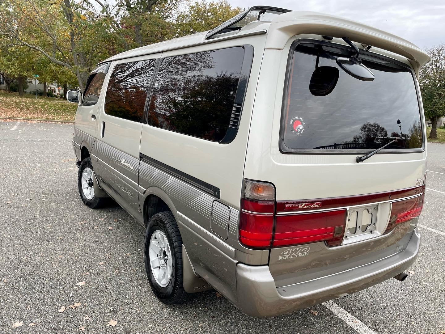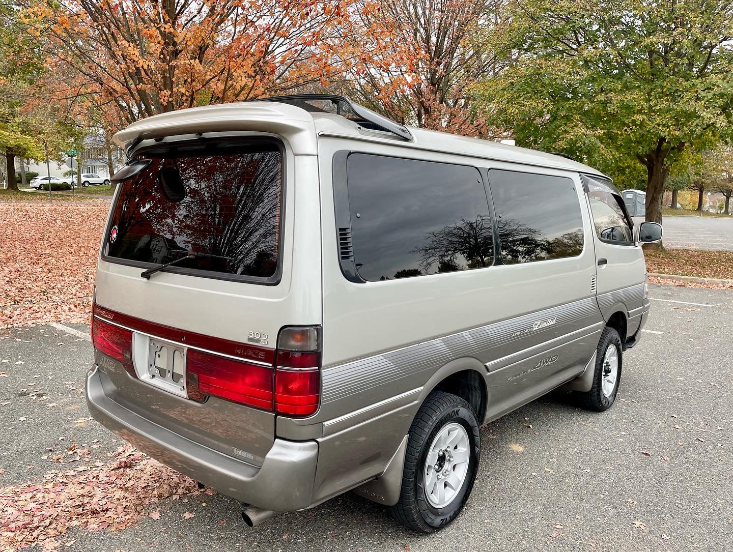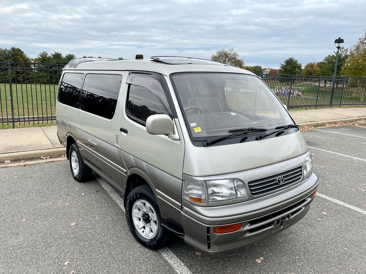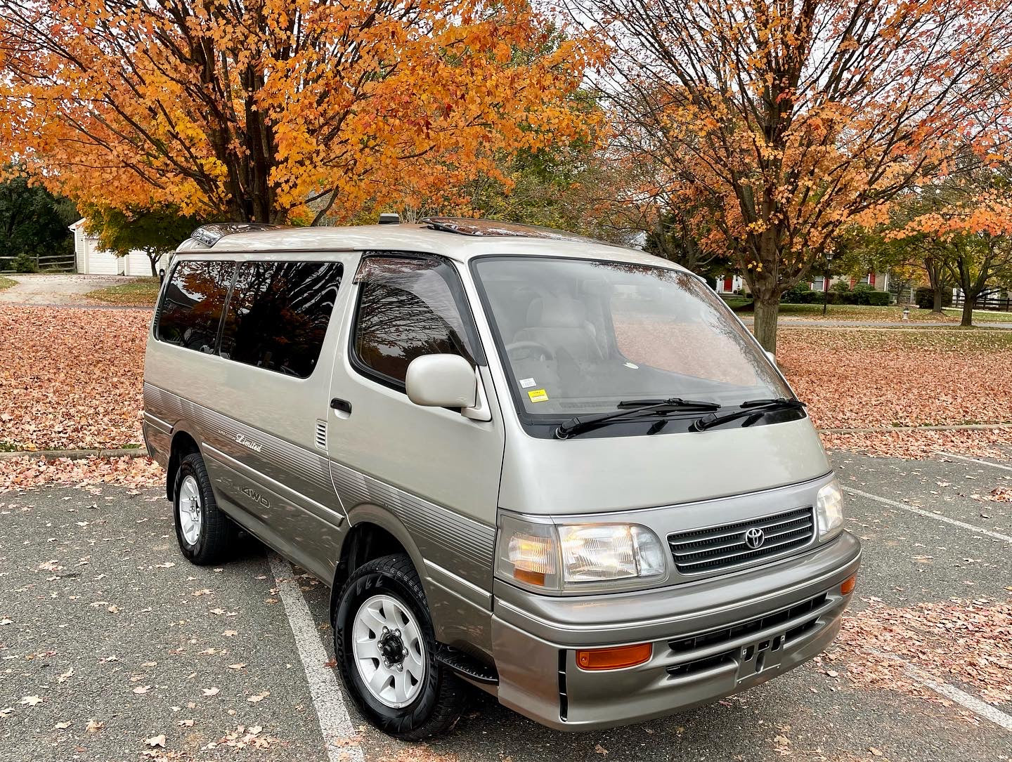 1996 TOYOTA HIACE SUPER CUSTOM LIMITED KZH106 ——111K miles, “1KZ-TE” 3.0 Liter Inline 4, Turbo Diesel, Automatic Transmission, Full Time 4WD, Venting Front Sunroof, Massive Central Sunroof, Power Rear Sunroof, Two-Tone Paint, Brown Cloth Upholstery, Factory 3rd Row, 180 Degree Swivel Middle Row, Full Flat Folding Seats, Dual Zone Climate Control, Power Windows, Power Mirrors, Power Locks, Soft Closing Sliding Door, Power Curtains, Original Radio, RARE DIGITAL INSTRUMENT CLUSTER, ELECTRIC DRIVER’S SEAT.