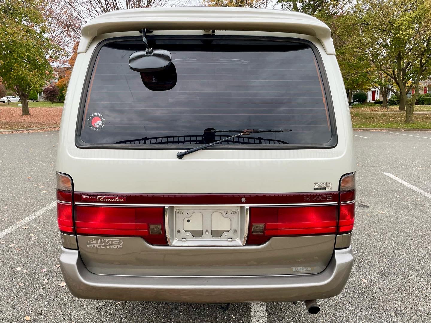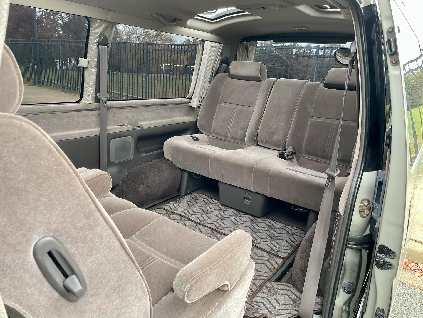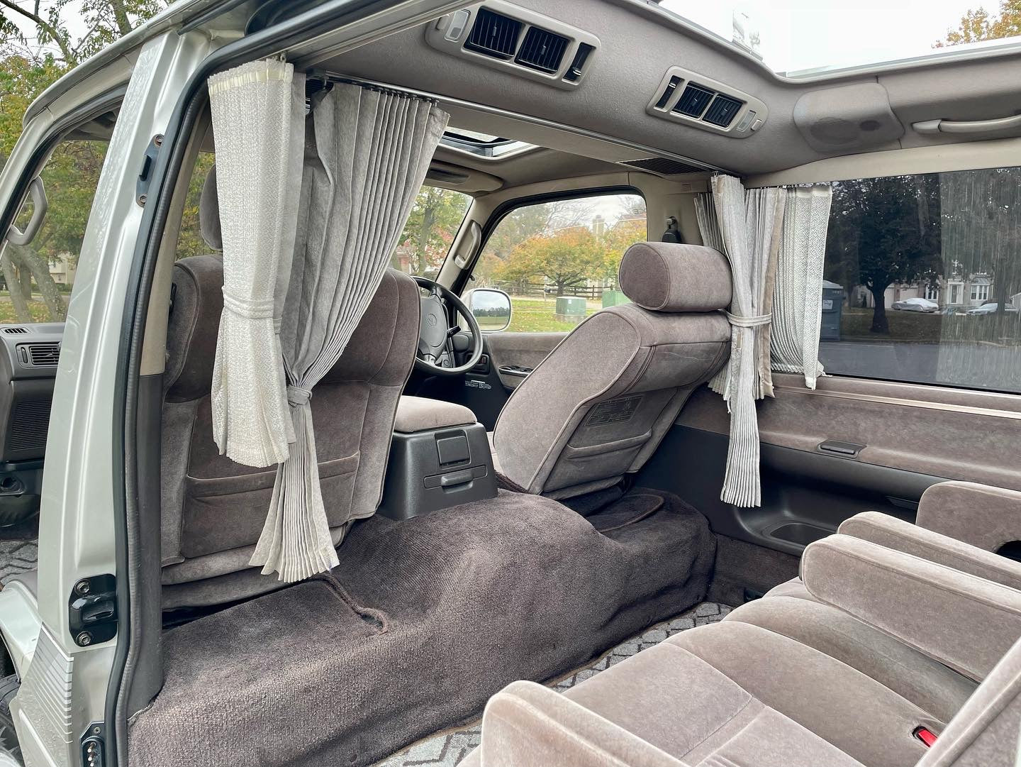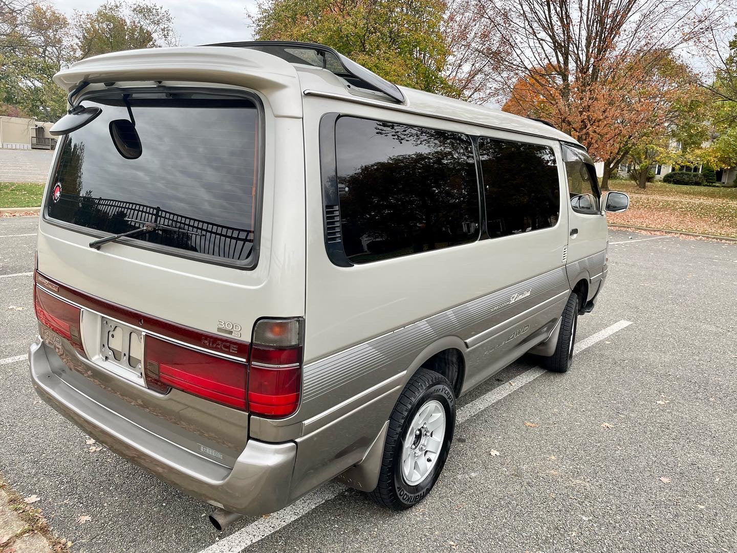 1996 TOYOTA HIACE SUPER CUSTOM LIMITED KZH106 ——111K miles, “1KZ-TE” 3.0 Liter Inline 4, Turbo Diesel, Automatic Transmission, Full Time 4WD, Venting Front Sunroof, Massive Central Sunroof, Power Rear Sunroof, Two-Tone Paint, Brown Cloth Upholstery, Factory 3rd Row, 180 Degree Swivel Middle Row, Full Flat Folding Seats, Dual Zone Climate Control, Power Windows, Power Mirrors, Power Locks, Soft Closing Sliding Door, Power Curtains, Original Radio, RARE DIGITAL INSTRUMENT CLUSTER, ELECTRIC DRIVER’S SEAT.