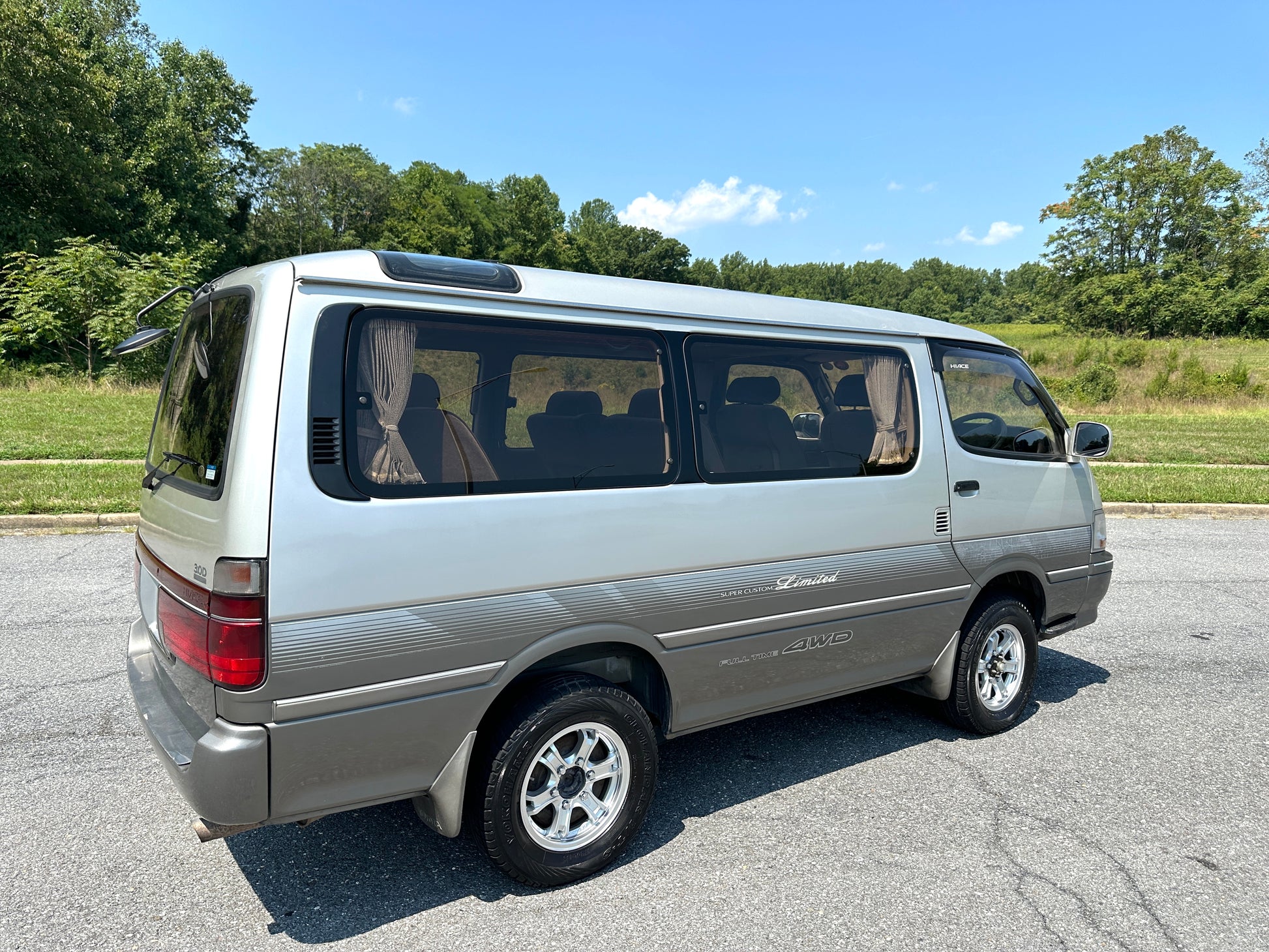 1996 TOYOTA HIACE SUPER CUSTOM LIMITED KZH106 ——123,303 Miles, “1KZ-TE” 3.0 Liter Inline 4, Turbo Diesel, Automatic Transmission, Full Time 4WD, Venting Front Sunroof, Massive Central Sunroof, Power Rear Sunroof, Two-Tone Paint, Brown Cloth Upholstery, Factory 3rd Row, 180 Degree Swivel Middle Row, Full Flat Folding Seats, Dual Zone Climate Control, Power Windows, Power Retractable Mirrors, Power Locks, Soft Closing Sliding Door, Power Curtains, Aftermarket Stereo, Aftermarket Wheels, DIGITAL INSTRUMENT CLUSTER, ELECTRIC DRIVER’S SEAT.